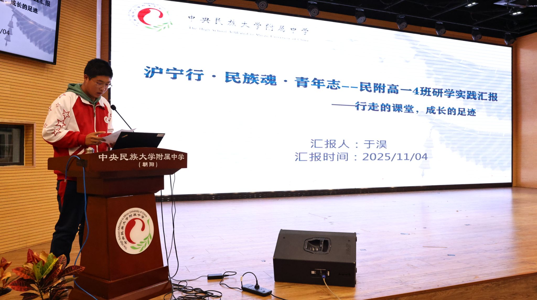 2025年11月4日,民大附中朝阳校区礼堂内氛围热烈,2025级高一研学汇报如期举行。本次汇报以 “行走悟真知,实践助成长” 为主题,由年级副主任刘阳主持,朝阳校区校领导、中层干部、高一年级主任、全体班主任导师及高一全体学生齐聚现场,共同复盘研学实践历程,为学生后续成长搭建交流与赋能平台。刘阳老师环节一:研学视频回顾精心制作的视频拉开汇报序幕,镜头中重现学子徒步山林的坚毅、观察自然的专注、深夜研讨的投入,生...