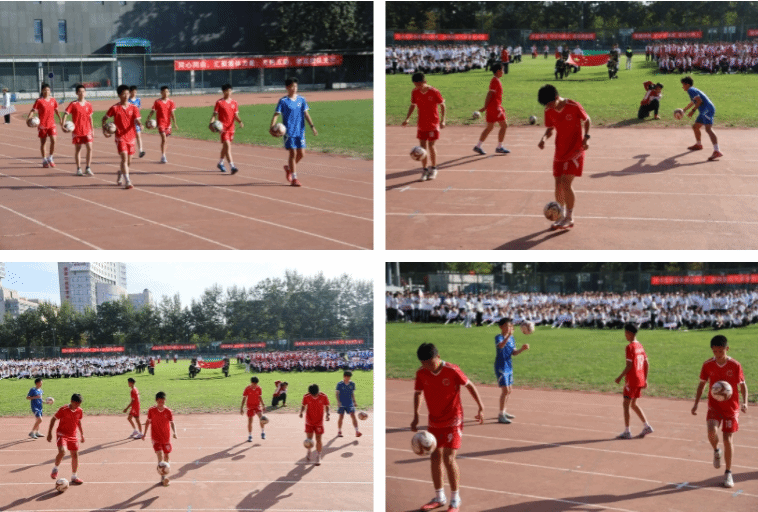 足球方阵:这是一支充满激情与梦想的队伍,绿茵场是他们的舞台,黑白足球是他们的世界。传球、盘带、射门,每一个动作都凝聚着平日刻苦训练的汗水;鼓励、拥抱、欢呼,每一次互动都饱含着队友间深厚的情谊。