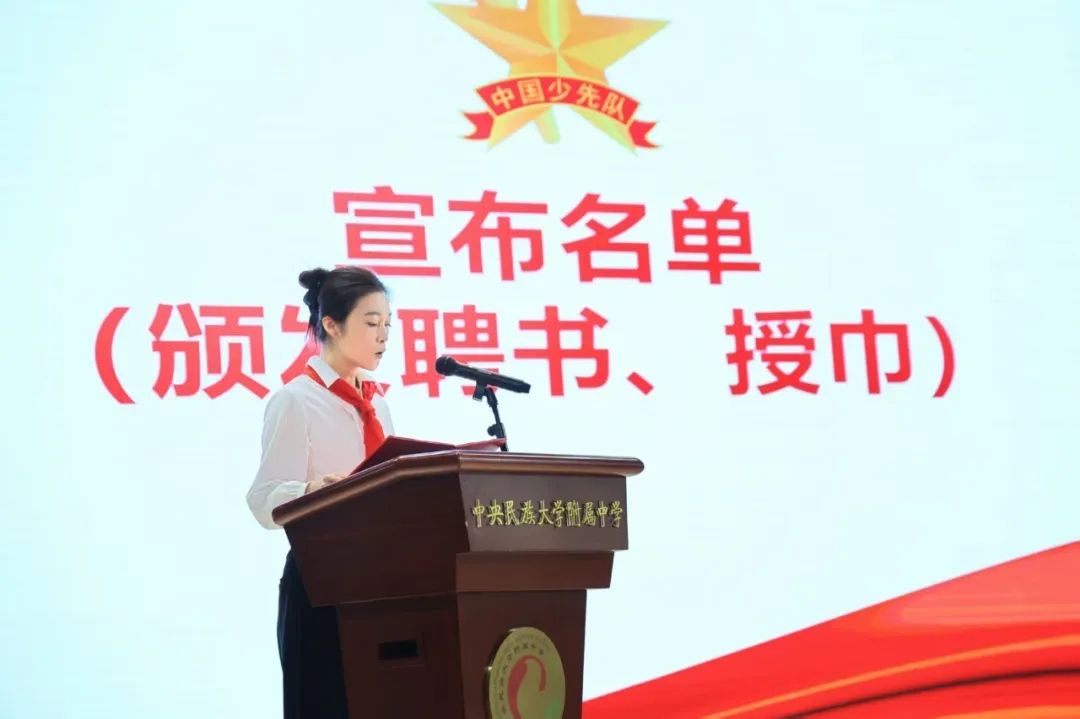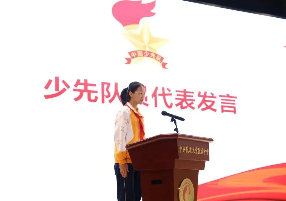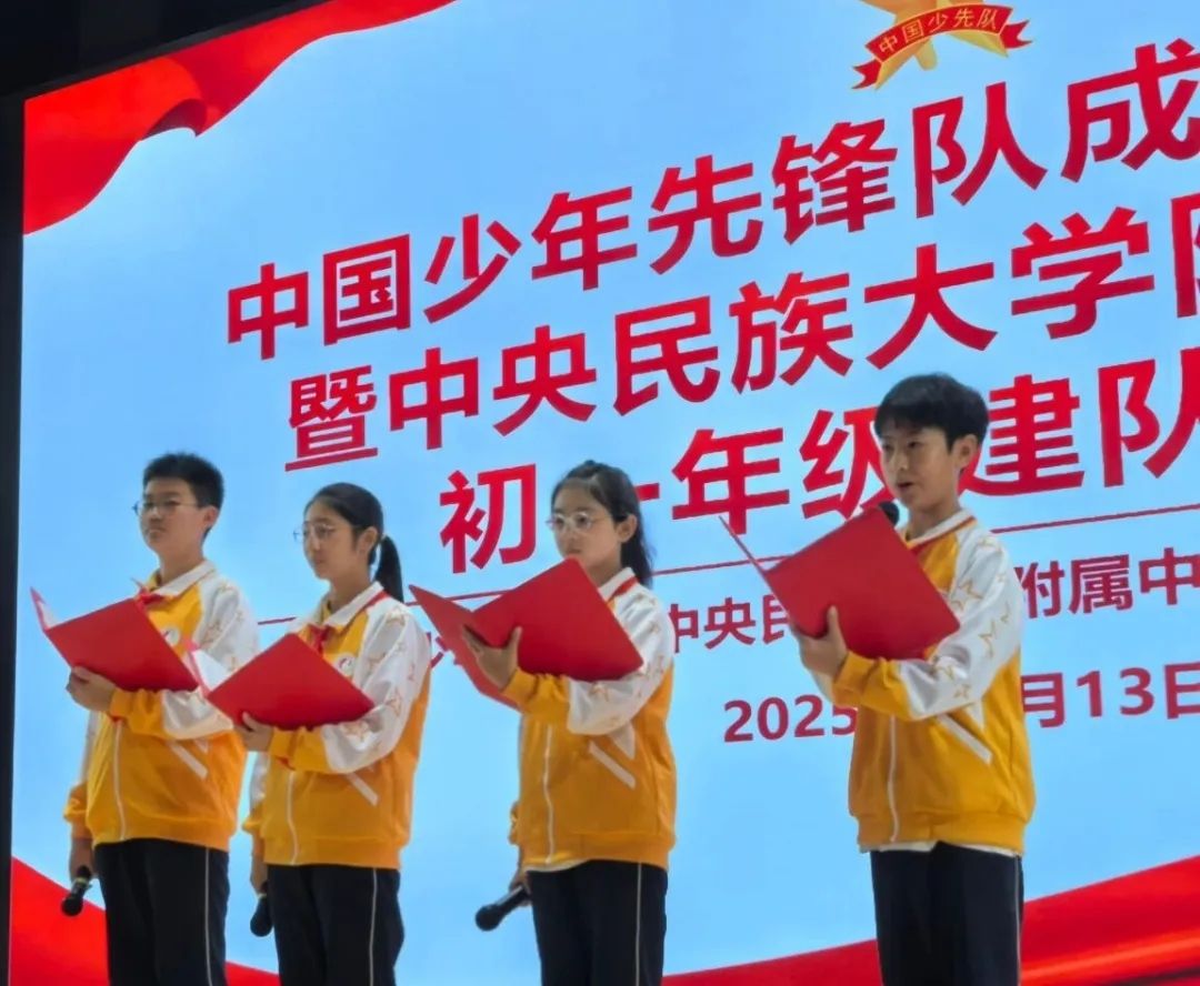 为深入学习贯彻习近平总书记关于少年儿童和少先队工作的重要论述,教育引导广大少先队员牢记习近平总书记的教导,不断增强少先队员的光荣感和组织归属感,2025年10月13日,在全国第76个少先队建队纪念日这一具有特殊意义的日子里,中央民族大学附属中学初一年级建队仪式庄严启幕。