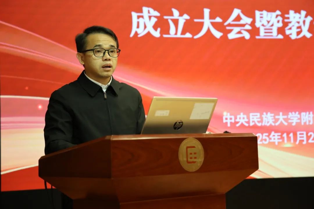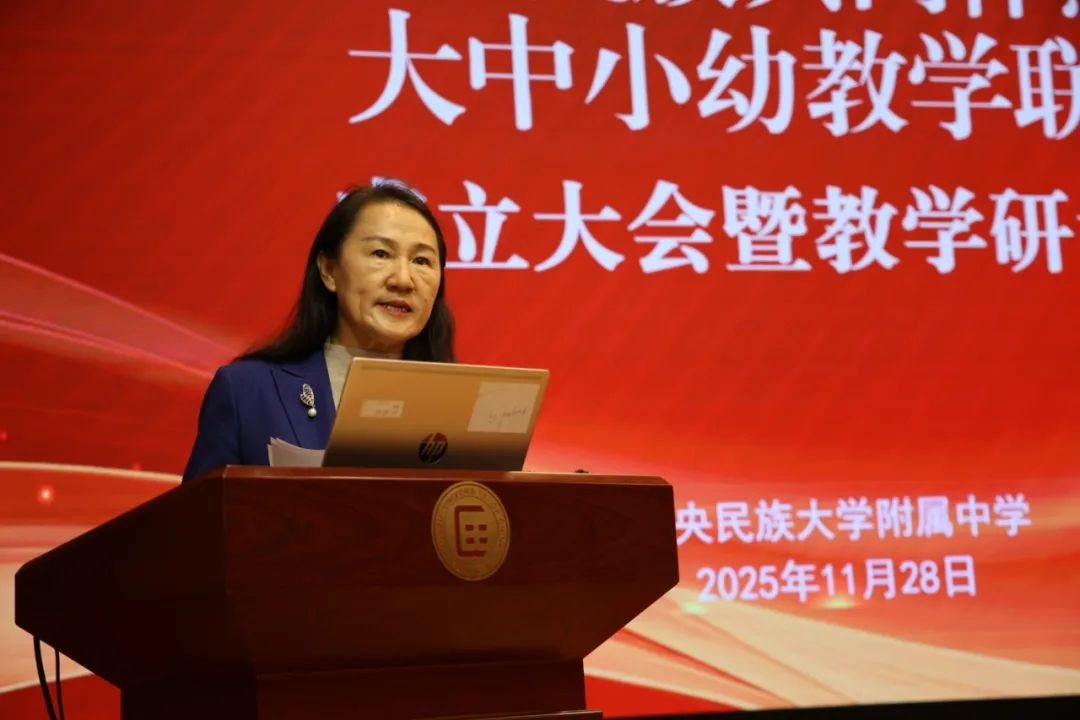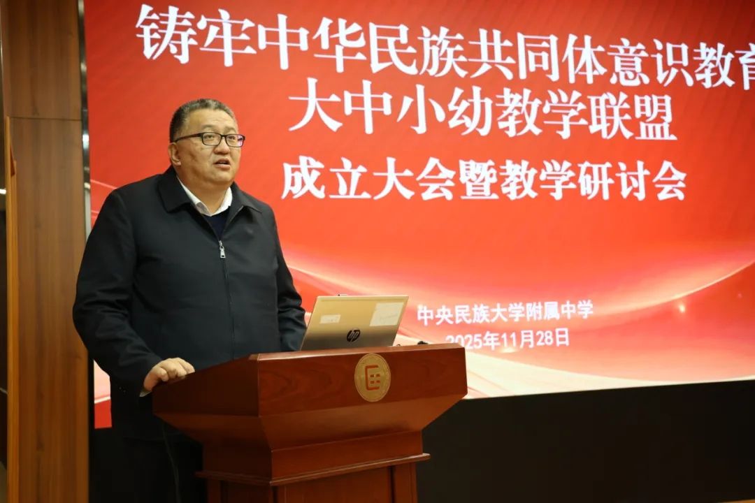 为认真贯彻落实《教育强国建设规划纲要(2024—2035年)》精神,深化铸牢中华民族共同体意识教育育人模式改革,进一步推动铸牢中华民族共同体意识教育落地落实,构建大中小幼一体化教育体系,近日,铸牢中华民族共同体意识教育大中小幼教学联盟成立大会暨教学研讨会在中央民族大学顺利召开。教育部民族教育司副司长潘江如,国家民委教育司副司长王学荣,北京市教委二级巡视员张晓玲,中央民族大学党委副书记、校长强世功,党委副书记、副校长王雄军等领导嘉宾出席并发表讲话。会议由中央民族大学附属中学党委常务副书记佟丽娟主持。