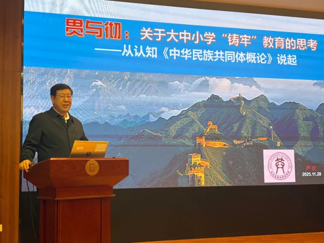 中央民族大学中华民族共同体学院执行院长严庆教授围绕“贯”与“彻”二字展开,强调“铸牢”教育应立足历史观、文明观与天下观,实现认知与实践的统一。