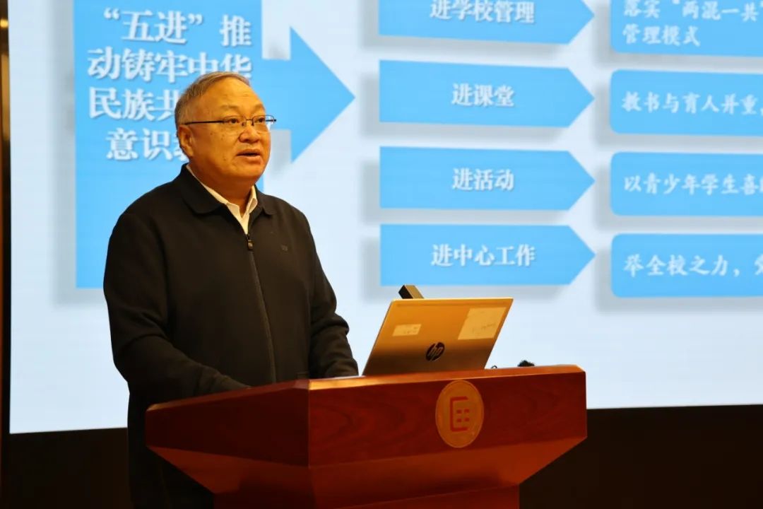 潘江如副司长在讲话中强调,成立铸牢中华民族共同体意识教育大中小幼教学联盟具有重要意义,要坚持“铸牢”主线,在凝心铸魂上持续发力,以增进共同性为方向,将其融入办学治校,教书育人全过程,有形有感有效引导各族师生增进“五个认同”;要勇于改革创新,在破解难题上持续发力,坚持问题导向,聚焦教育实践中的难点堵点问题,打破思维定势和路径依赖,革新教育理念、创新育人方法、更新教育内容;要强化试点工作,在协同创新上引领,联盟各成员单位应加强分工协作,不同学段的学校开发阶梯式教育资源,聚集重点工作,形成工作合力;要形成“铸牢”闭环,在落地见效上久久为功,各学校要把试点改革作为重要政治任务,抓紧抓实,定期研究,常态化交流研讨,边推进、边治理、边总结、边提升。