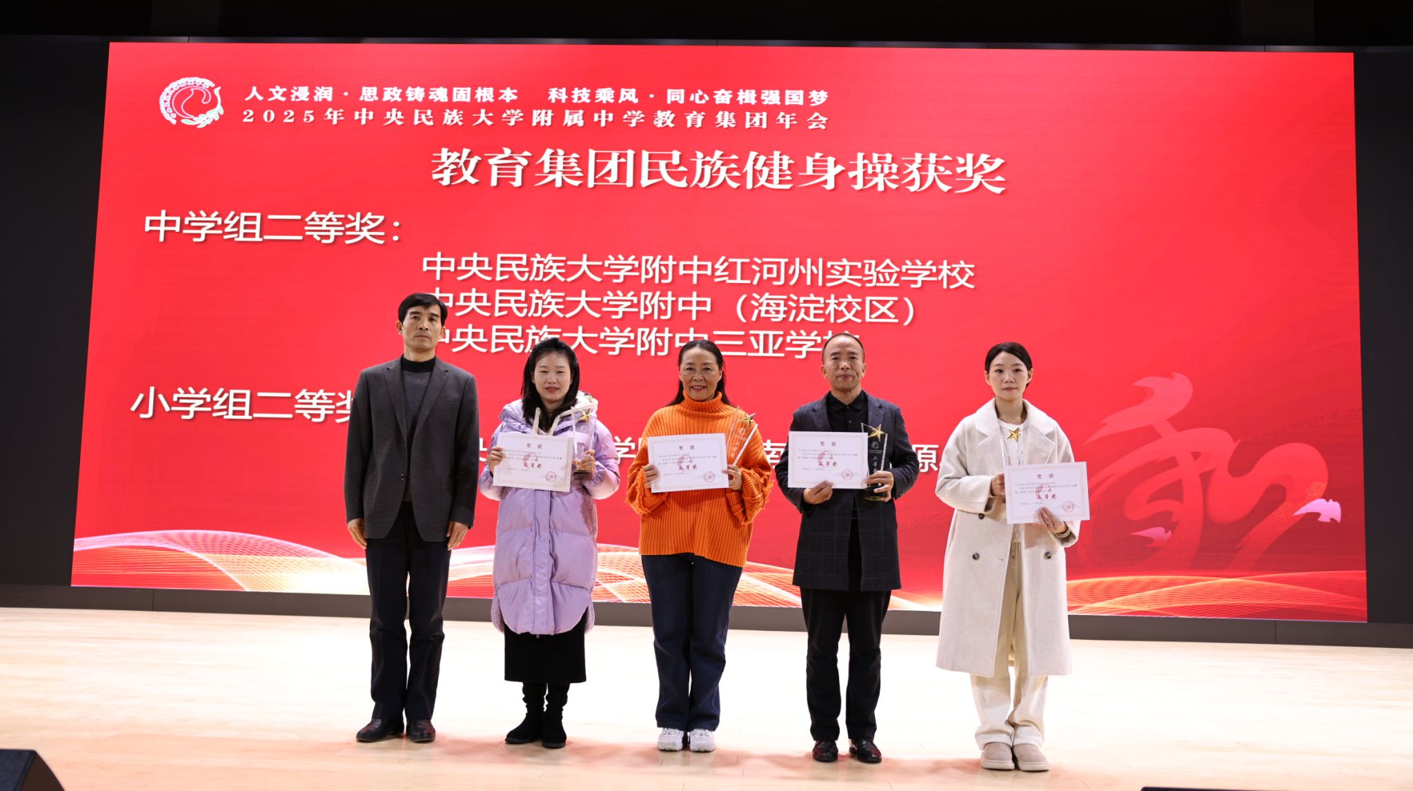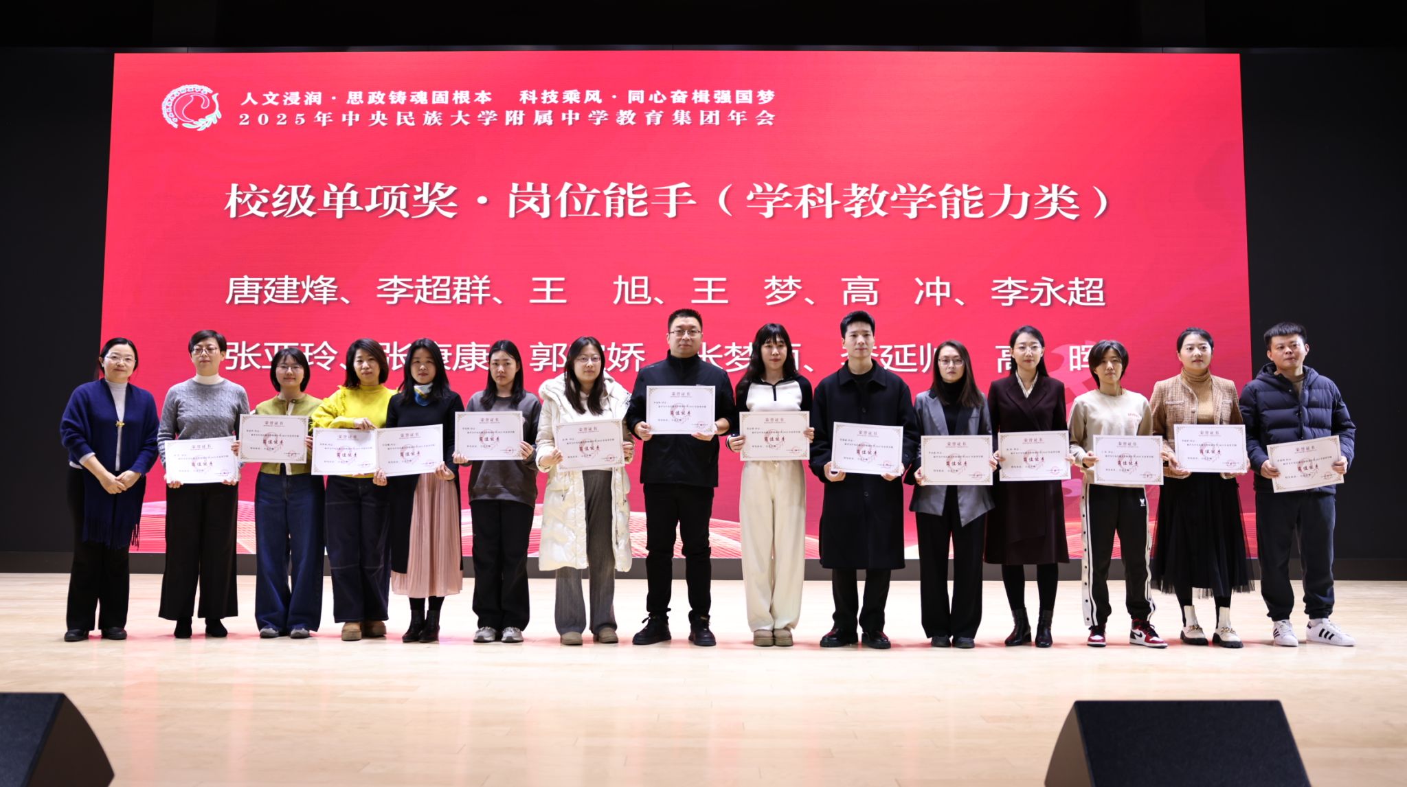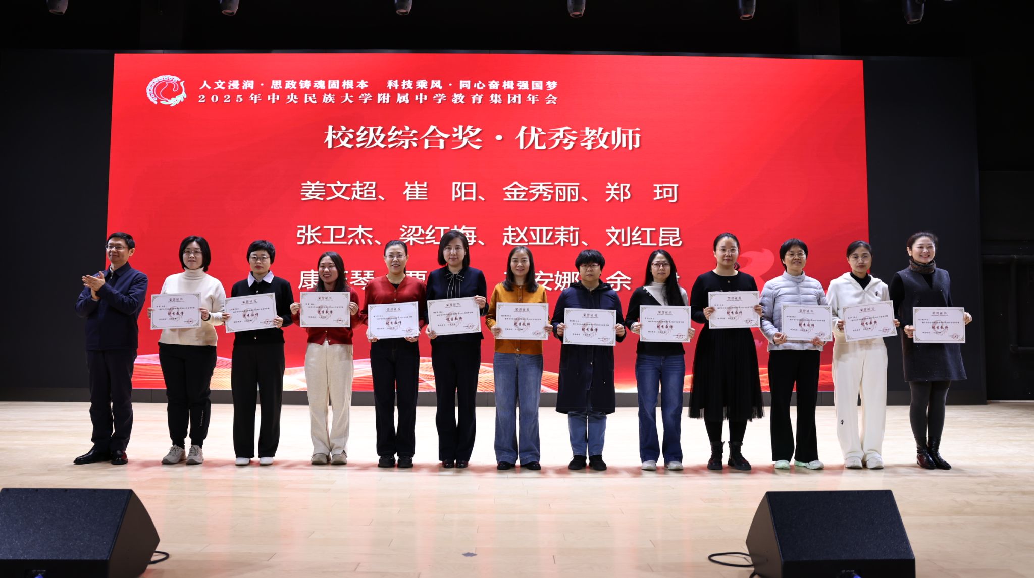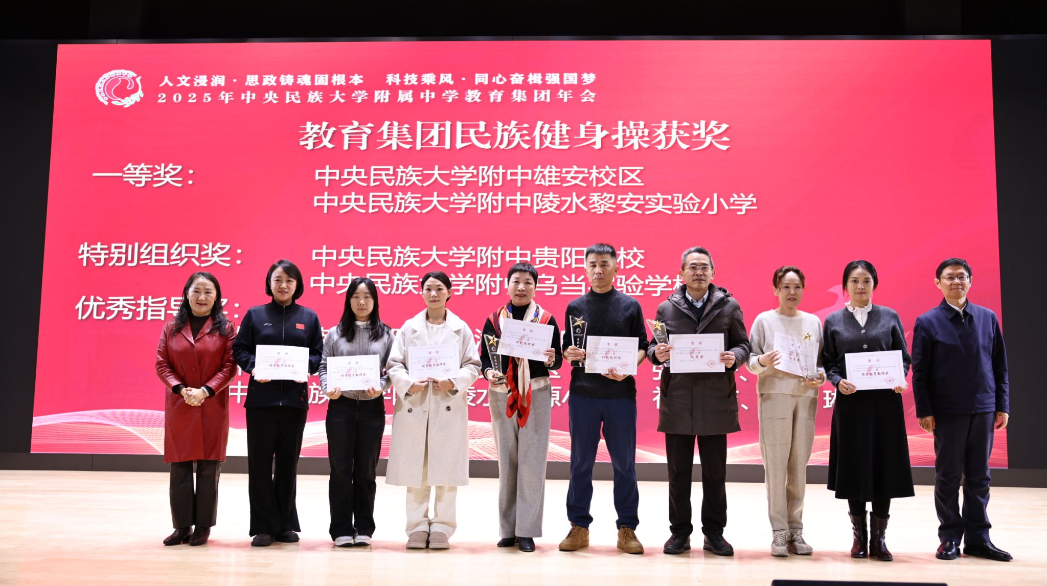 2025年12月27日,中央民族大学附中教育集团以“人文浸润,思政铸魂固根本 科技乘风,同心奋楫强国梦”为主题,在海淀校区召开了2025年教育集团年会。民大附中教育集团总校党委副书记、校长唐洪波,民大附中教育集团总校党委常务副书记佟丽娟等校领导、集团各分校和共建校校领导及干部教师代表、民大附中全体教职工现场参会,集团各分校班子成员、教学科研部门主任、学科组长、党支部书记、团委书记及教师代表线上参会。