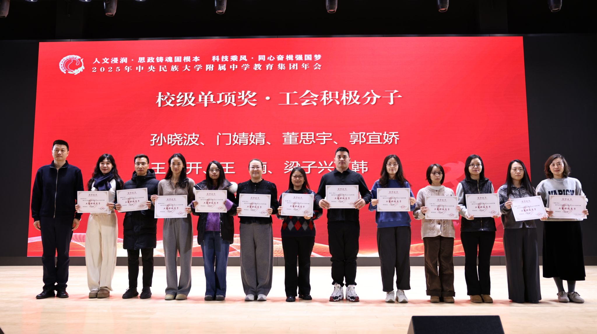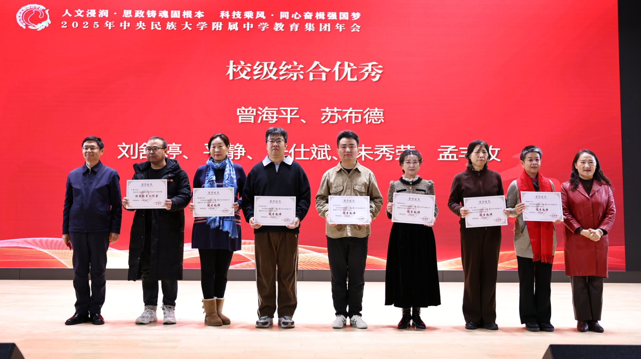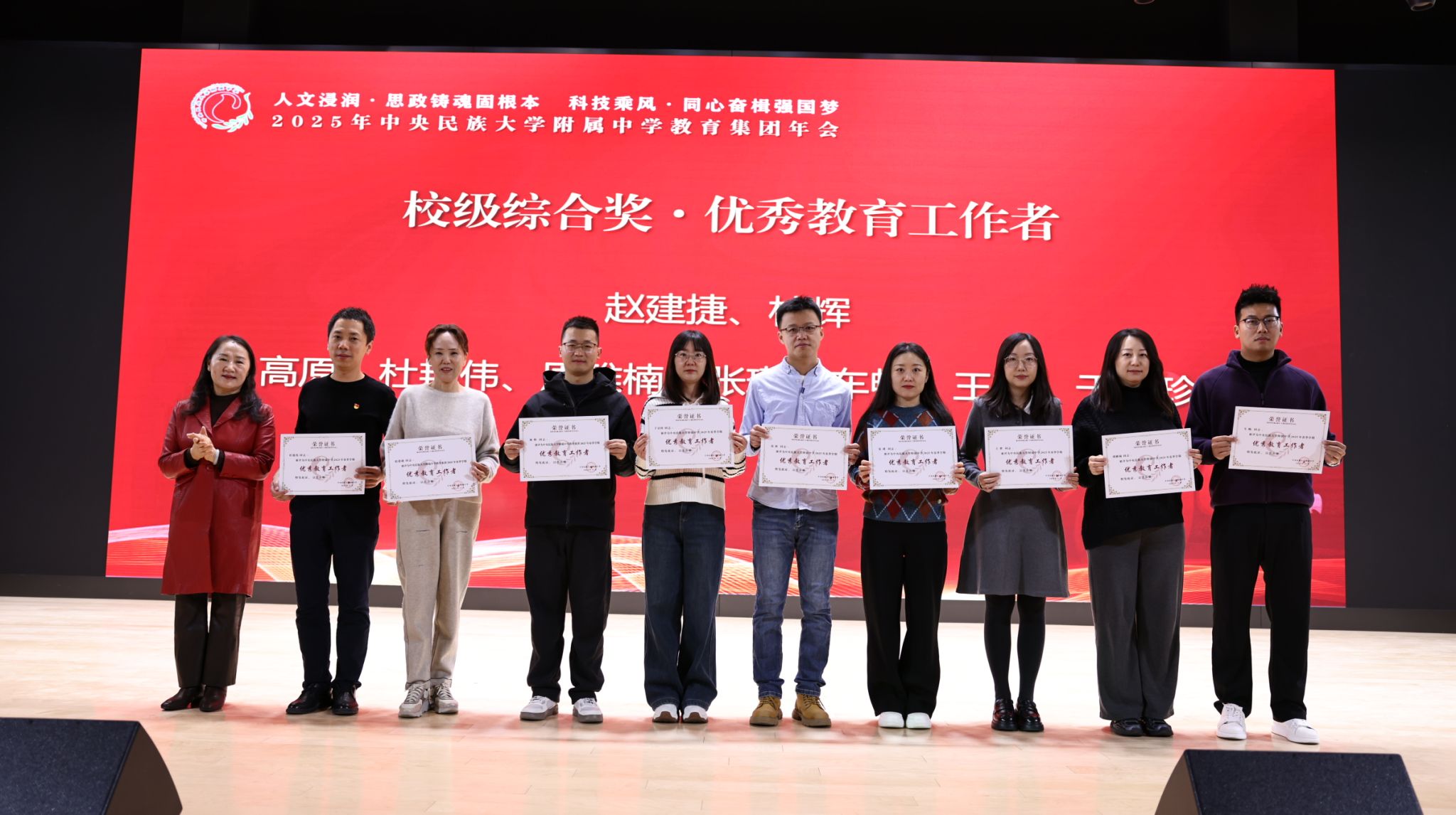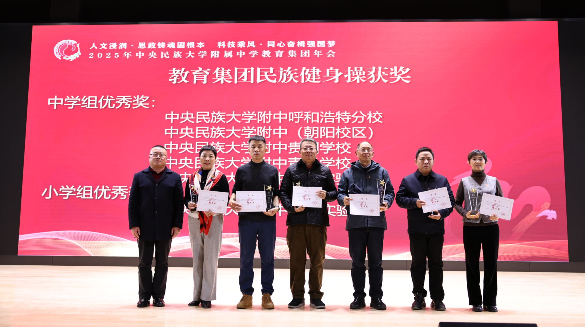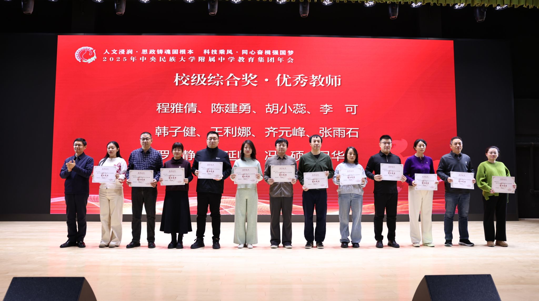 2025年12月27日,中央民族大学附中教育集团以“人文浸润,思政铸魂固根本 科技乘风,同心奋楫强国梦”为主题,在海淀校区召开了2025年教育集团年会。民大附中教育集团总校党委副书记、校长唐洪波,民大附中教育集团总校党委常务副书记佟丽娟等校领导、集团各分校和共建校校领导及干部教师代表、民大附中全体教职工现场参会,集团各分校班子成员、教学科研部门主任、学科组长、党支部书记、团委书记及教师代表线上参会。