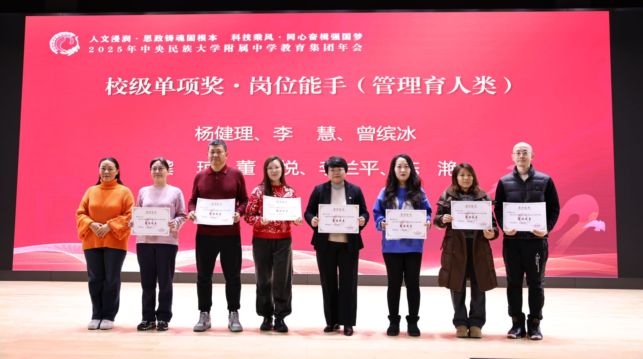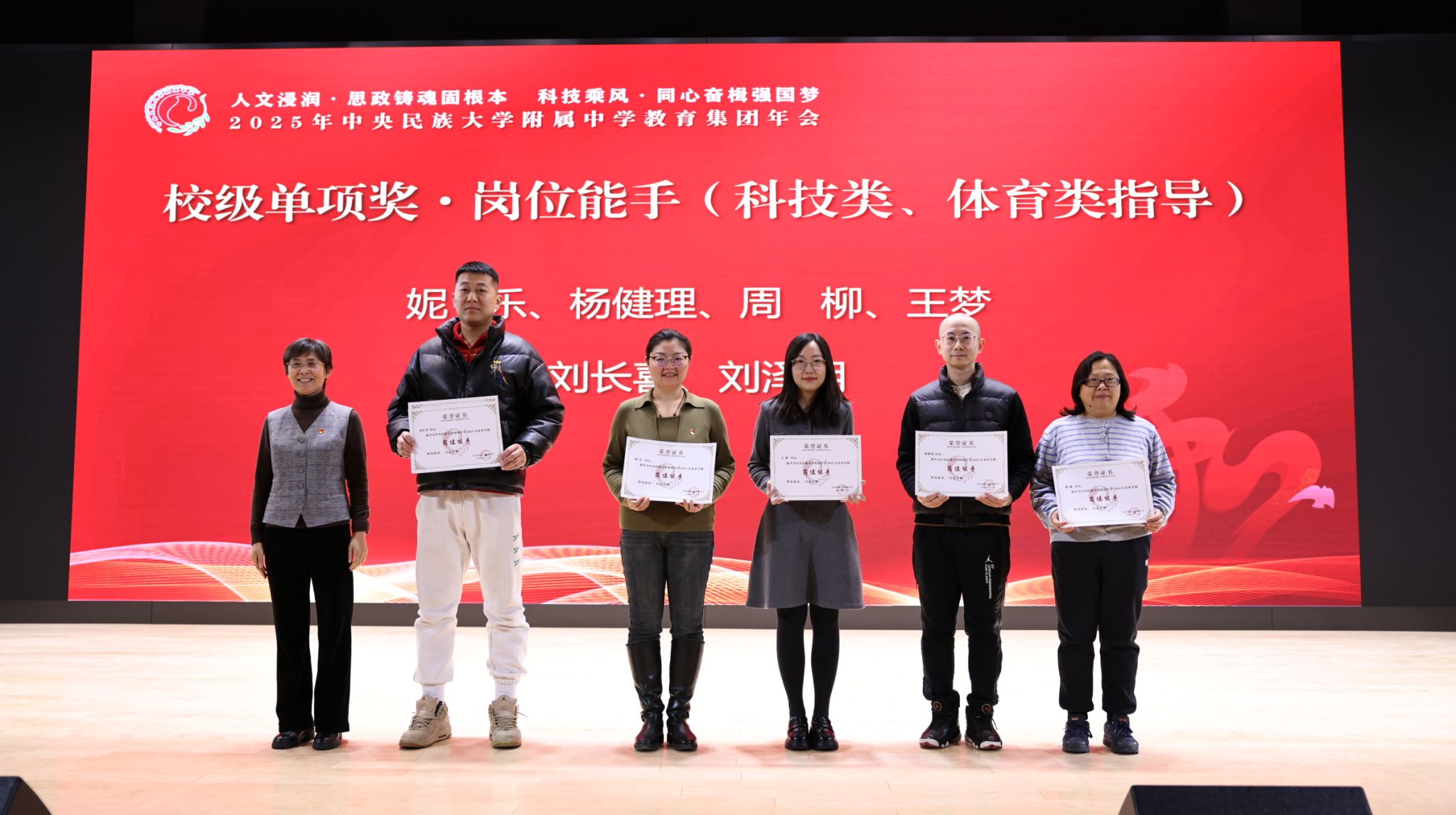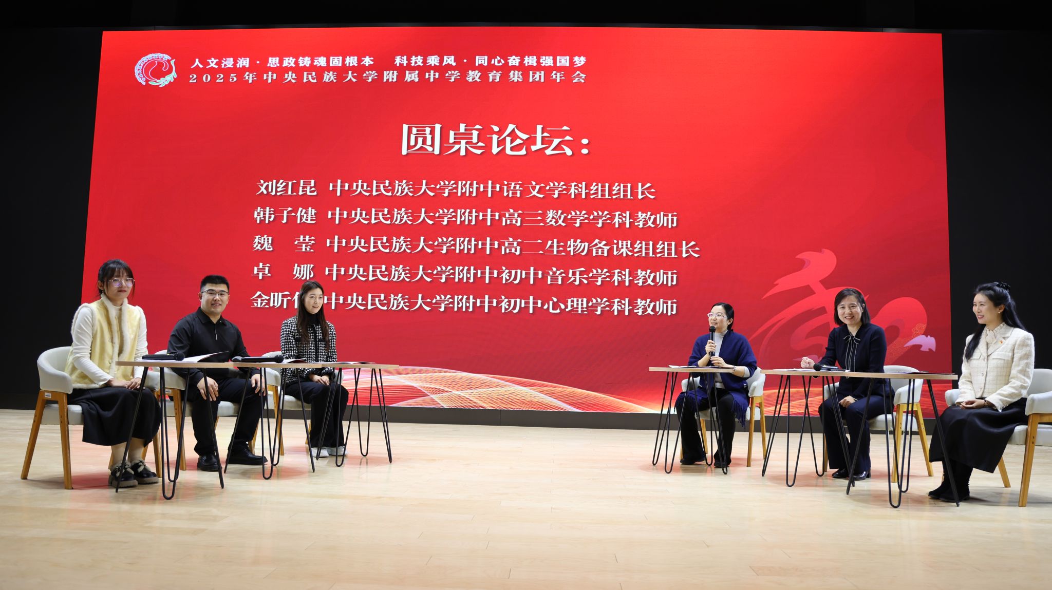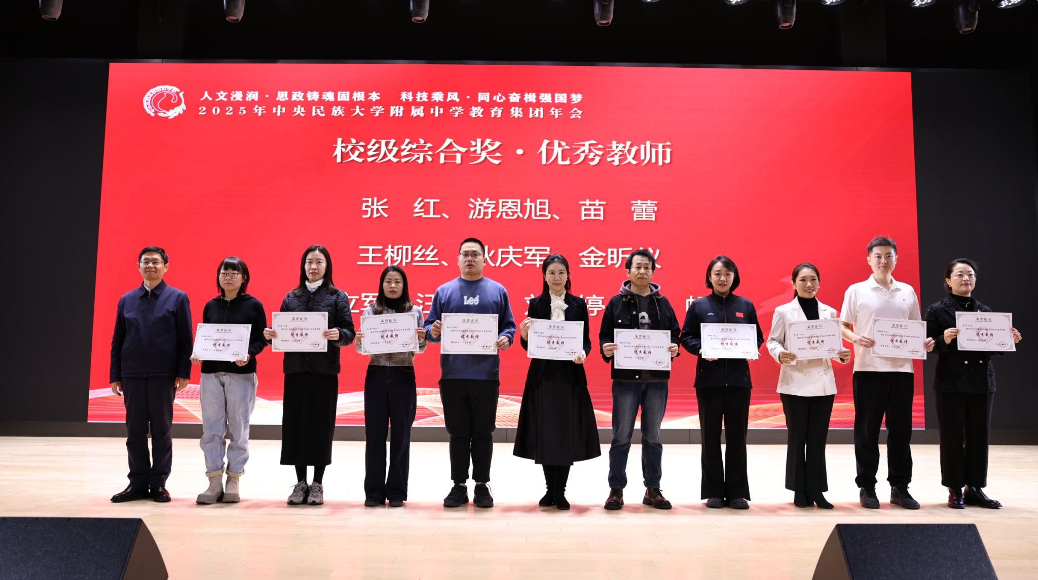 2025年12月27日,中央民族大学附中教育集团以“人文浸润,思政铸魂固根本 科技乘风,同心奋楫强国梦”为主题,在海淀校区召开了2025年教育集团年会。民大附中教育集团总校党委副书记、校长唐洪波,民大附中教育集团总校党委常务副书记佟丽娟等校领导、集团各分校和共建校校领导及干部教师代表、民大附中全体教职工现场参会,集团各分校班子成员、教学科研部门主任、学科组长、党支部书记、团委书记及教师代表线上参会。