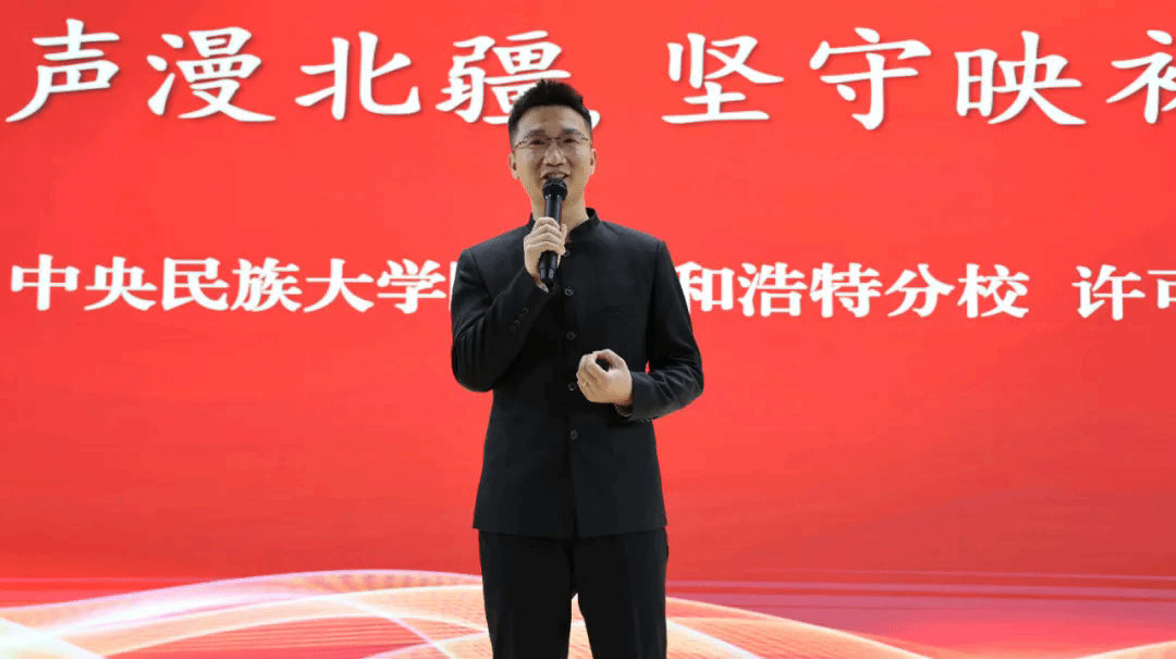 中央民族大学附中呼和浩特分校许可老师作了题为《歌声漫北疆 坚守映初心》的演讲