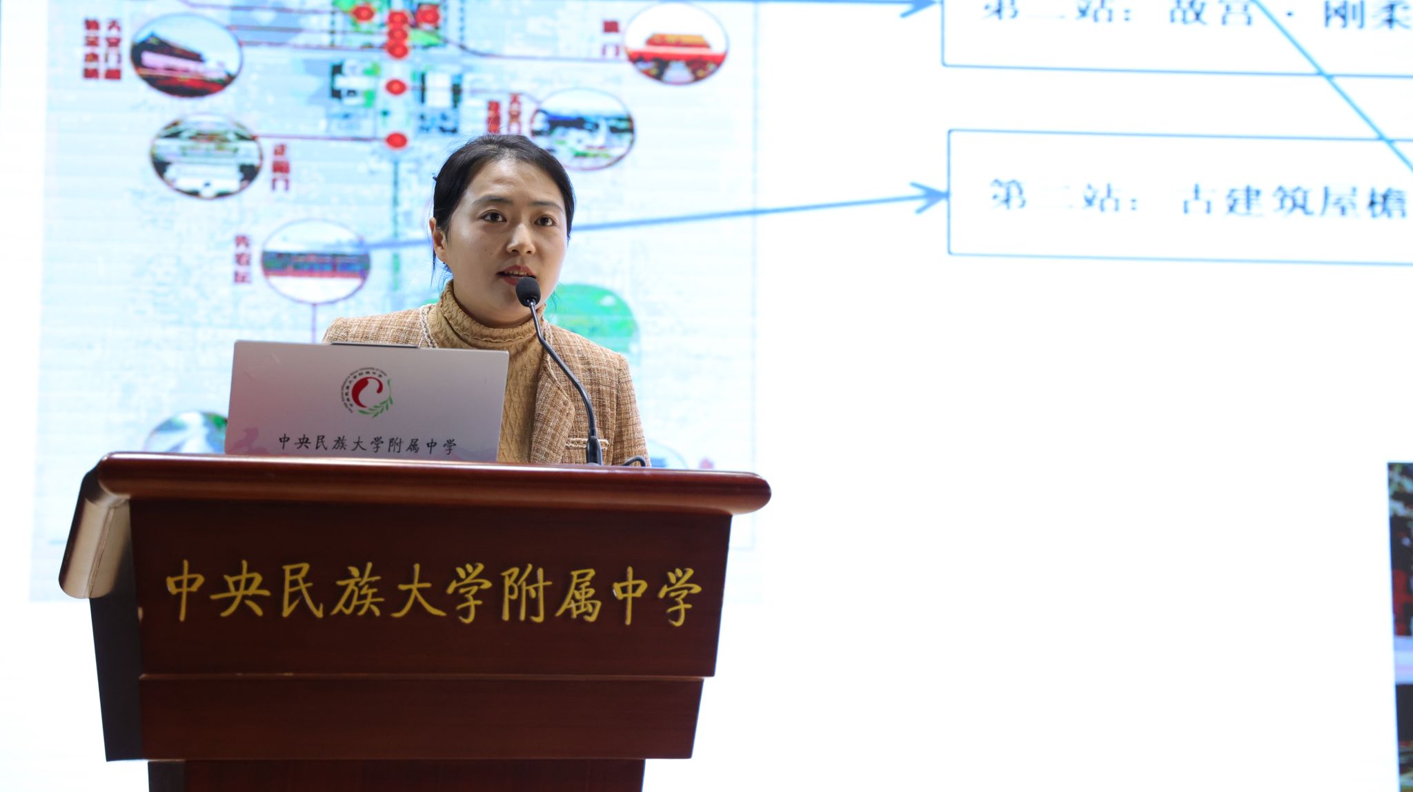 物理组李超群老师带来的“龙脉上的科学:中轴线上的STEAM探索之旅”则更具文化特色与情境魅力。该课程将物理等学科知识与北京中轴线文化深度交融,在真实情境的跨学科项目中,激发学生内在动力,探索出了一条文化传承与创新能力培养相结合的特色路径。