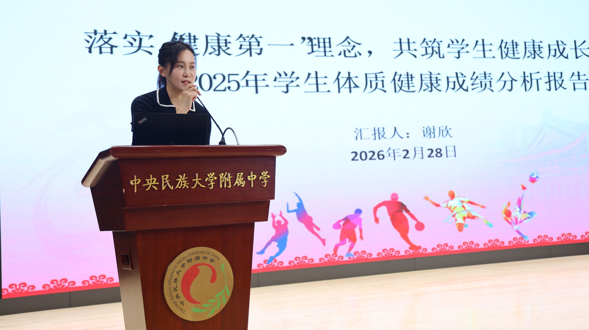 体育教研组组长谢欣作了我校2025年学生体质健康成绩分析报告。她结合国家政策背景,立足学校实际,全面分析了各学段体测数据与问题,总结分层训练、阳光跑等成效,明确了后续学校将深化科学训练、完善班级联赛、聚焦薄弱项目提升,筑牢学生健康成长基石。