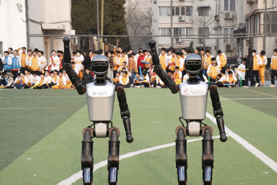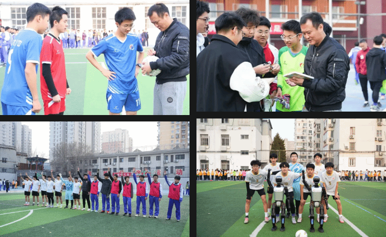 最令人期待的环节到来——两台智能足球机器人走进场地中央,与徐云龙先生一起分别为两个年级足球班级联赛揭幕战开球!这一“人机互动”的独特开球仪式,成为开幕式最独特的瞬间。