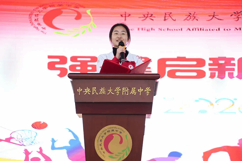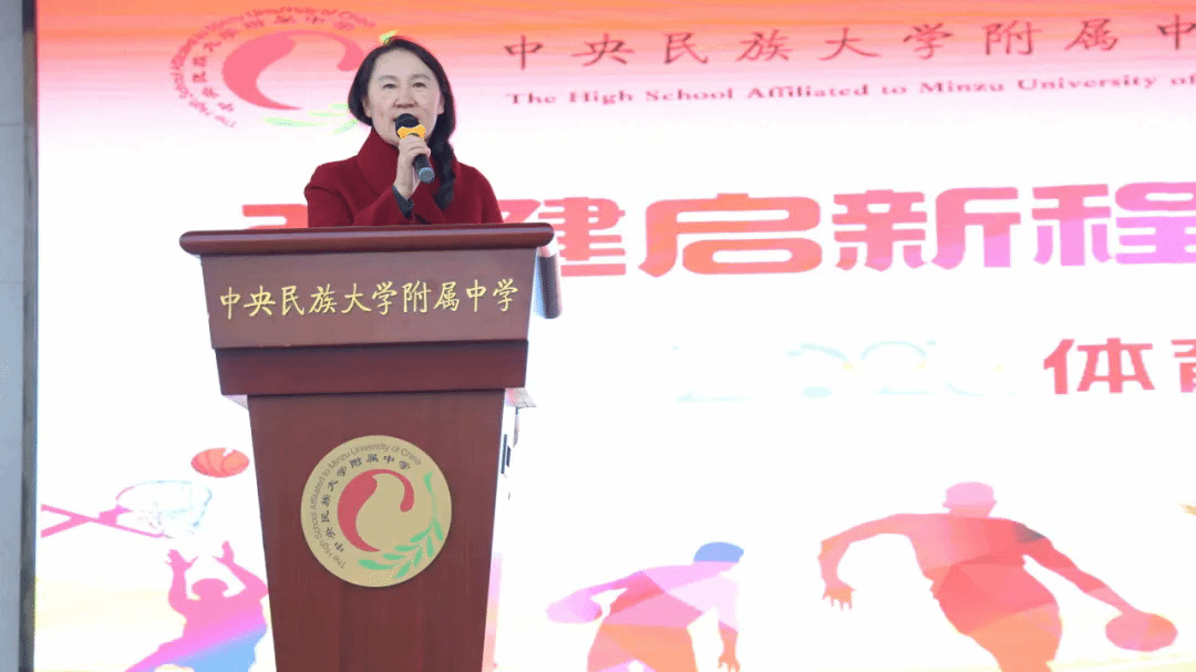 在热烈的掌声中,党委常务副书记佟丽娟郑重宣布:“中央民族大学附属中学2026年体育文化节正式开幕!”