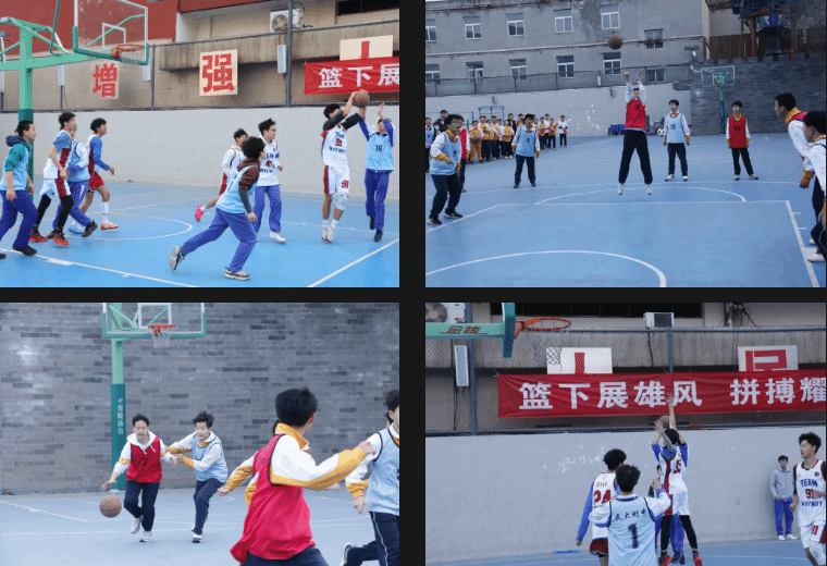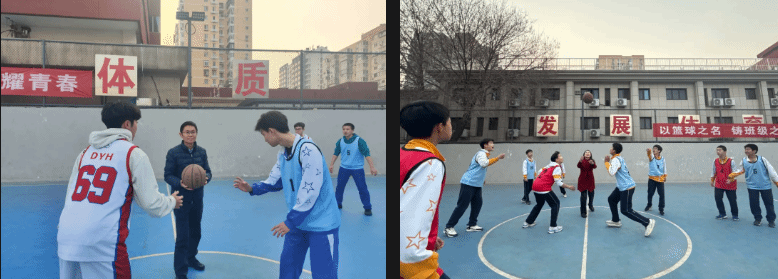 校领导为篮球班级联赛揭幕战开球。