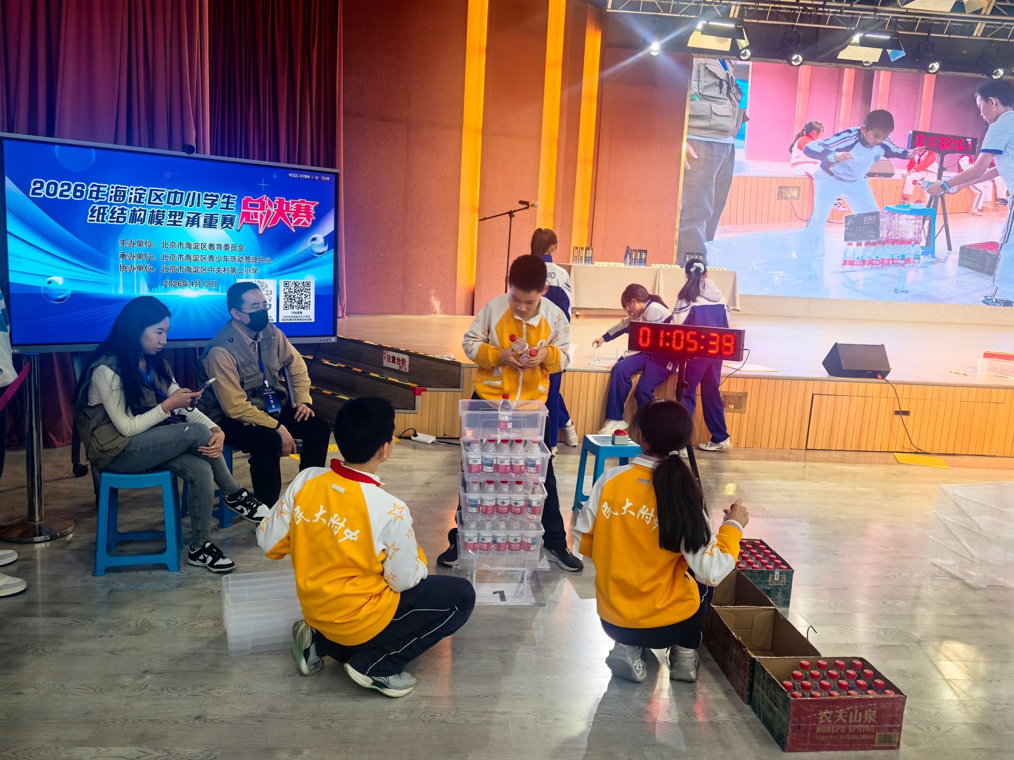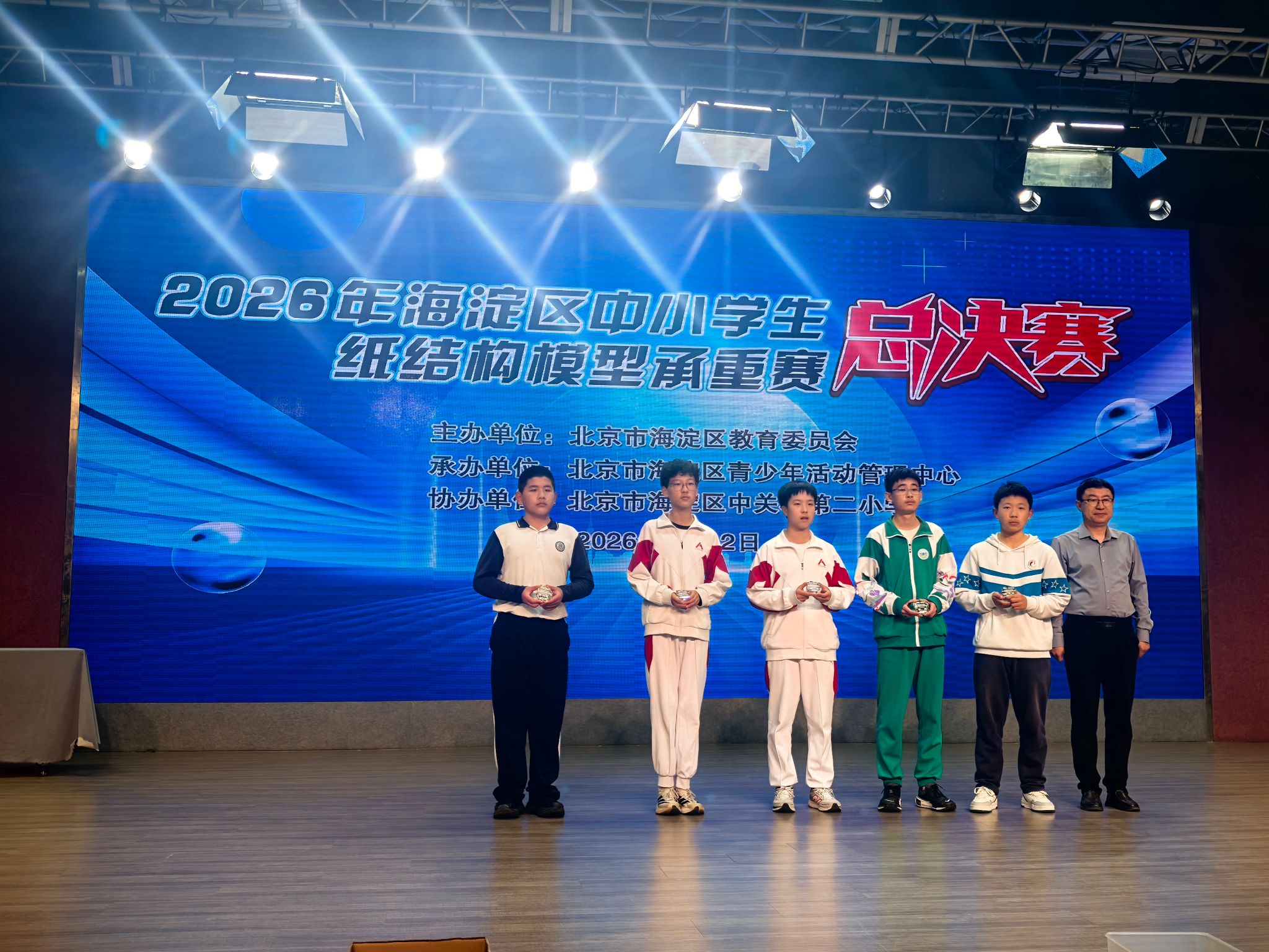 春和景明,捷报频传!2026年4月12日,海淀区中小学生纸结构模型承重赛总决赛在中关村二小百旺校区顺利落幕。我校派出由15名同学组成的参赛团队,凭借扎实的功底、默契的协作与不懈的坚持,在激烈角逐中脱颖而出,斩获多项荣誉,用实力书写青春答卷!