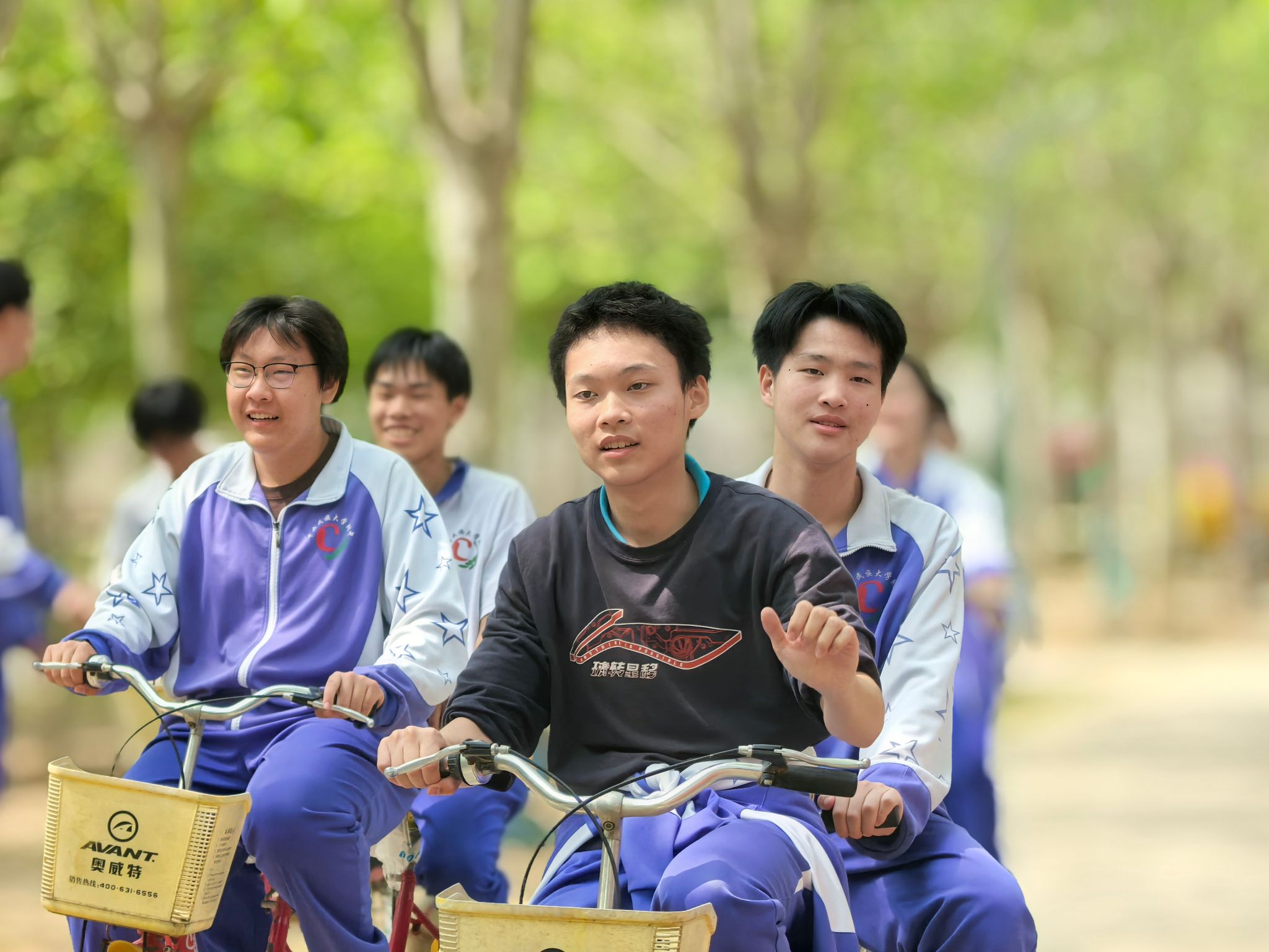 在“同心协力共克难关”双人自行车环节,同学们以两人一组为单位,默契配合,协调方向控制与节奏把握,用协调一致的蹬踏节奏复刻“步调统一”的行军协作精神,在弯曲路段的骑行挑战中体会长征途中战友互助的信任与力量。