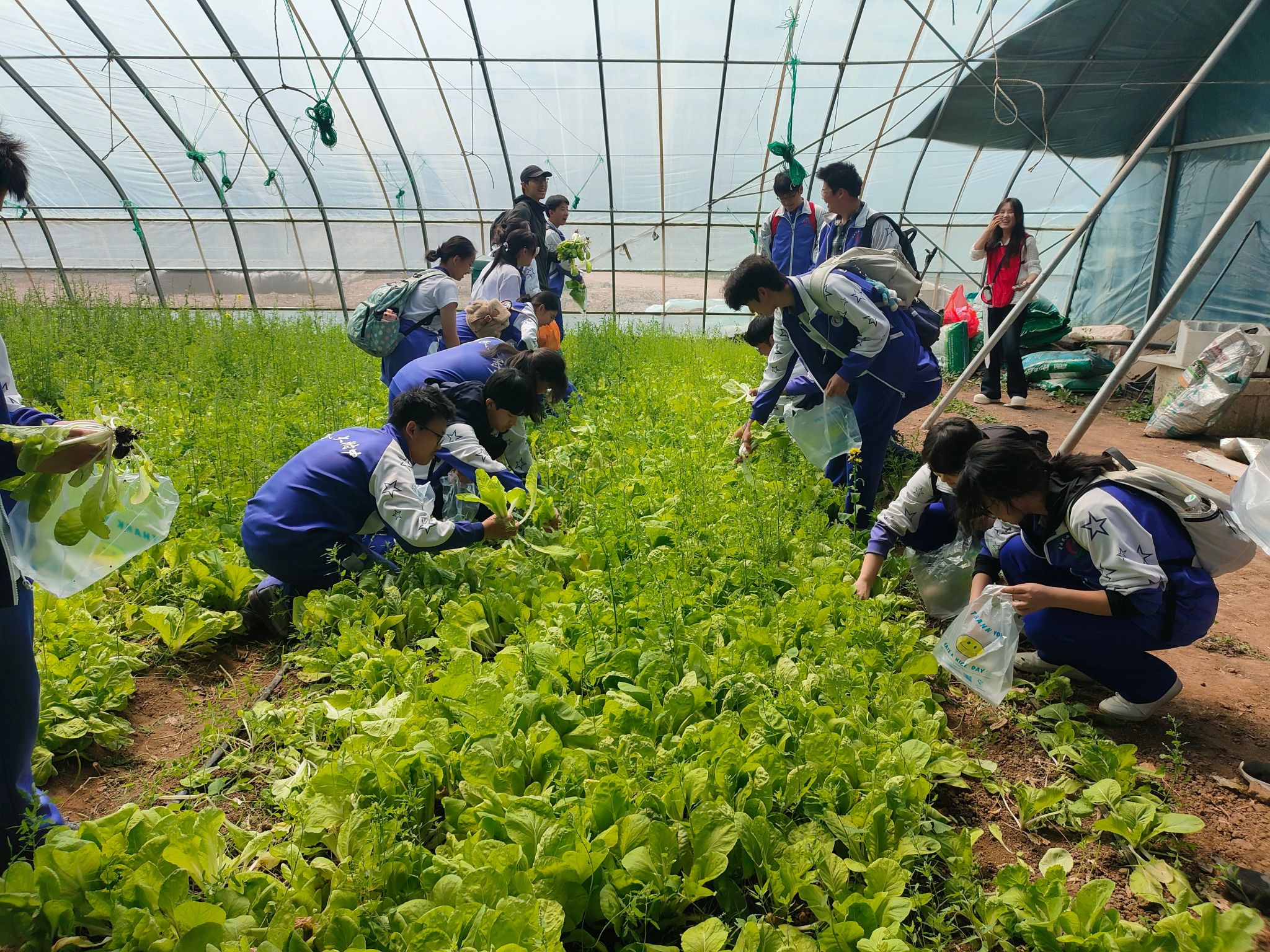 在“田间课堂学农技”蔬菜采摘区域,同学们聆听了农场技术员讲解快菜杂交培育技术、生长周期特性及种植要点,将劳动知识转化为可落地的实践技能,真切体会到每一份食物从田间到餐桌的来之不易。