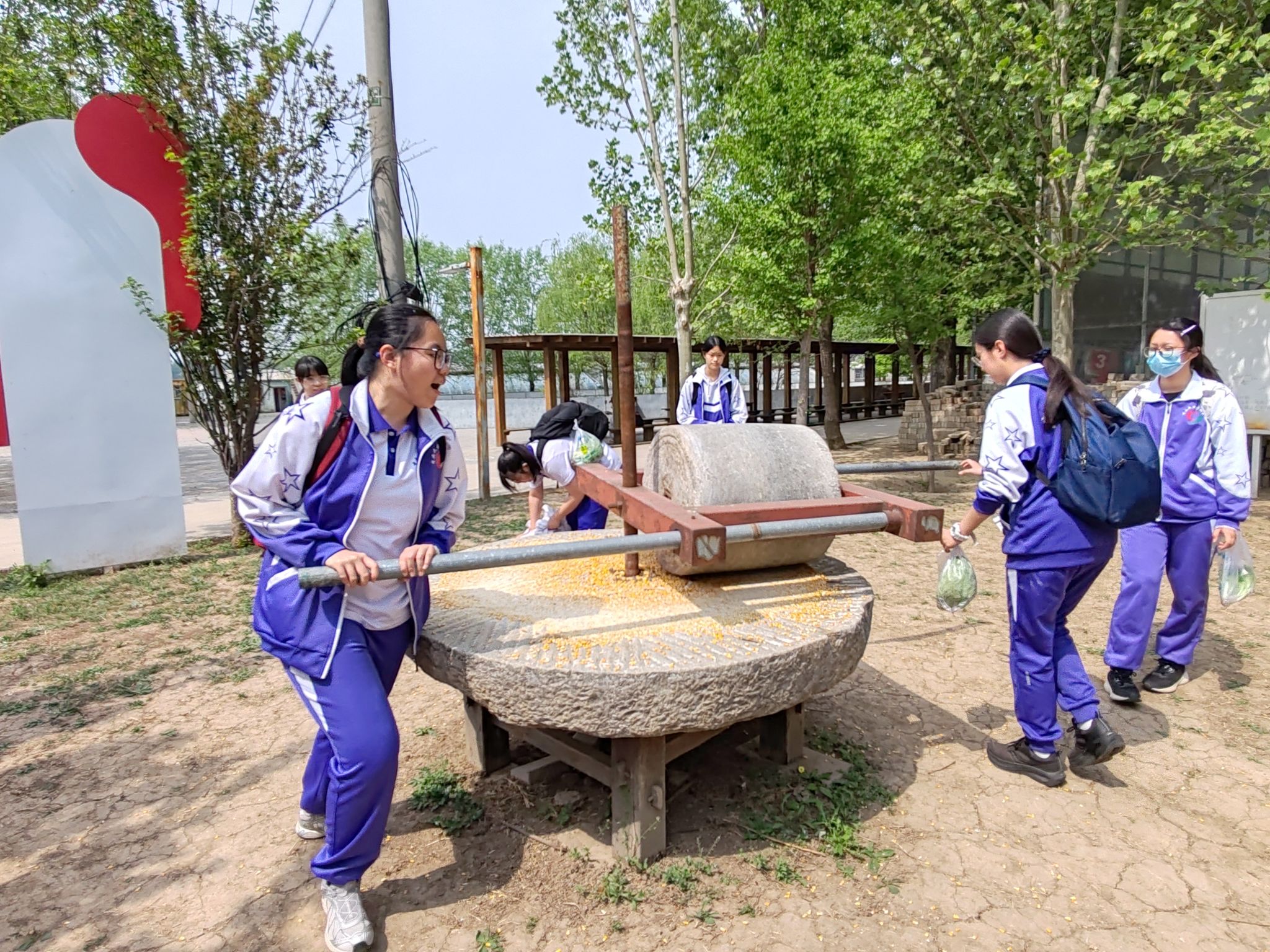 在“传统工艺里的科学”脱玉米粒磨玉米面环节,同学们从手工脱粒到石磨研磨,沉下心琢磨不同手法对出粉粗细的影响,让劳动实践与学科知识深度融合,感受传统技艺中的智慧传承。