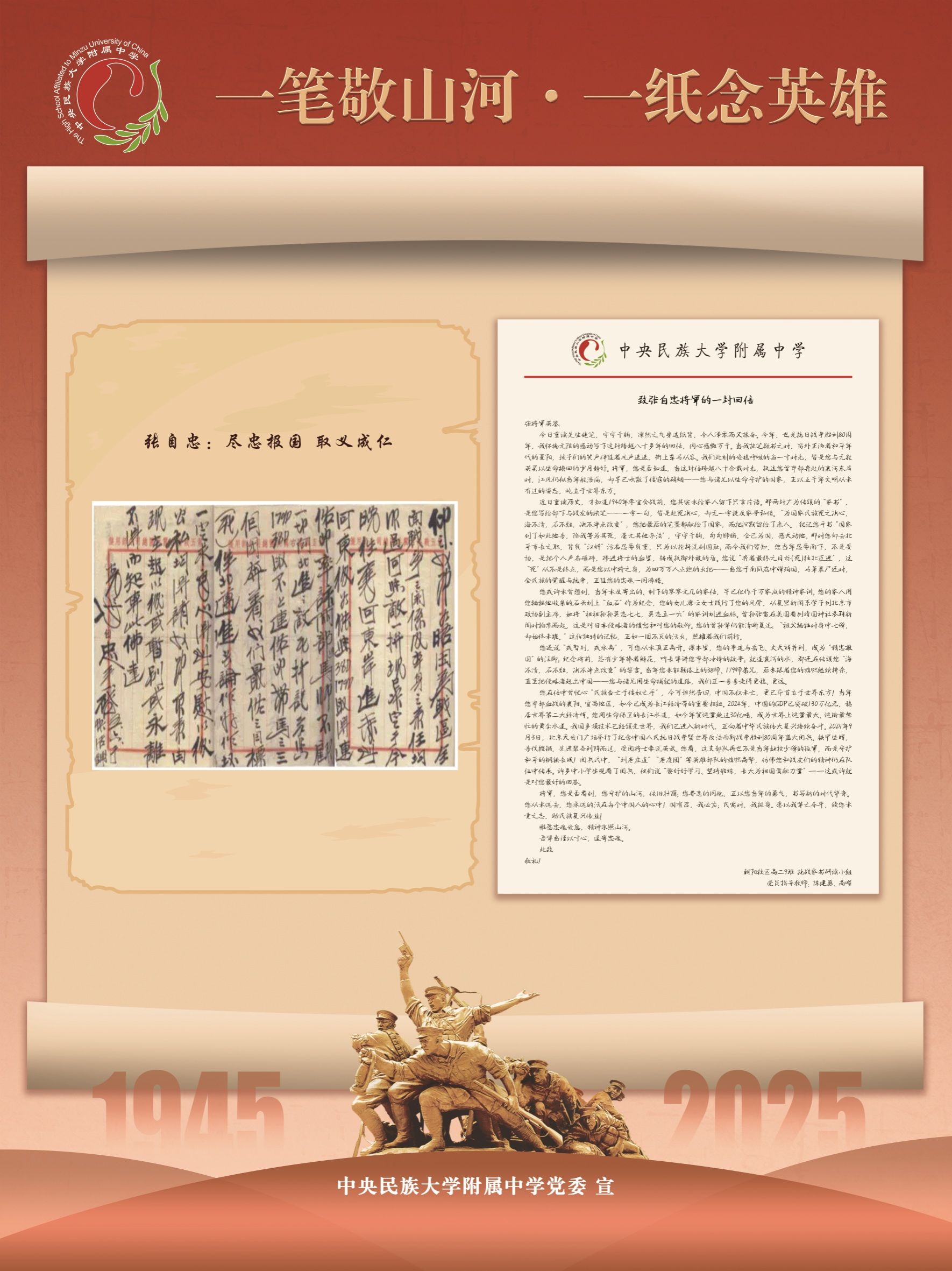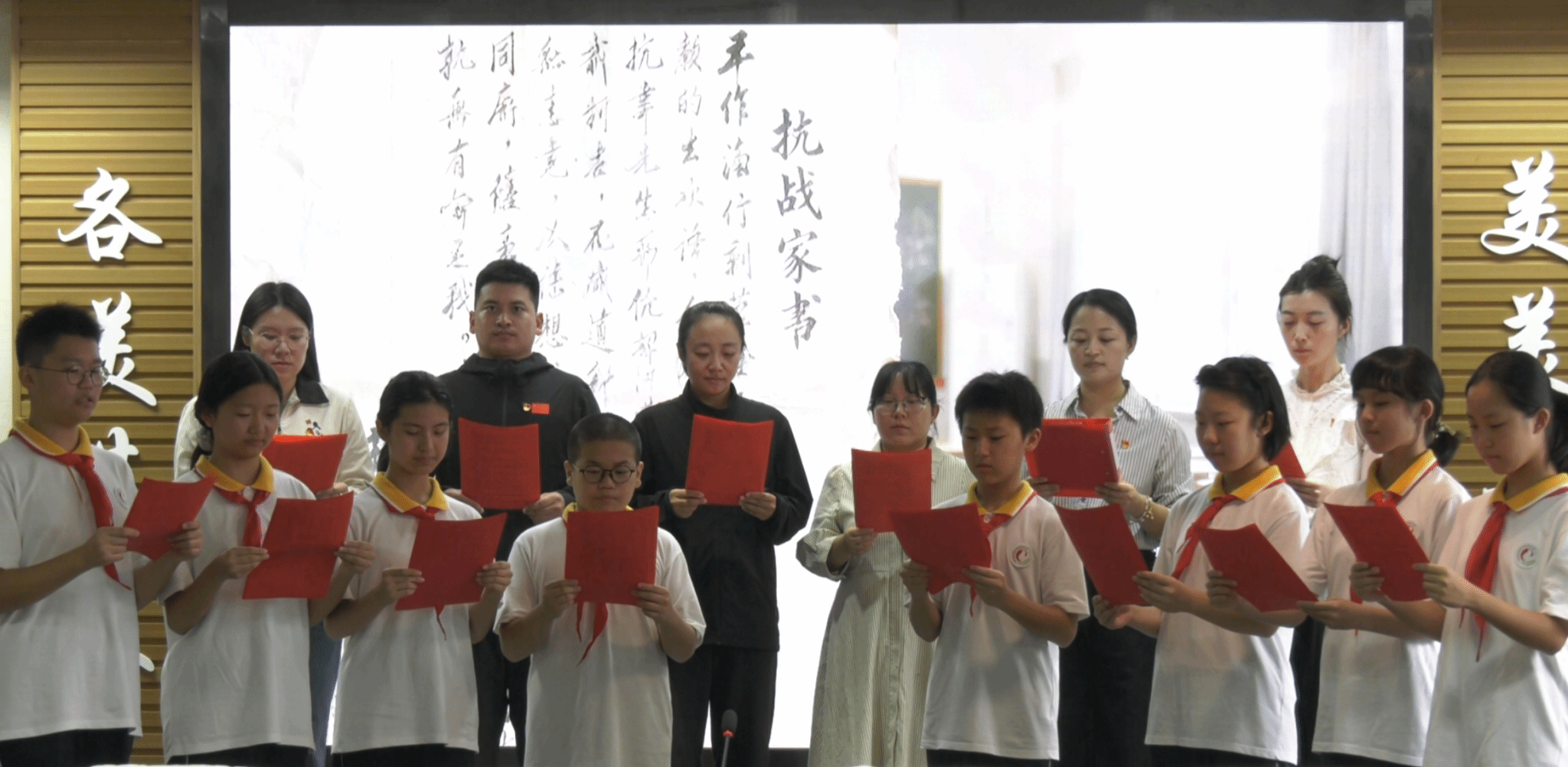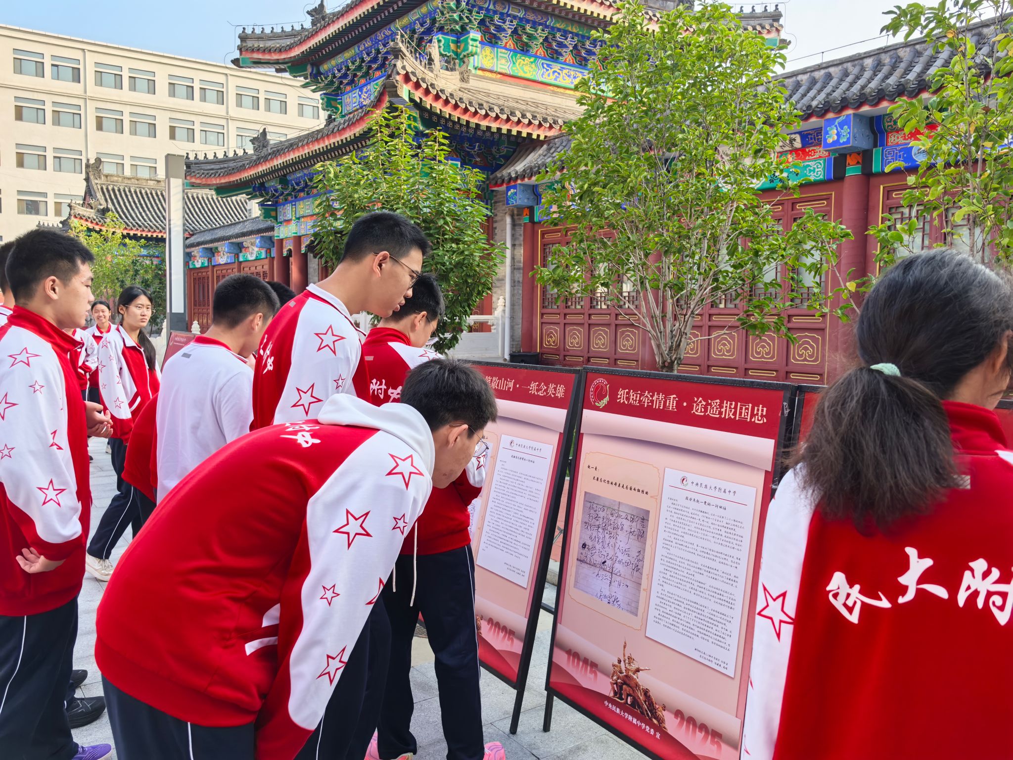 在深入共读阶段,各共读小组围绕“如果我在那个年代”主题,撰写致抗战先辈的回信,党委制作成致敬英雄回信主题展在民大附中各校区展出;同时创排3分钟红色家书诵读视频,以艺术化形式再现烽火岁月中的家国情怀。
