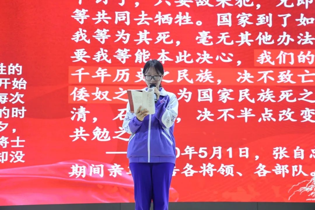 高一1班钟锦华同学在全校开学第一课上带领全体师生共读《抗战家书》