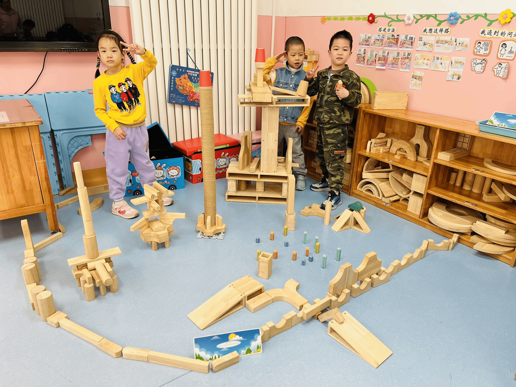 在各班活动室,教师们正有序组织幼儿开展自主游戏。佟书记一行与孩子们进行亲切互动,并细致了解了班级环境创设、生活设施配备及一日活动流程等情况。整洁温馨的班级环境、孩子们专注投入的游戏状态,充分展现了民大幼儿园日常保教工作的扎实成效。