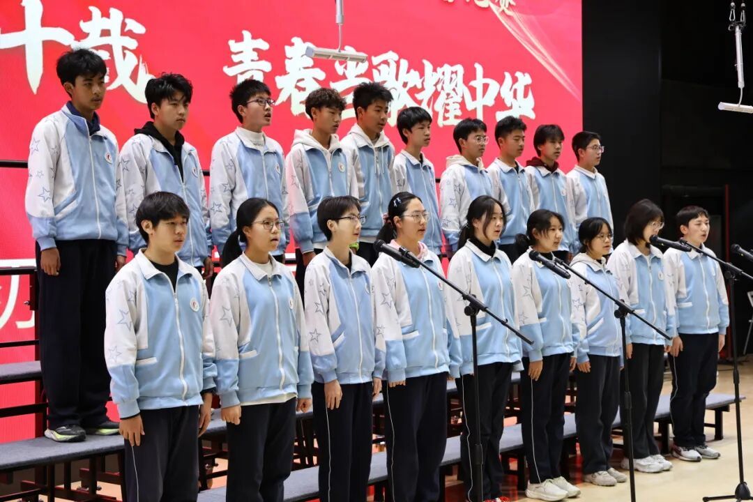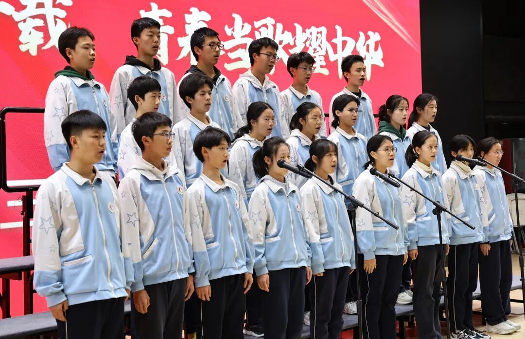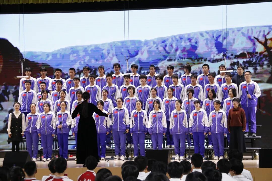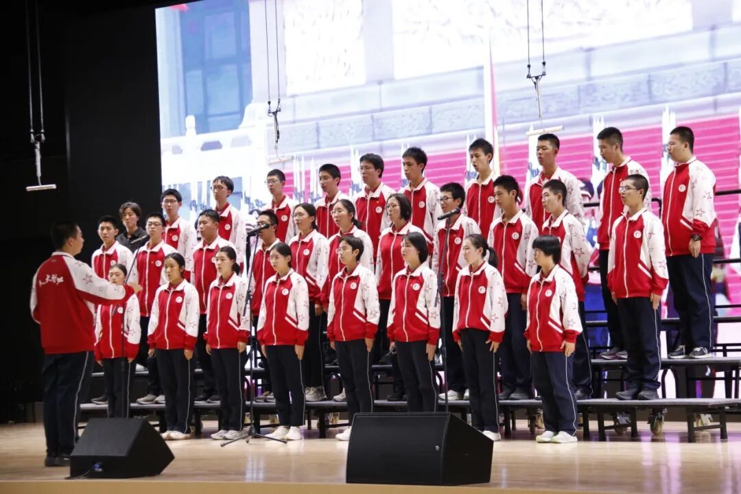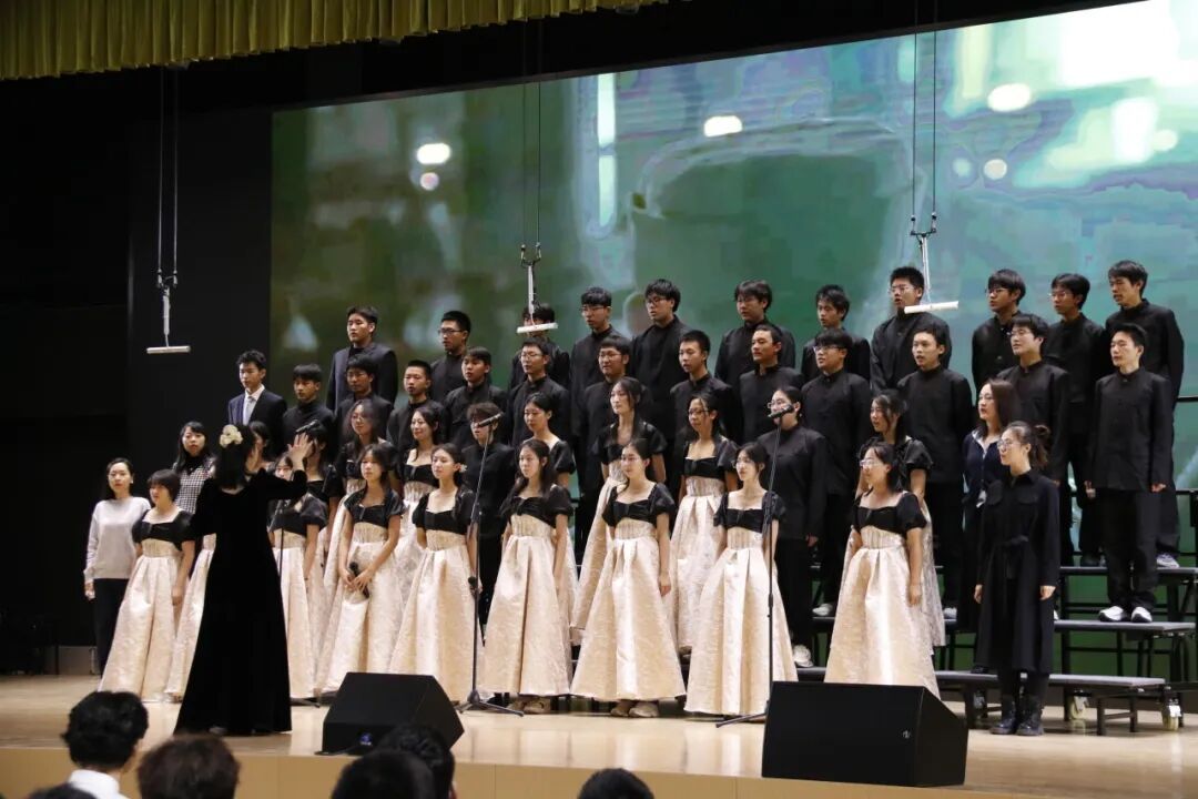 高一、高二年级各班分别演唱了经典必唱曲目《保卫黄河》。高中部、初中部各班以丰富的艺术形式与饱满的情感演绎自选歌曲,呈现了一场视听盛宴。