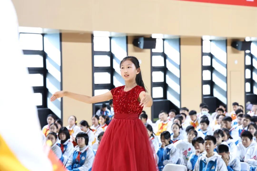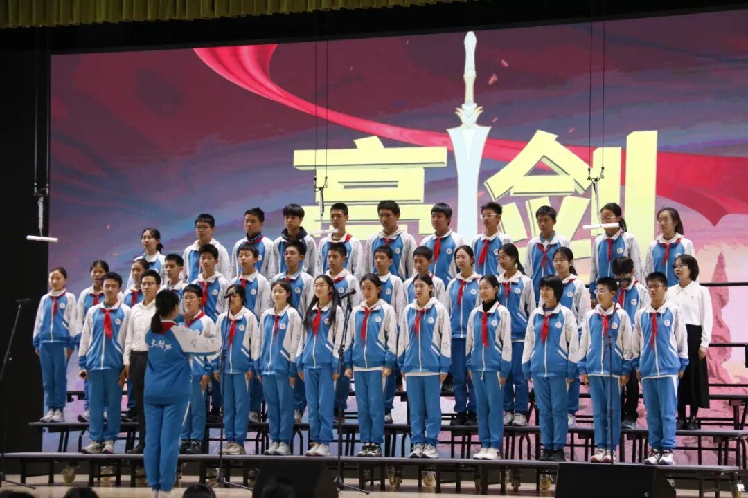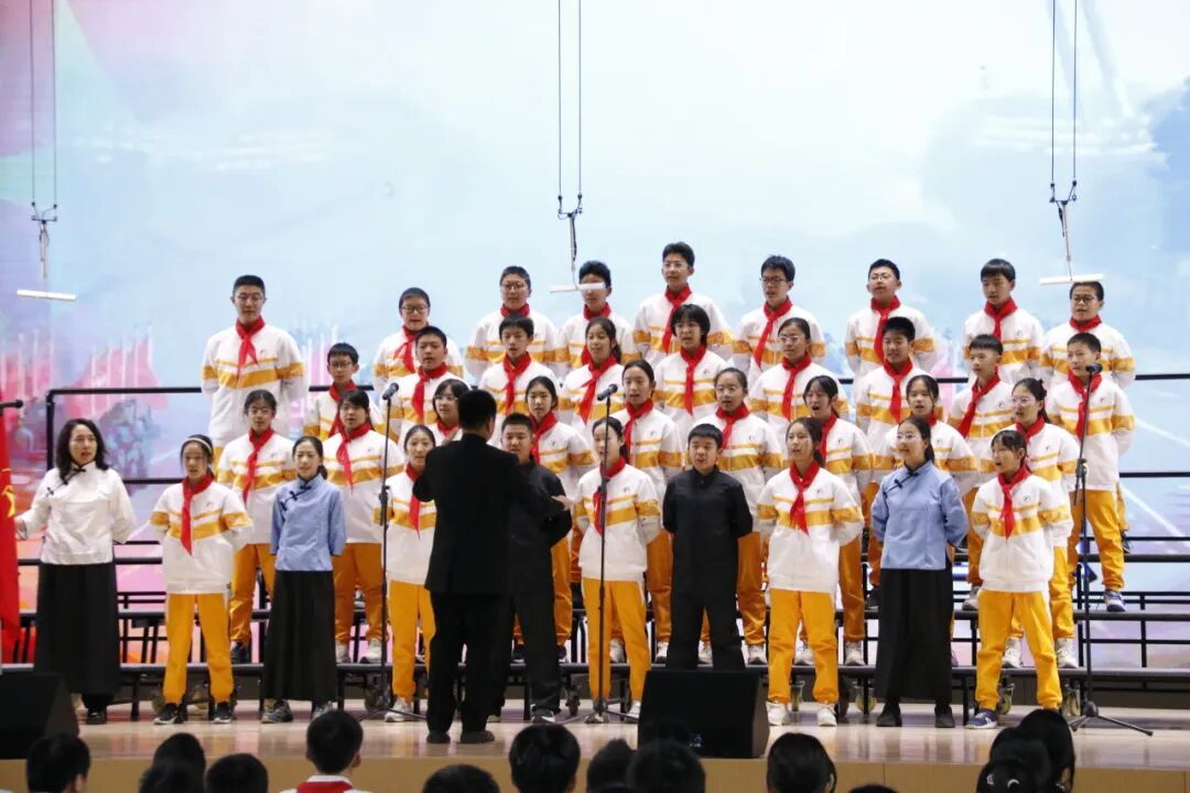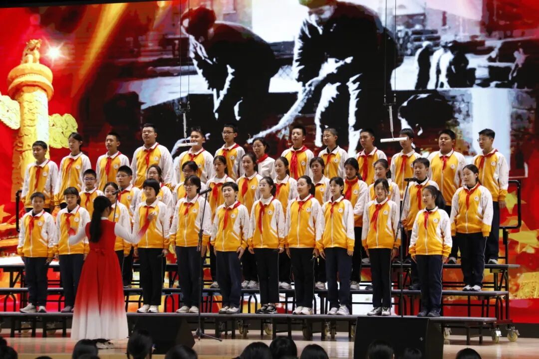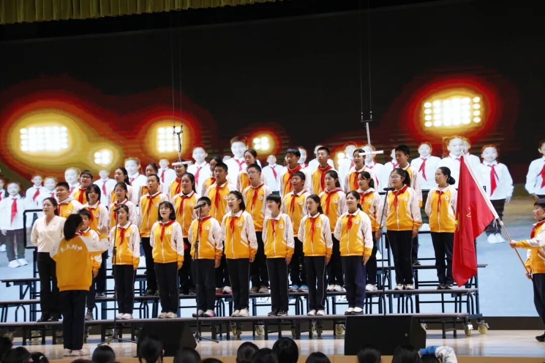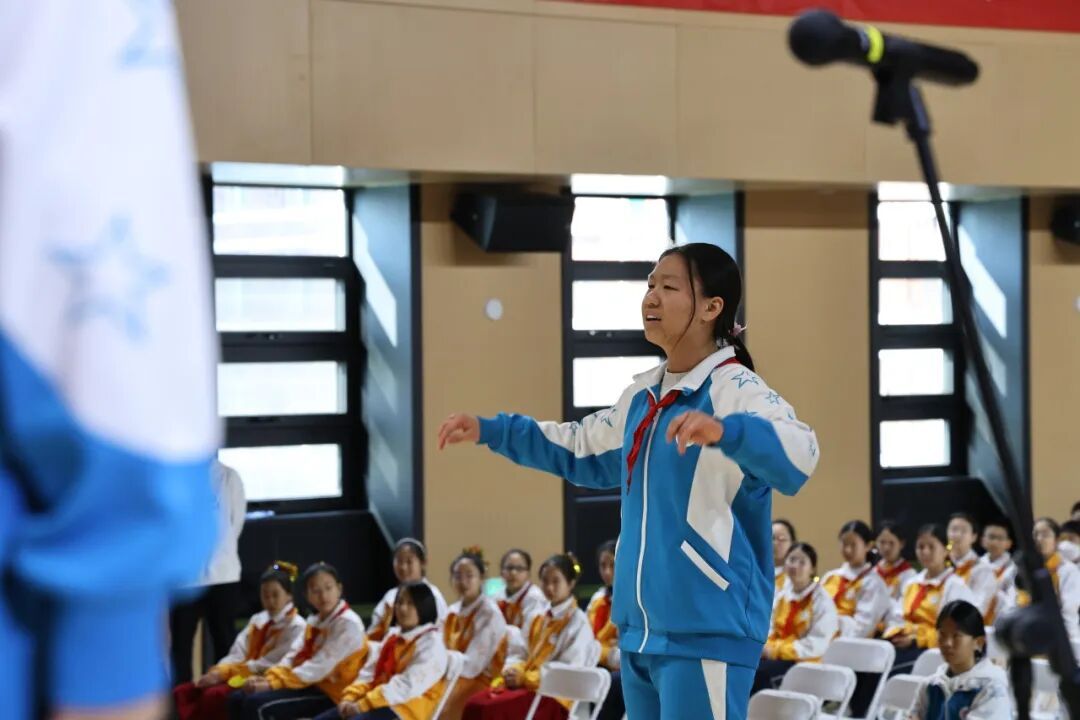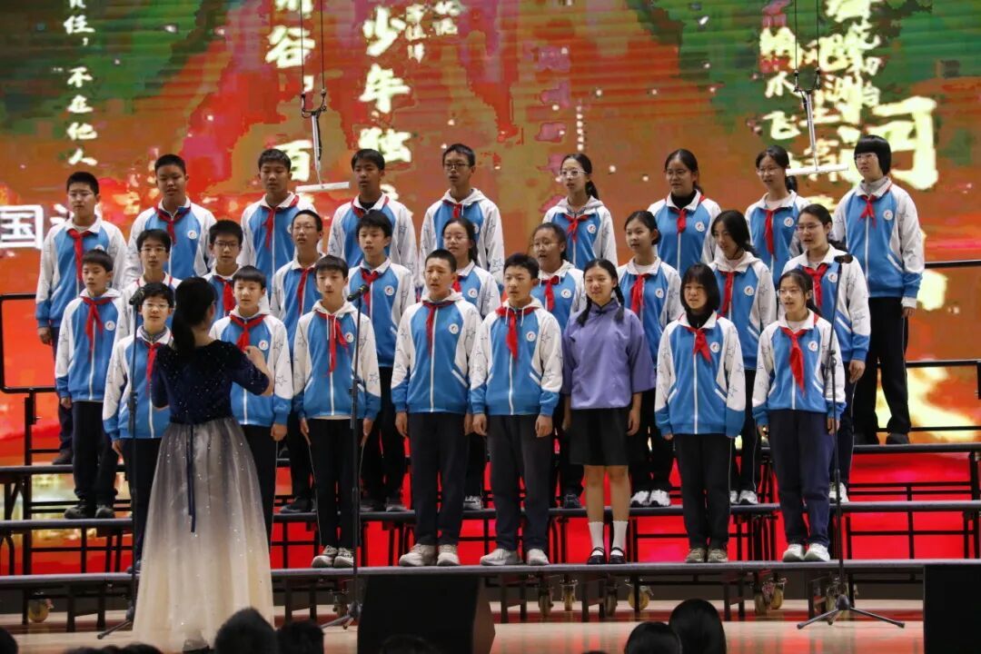 初一6班带来的《少年先锋队队歌》,唱出红领巾所传承的、属于少年先锋的爱国精神。