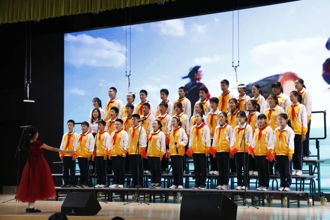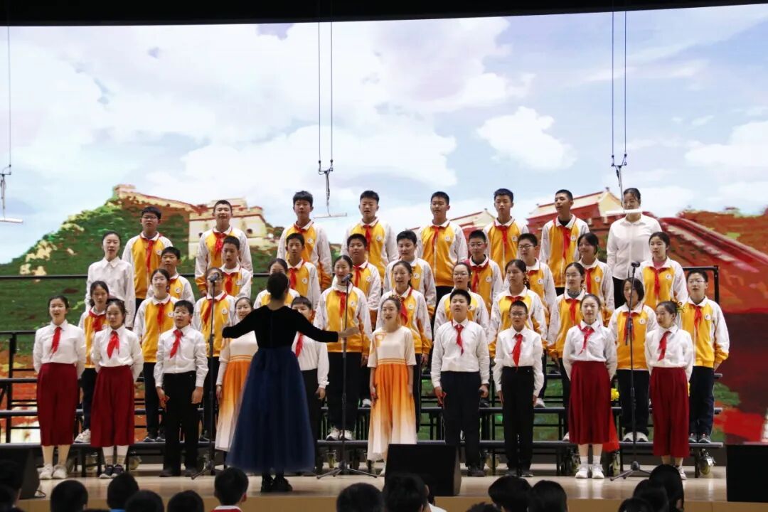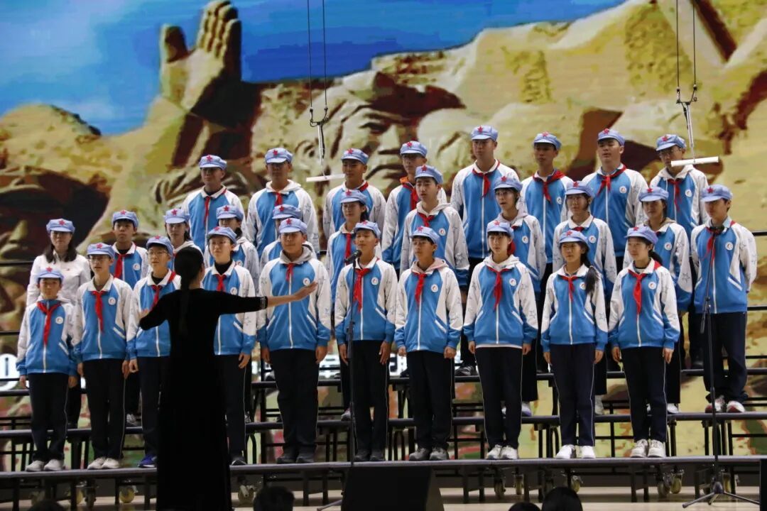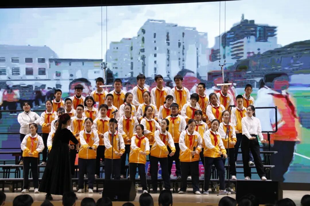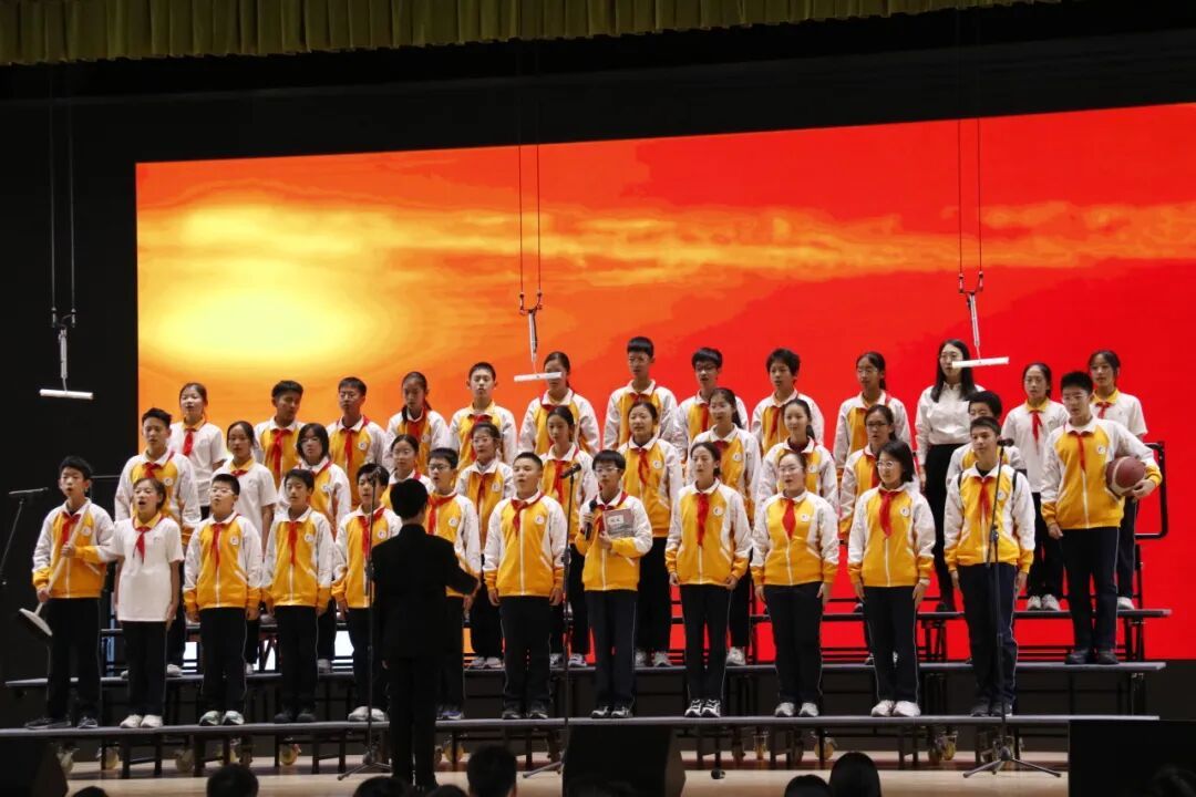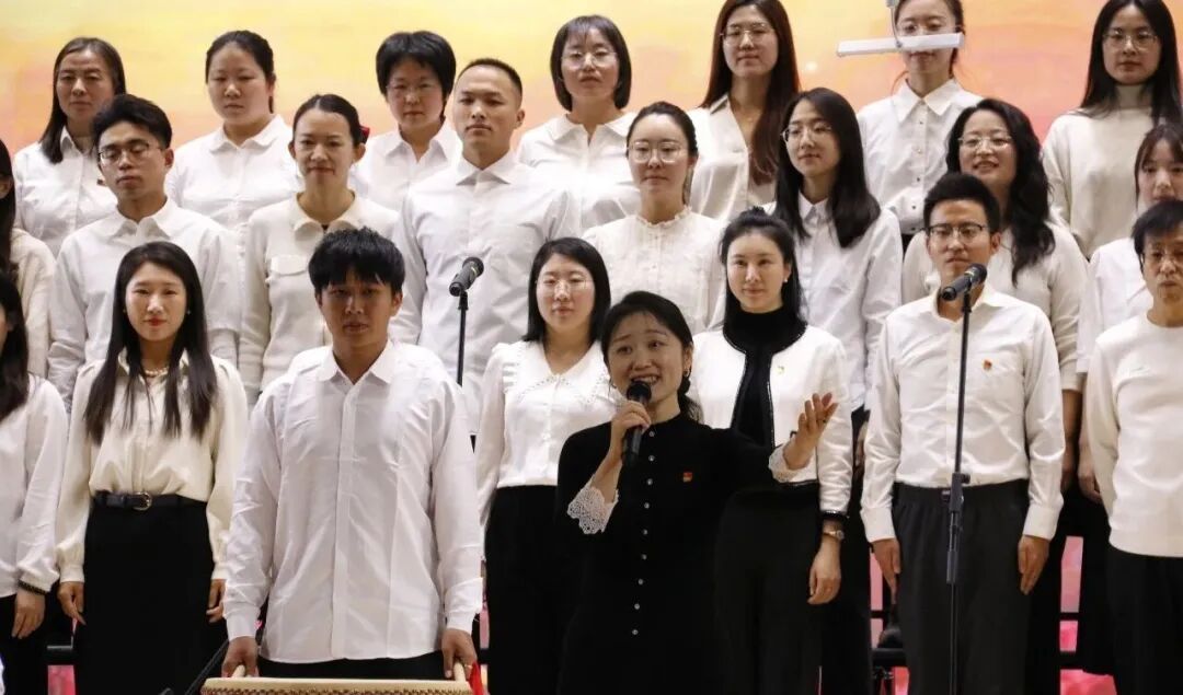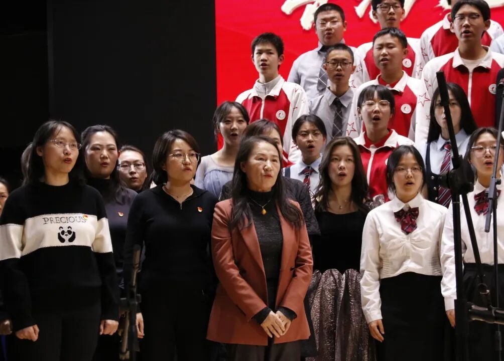 全体初中教师带来的《映山红》,以歌传情,致敬峥嵘岁月;以歌言志,许下为党育人、为国育才的庄严承诺。