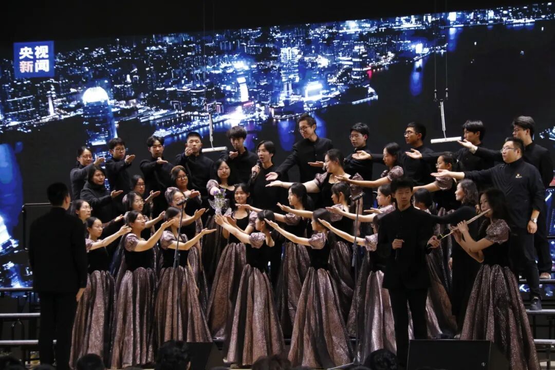 高二1班带来的《紫荆花盛开》诉说着家国团圆的深情。