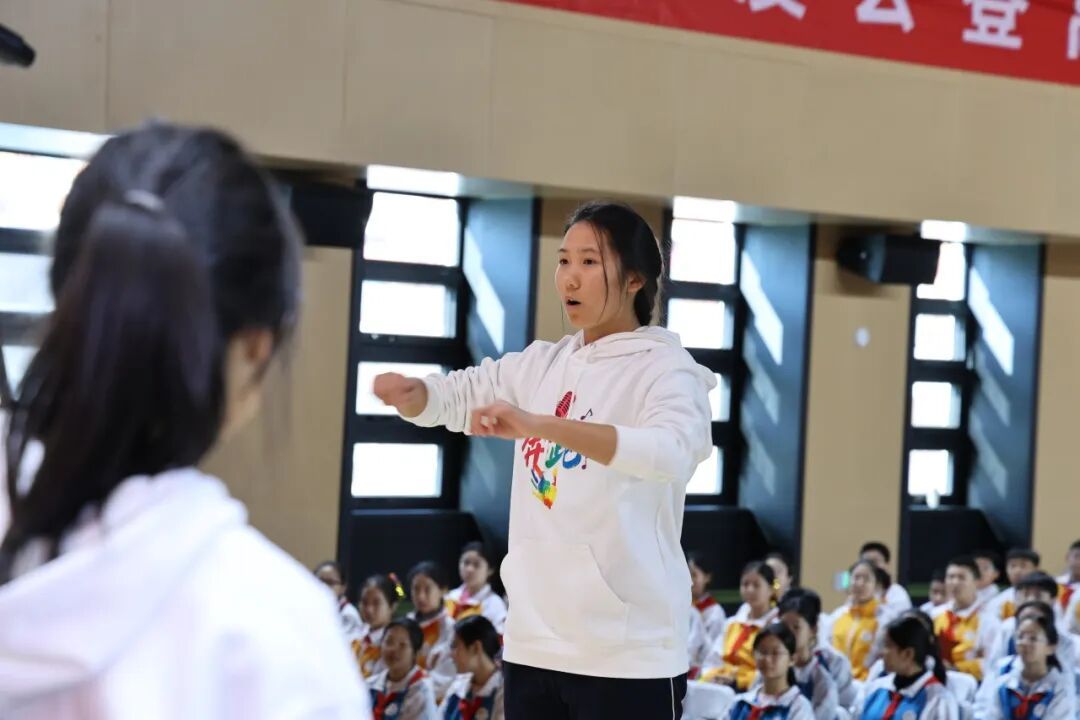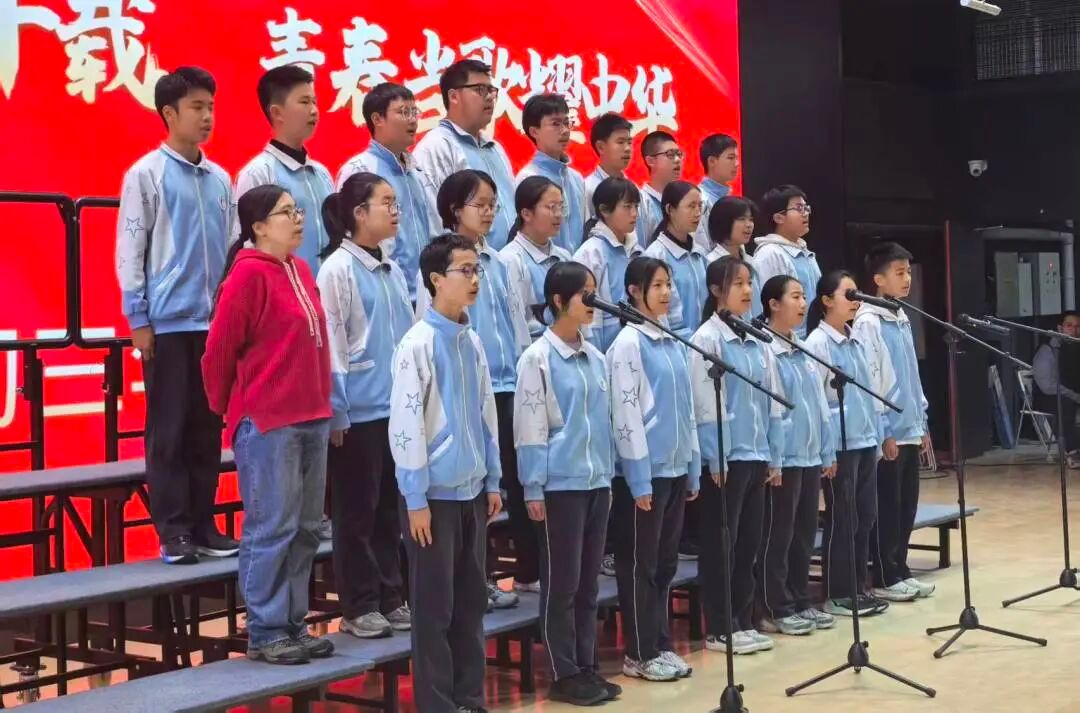 初二5班带来的《奔跑》,以明快节奏唱出少年迎风向前、接棒时代的热忱。