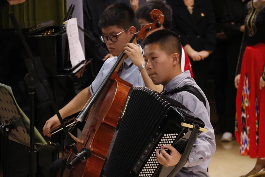 学校混声合唱团倾情演绎改编合唱作品《赛里木湖的月光》,以多元民族音乐特色展现了“各美其美,美美与共”的校园文化。