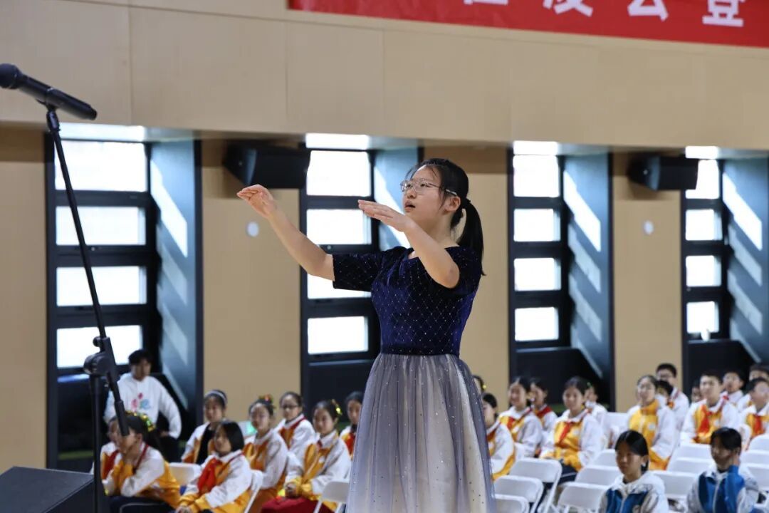 初一1班带来的《闪闪红星》,童声清澈,眼中光芒如红星闪耀,唱出信仰的模样。