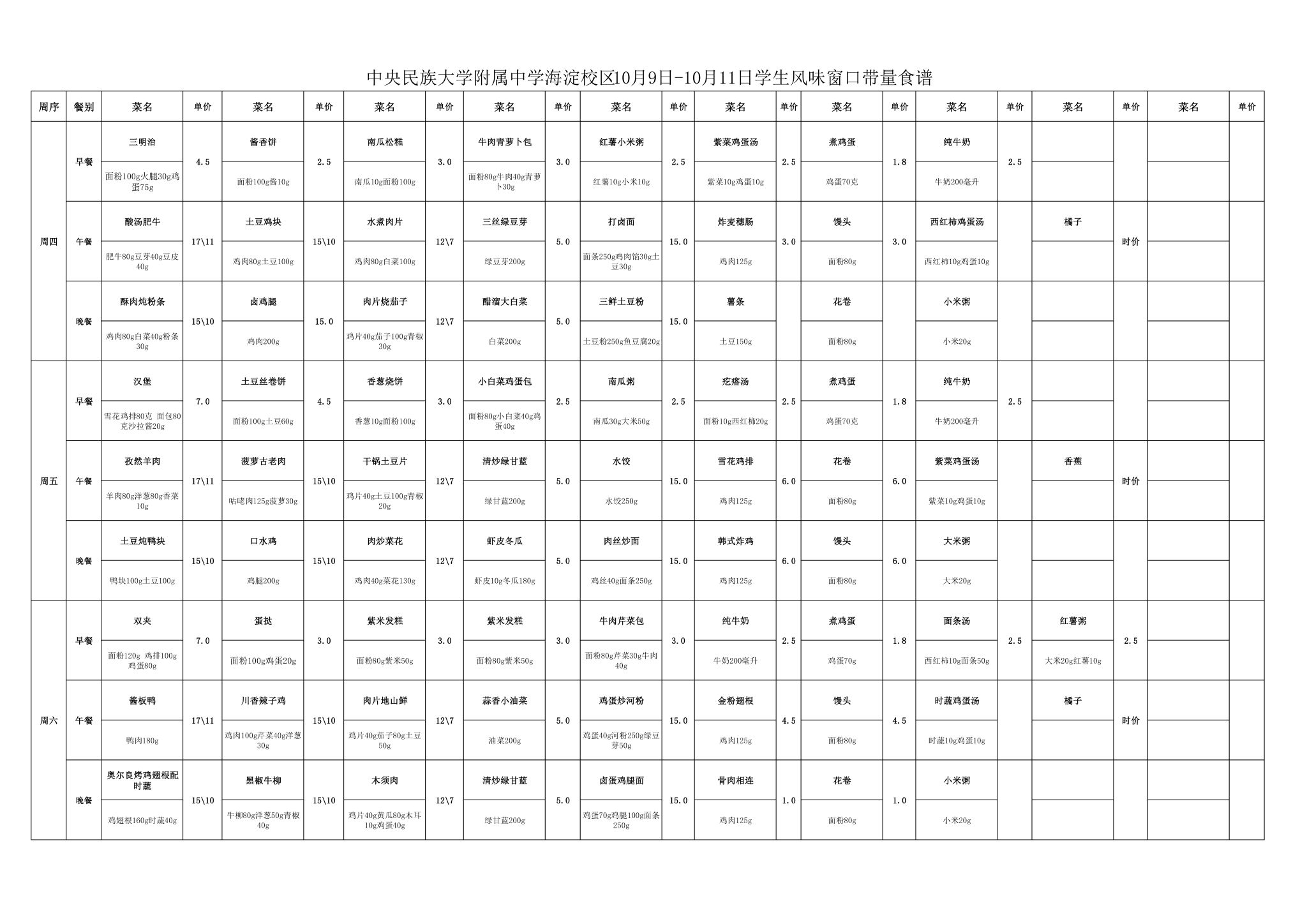 2025年秋季学期民大附中海淀校区学生食堂菜谱公示(2025.10.9-2025.10.11)