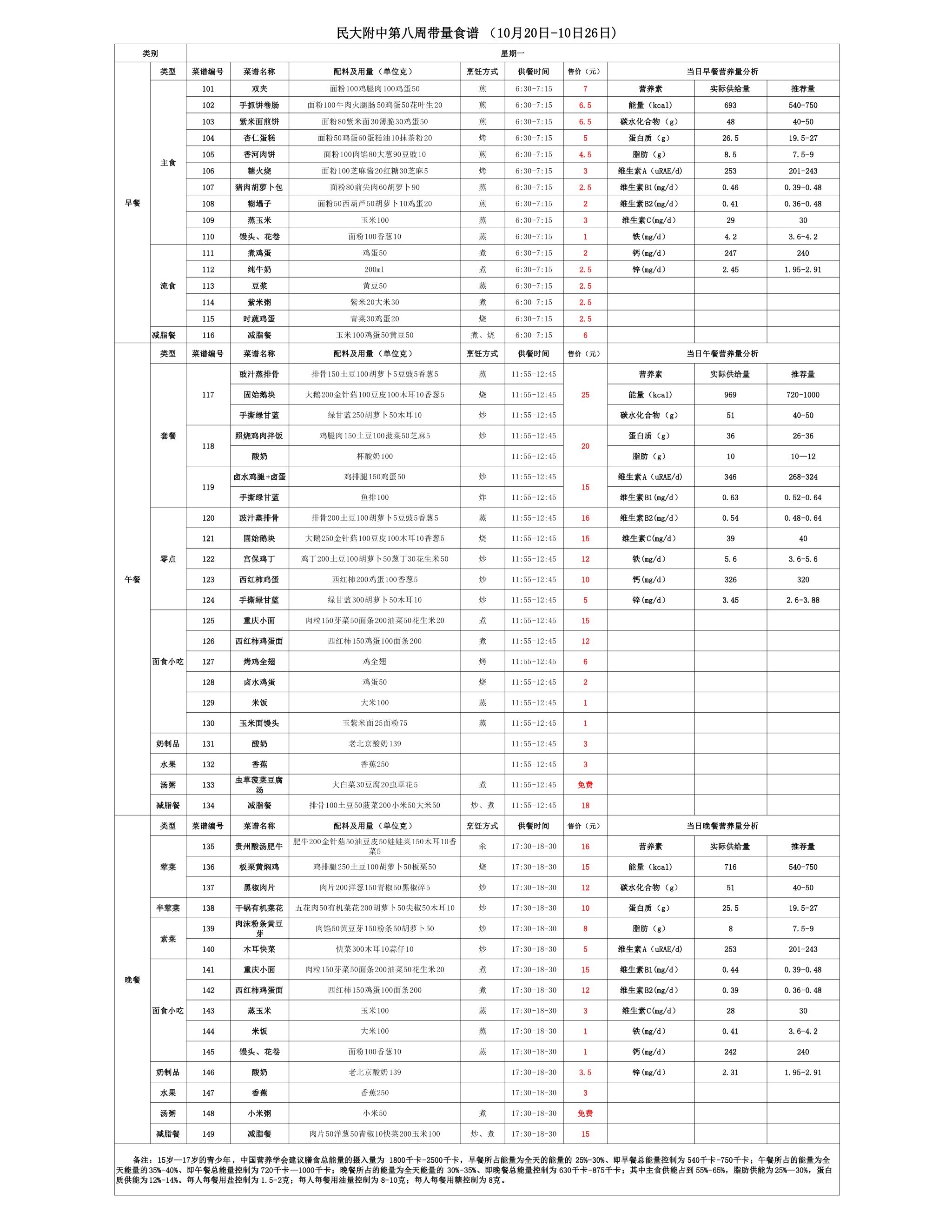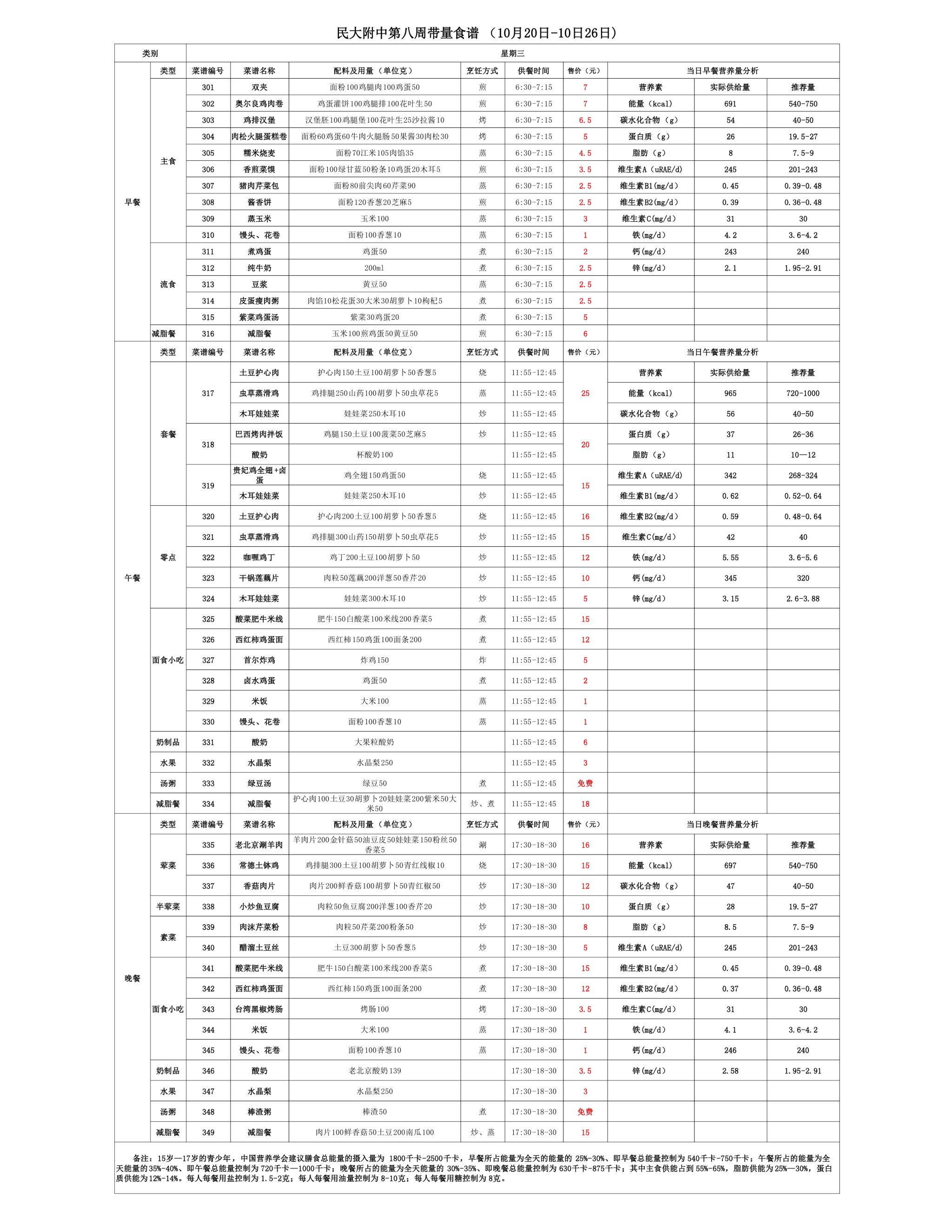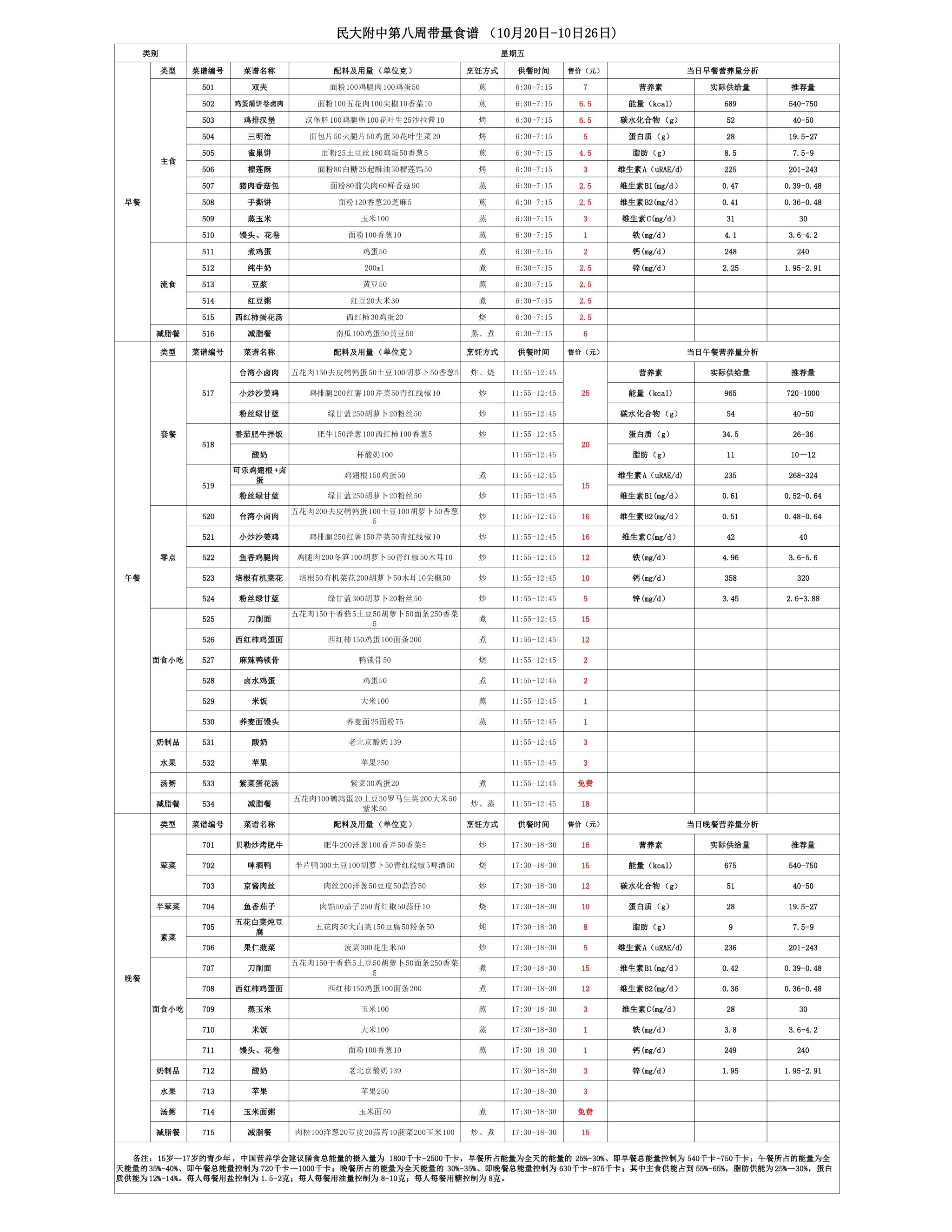 2025年秋季学期朝阳校区食堂菜谱(2025.10.20-10.26)