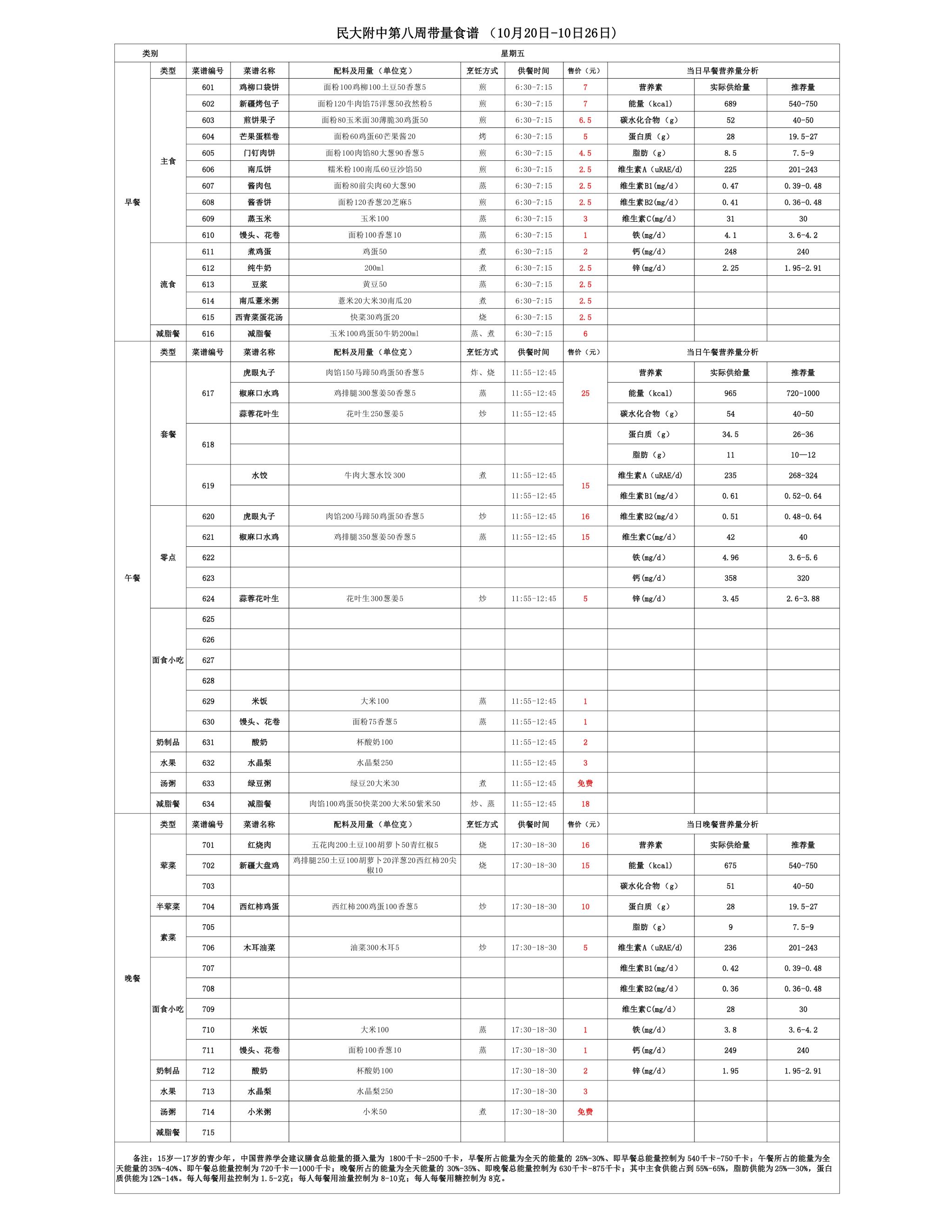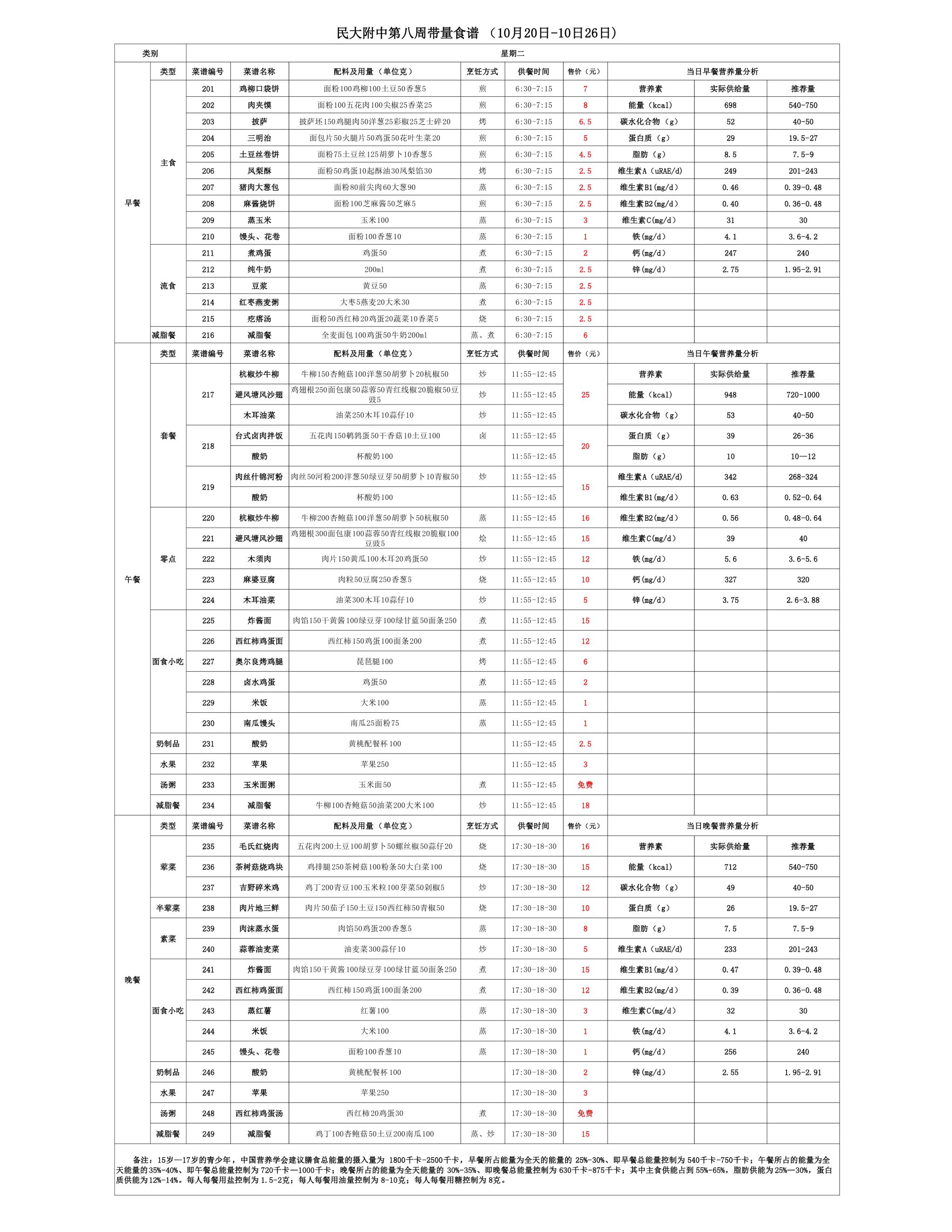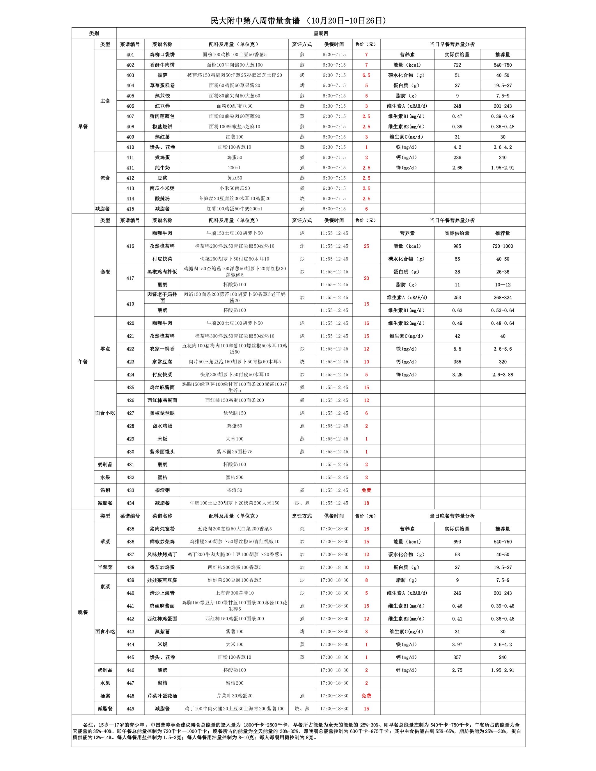 2025年秋季学期朝阳校区食堂菜谱(2025.10.20-10.26)