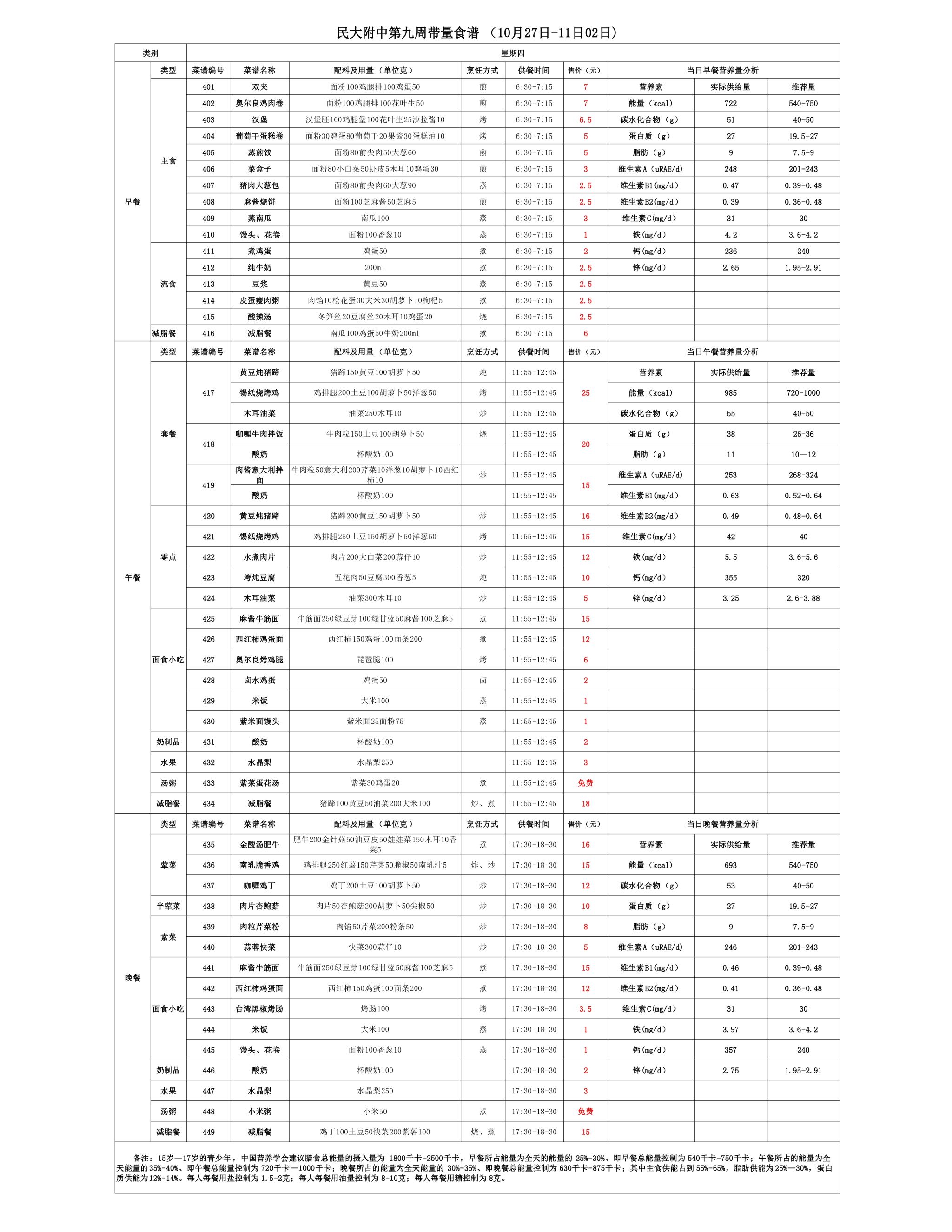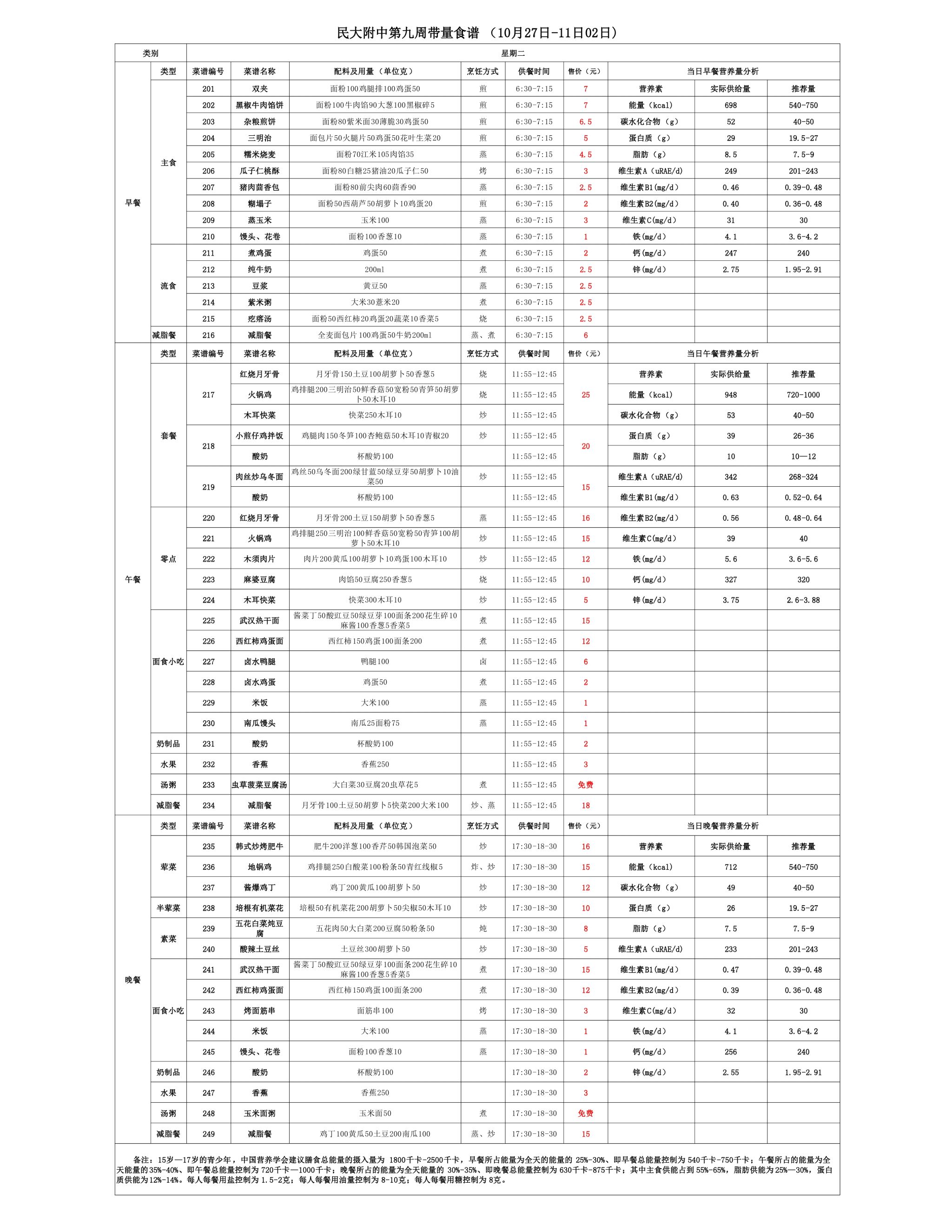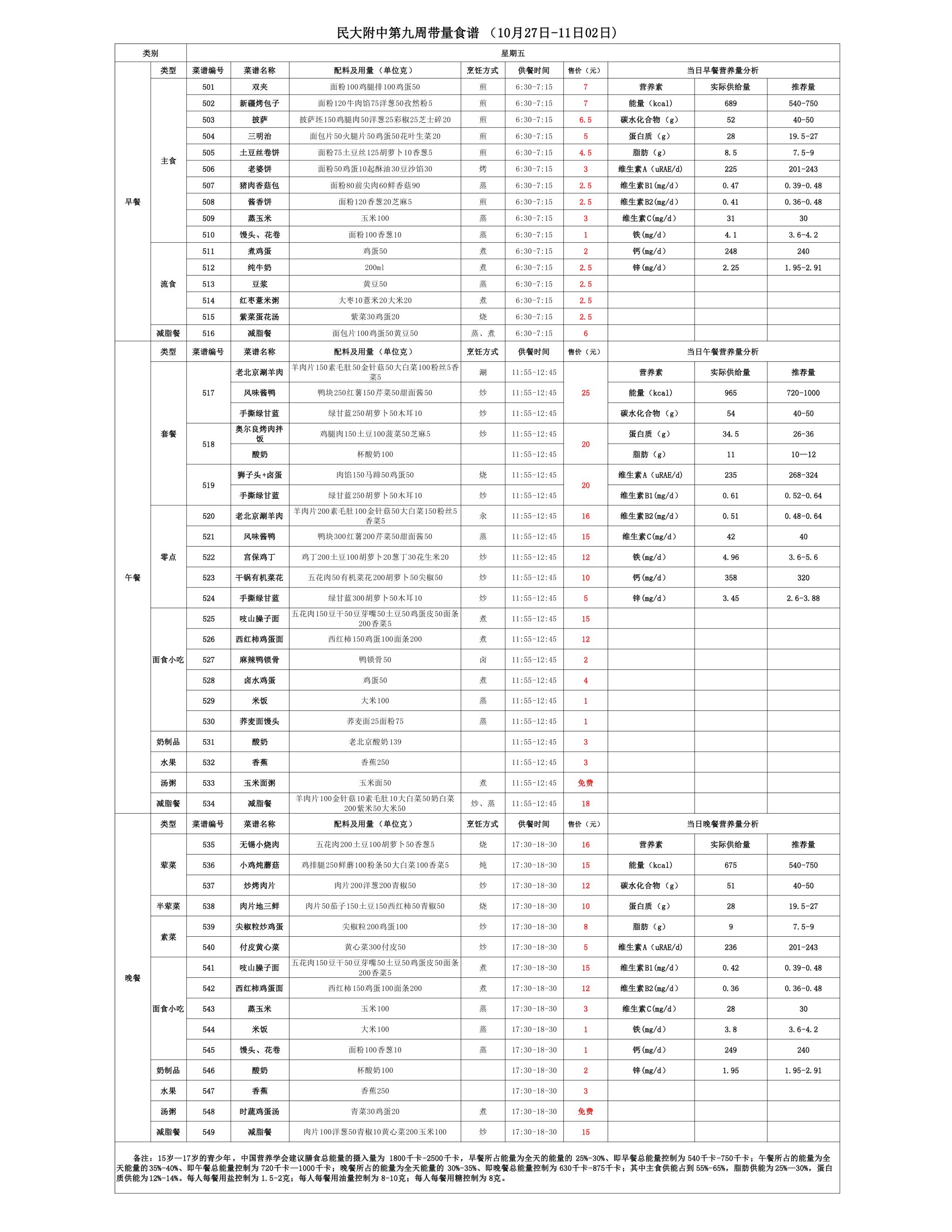 2025年秋季学期朝阳校区食堂菜谱(2025.10.27-11.02)