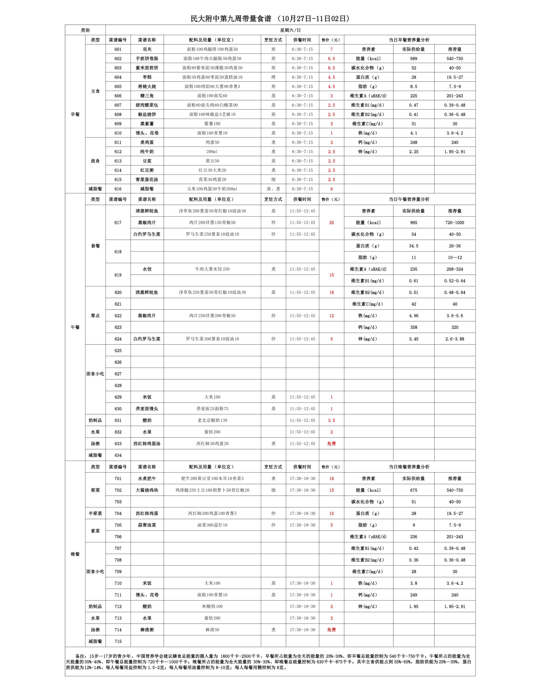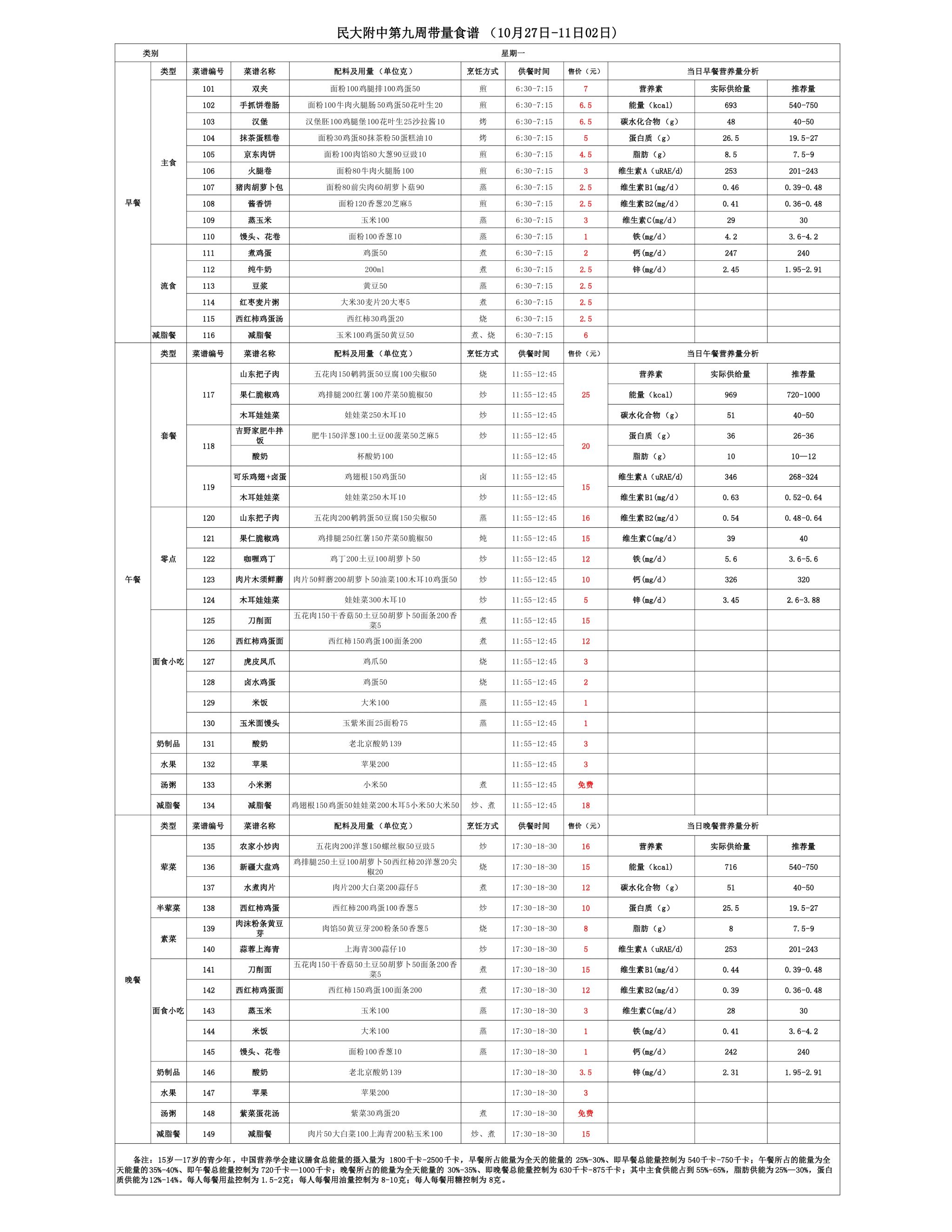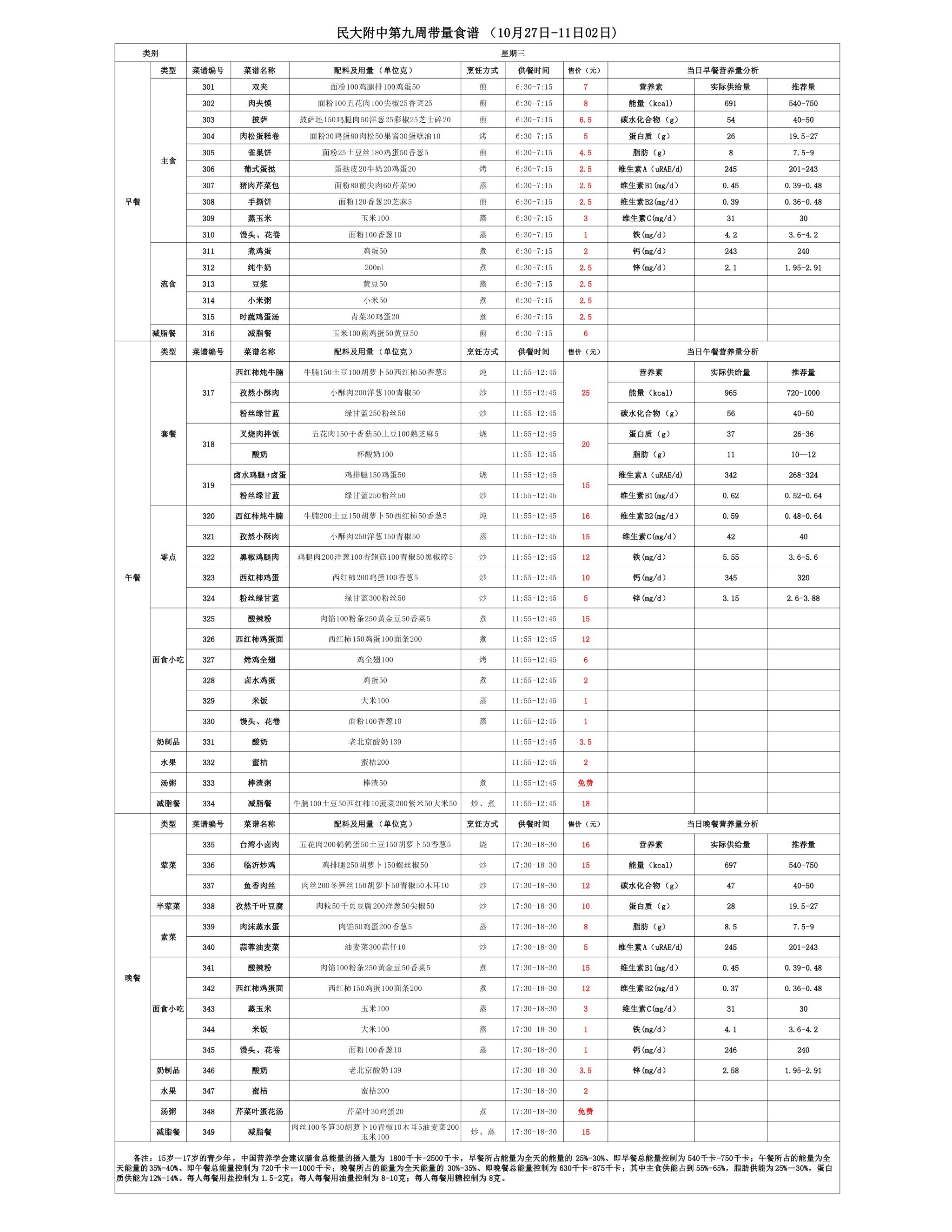 2025年秋季学期朝阳校区食堂菜谱(2025.10.27-11.02)