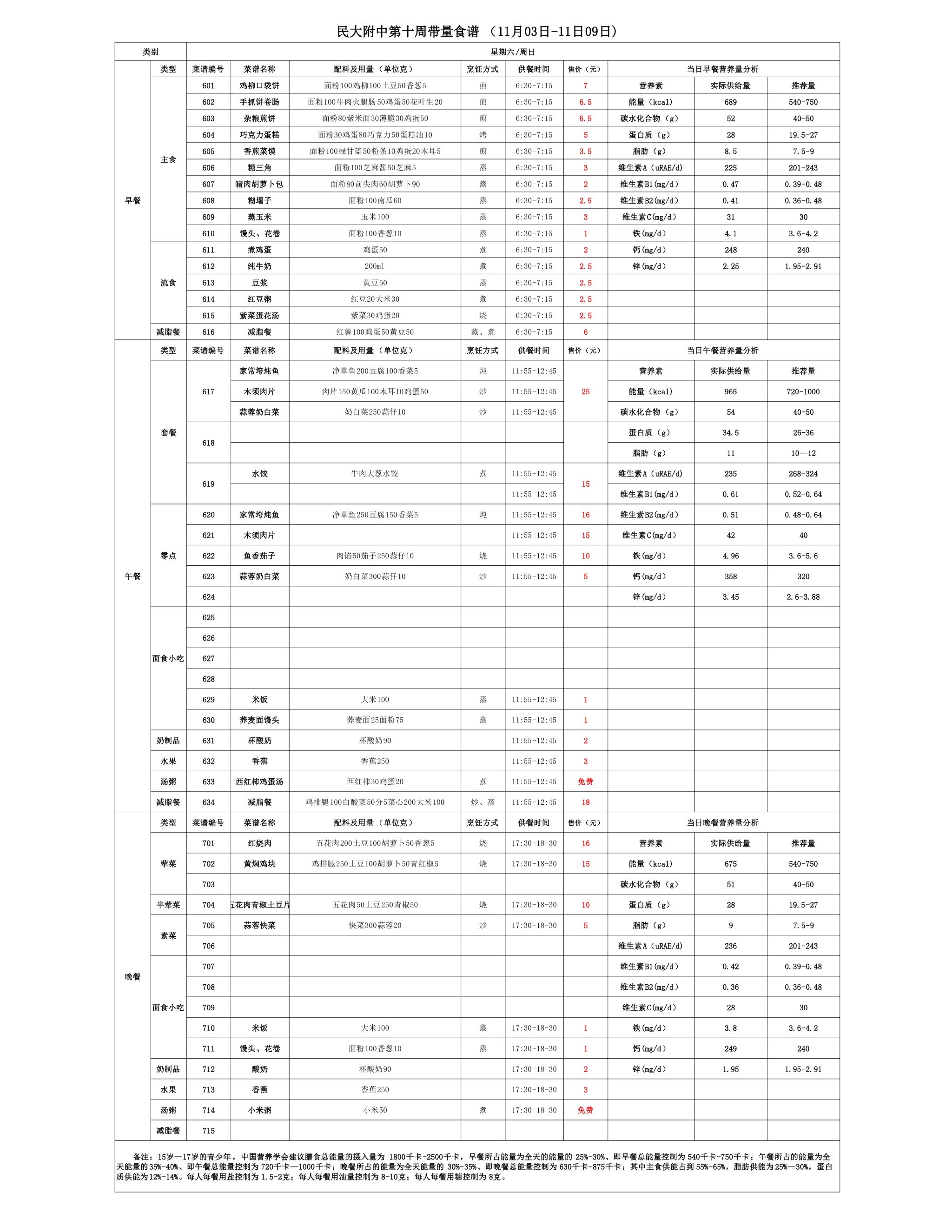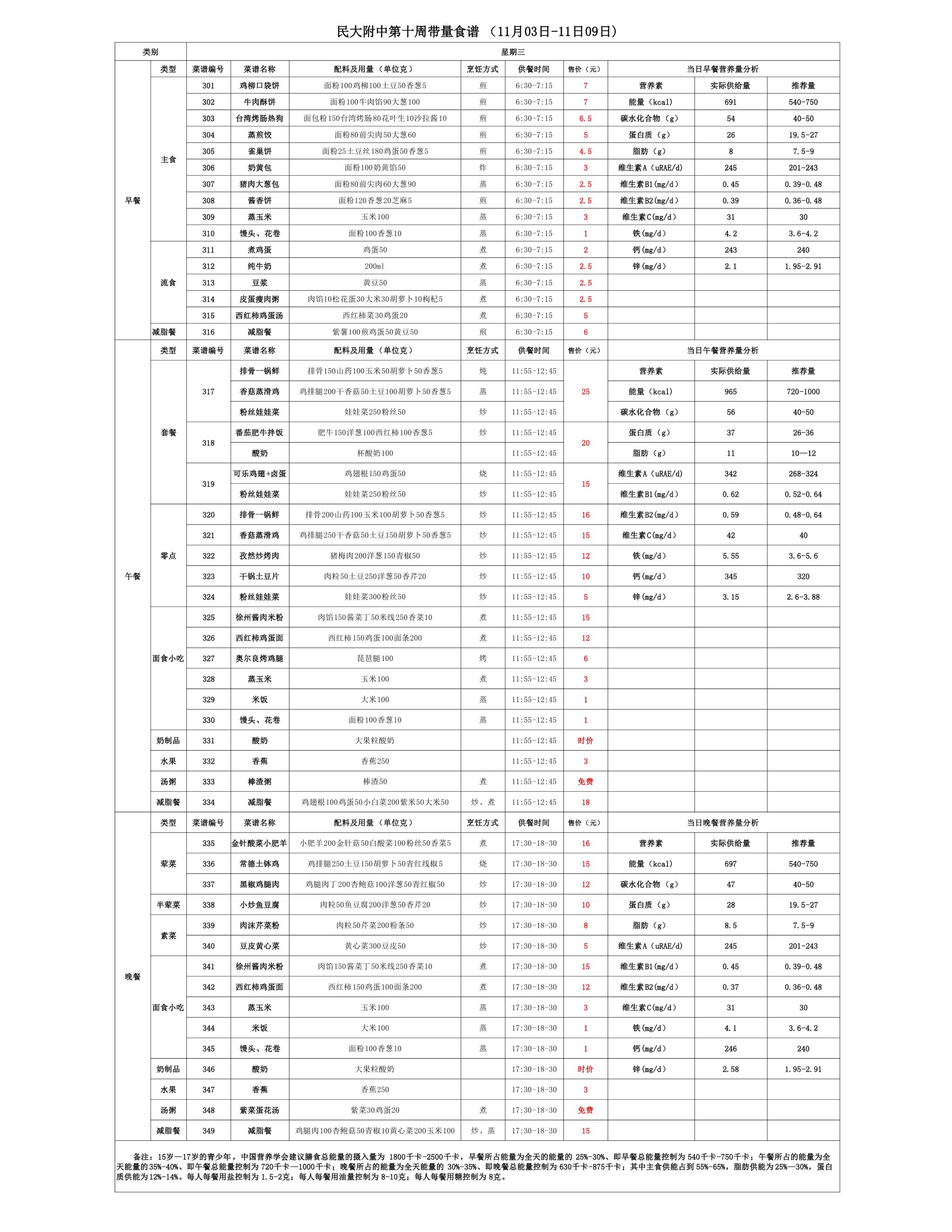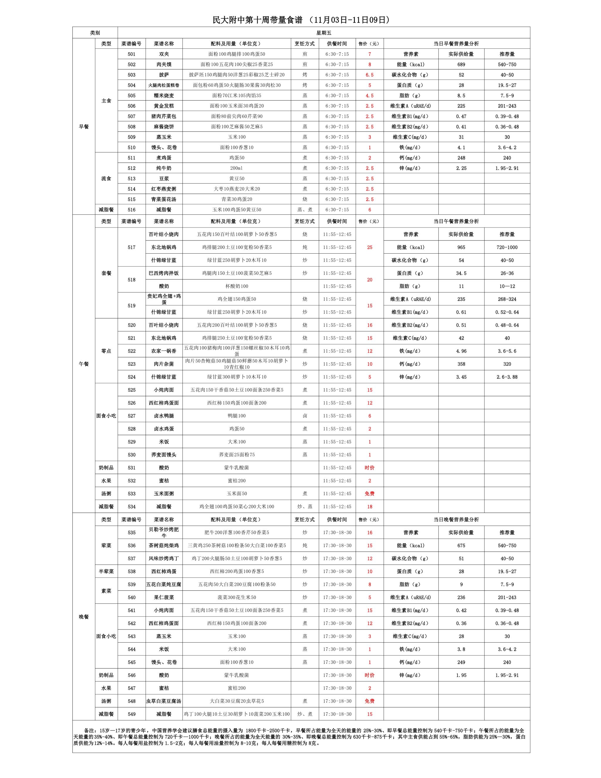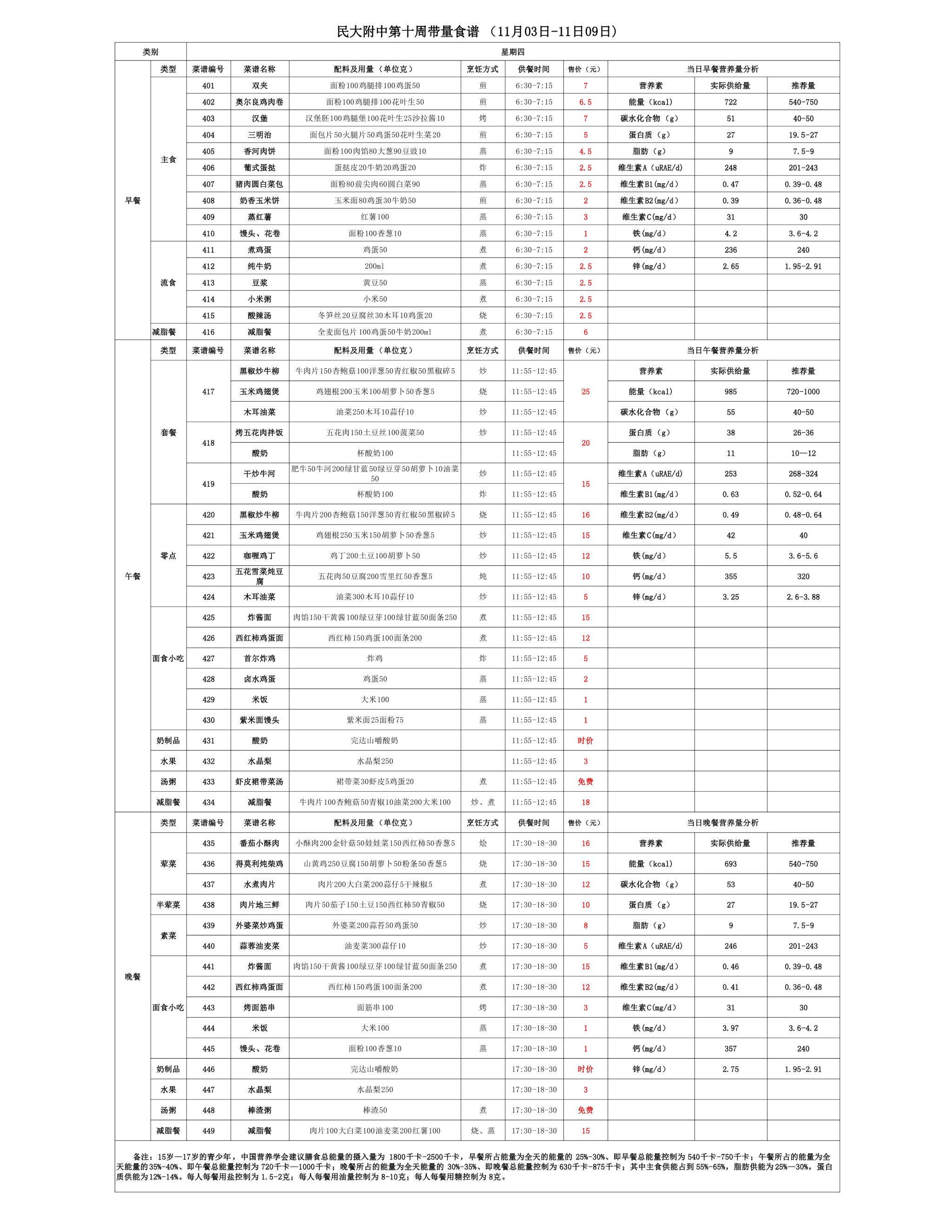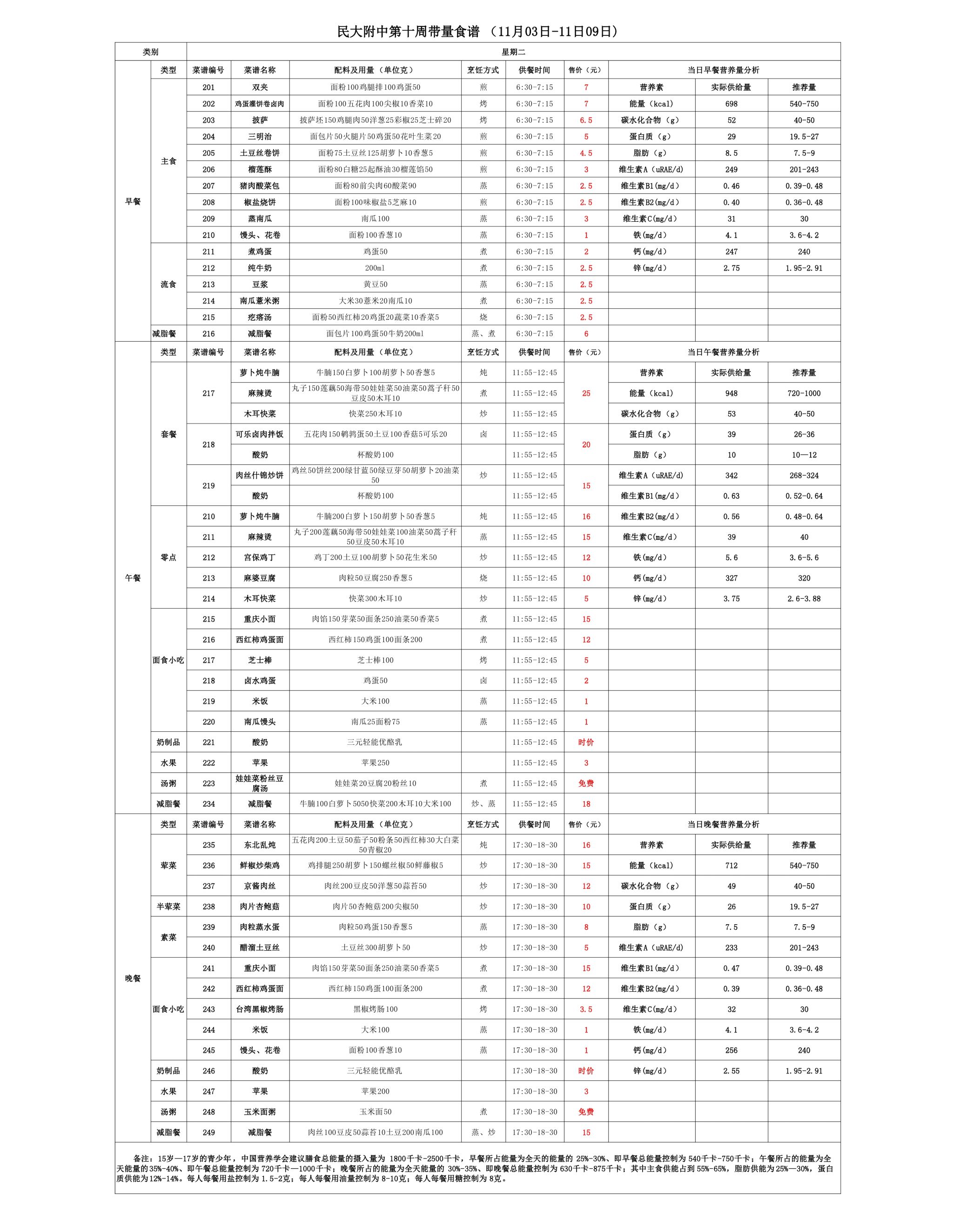 2025年秋季学期朝阳校区食堂菜谱(2025.11.03-11.09)