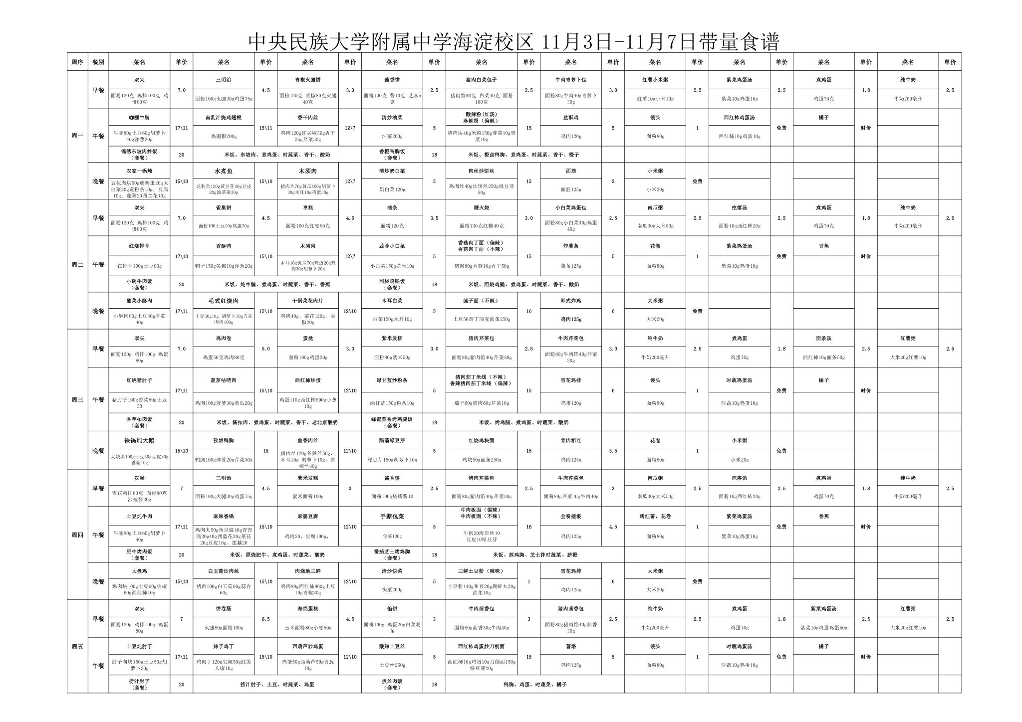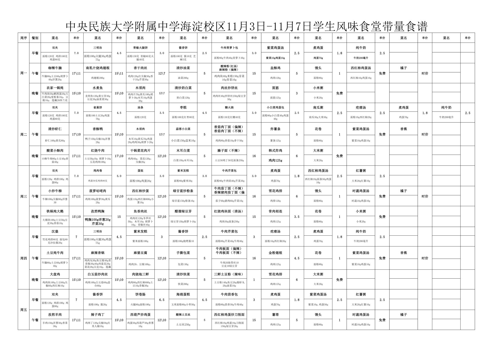 2025年秋季学期民大附中海淀校区学生食堂菜谱公示(2025.11.3-2025.11.7)