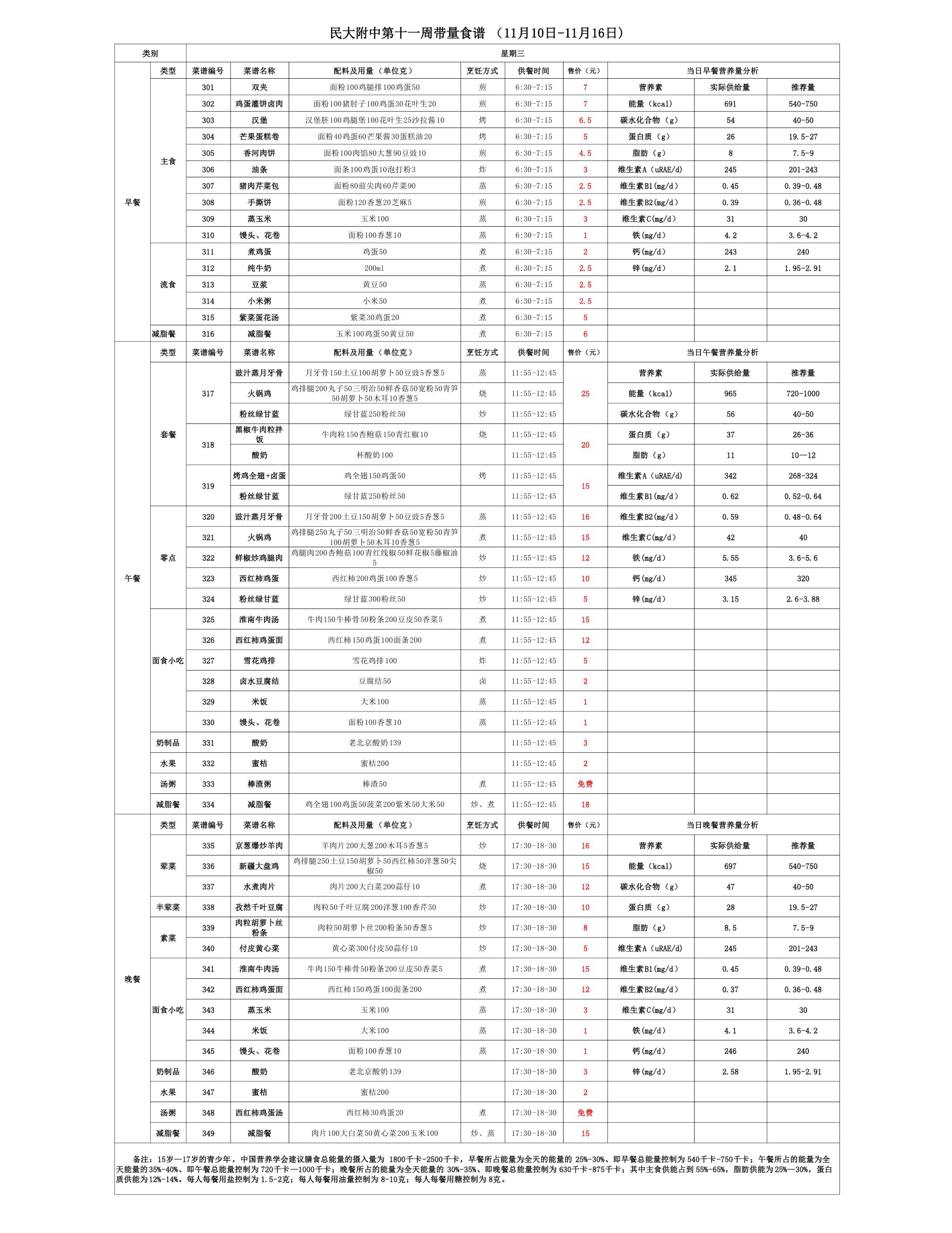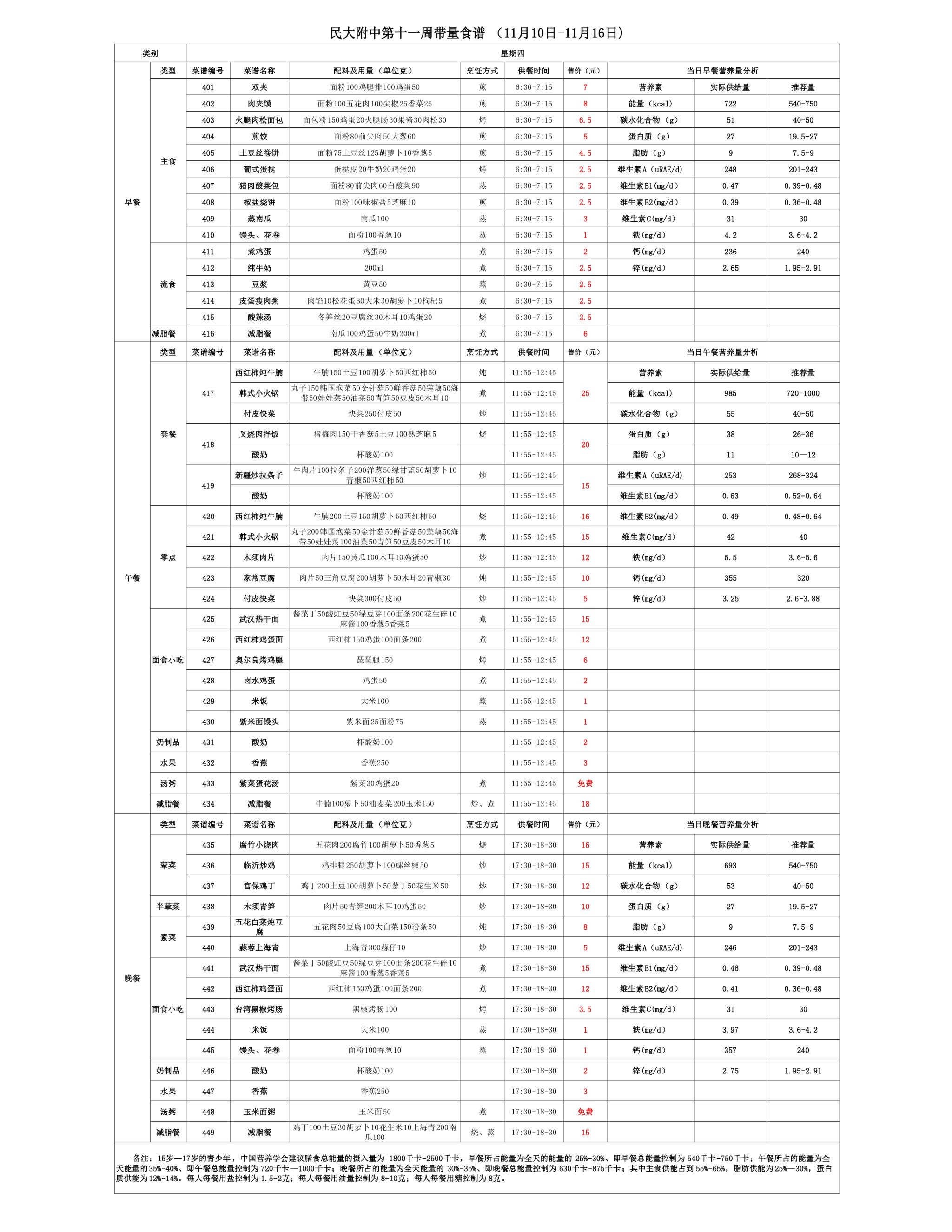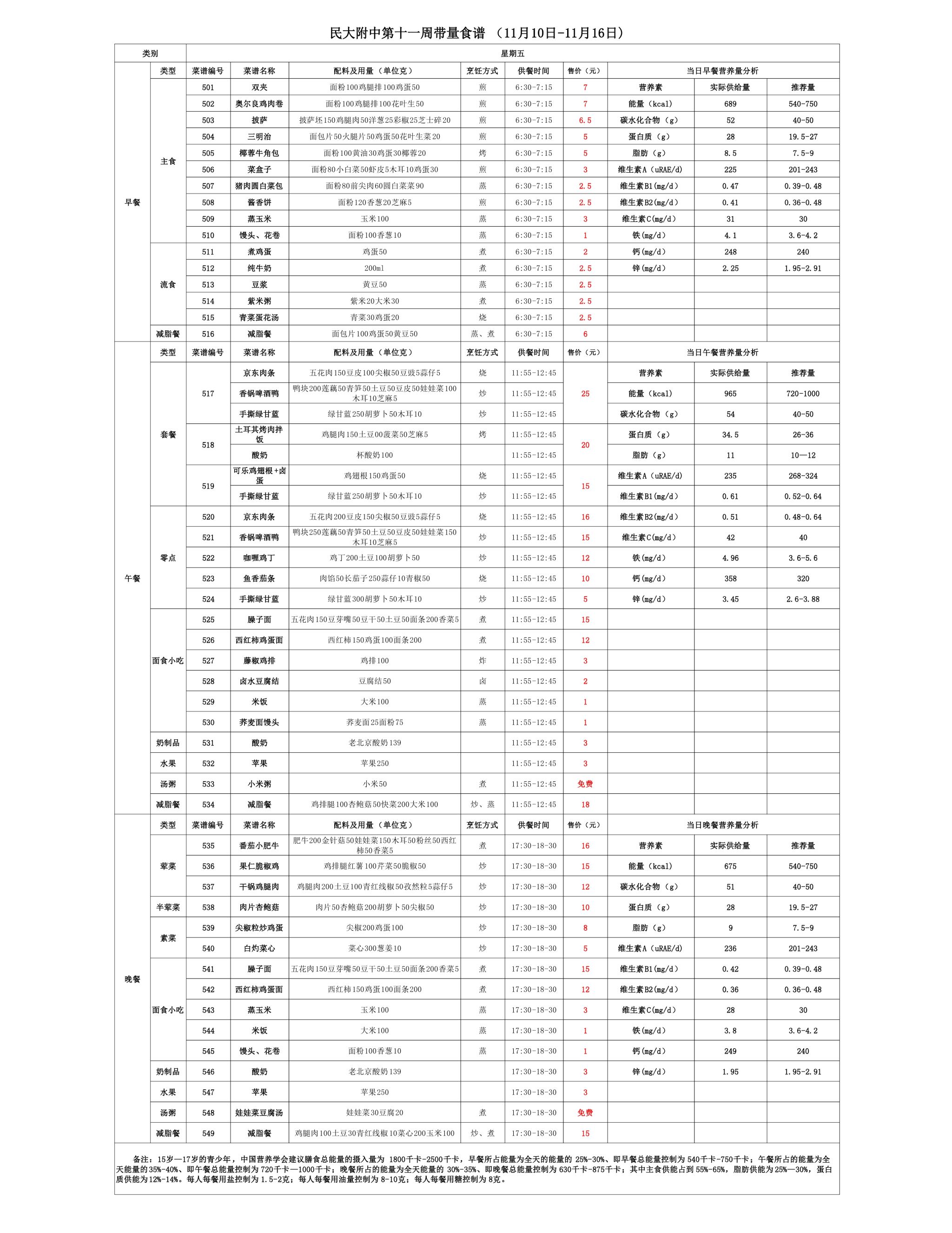 2025年秋季学期朝阳校区食堂菜谱(2025.11.10-11.16)