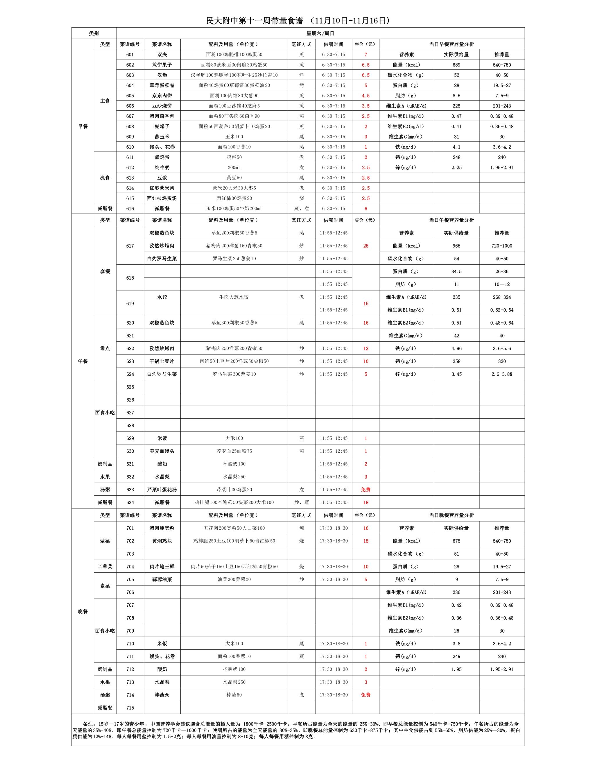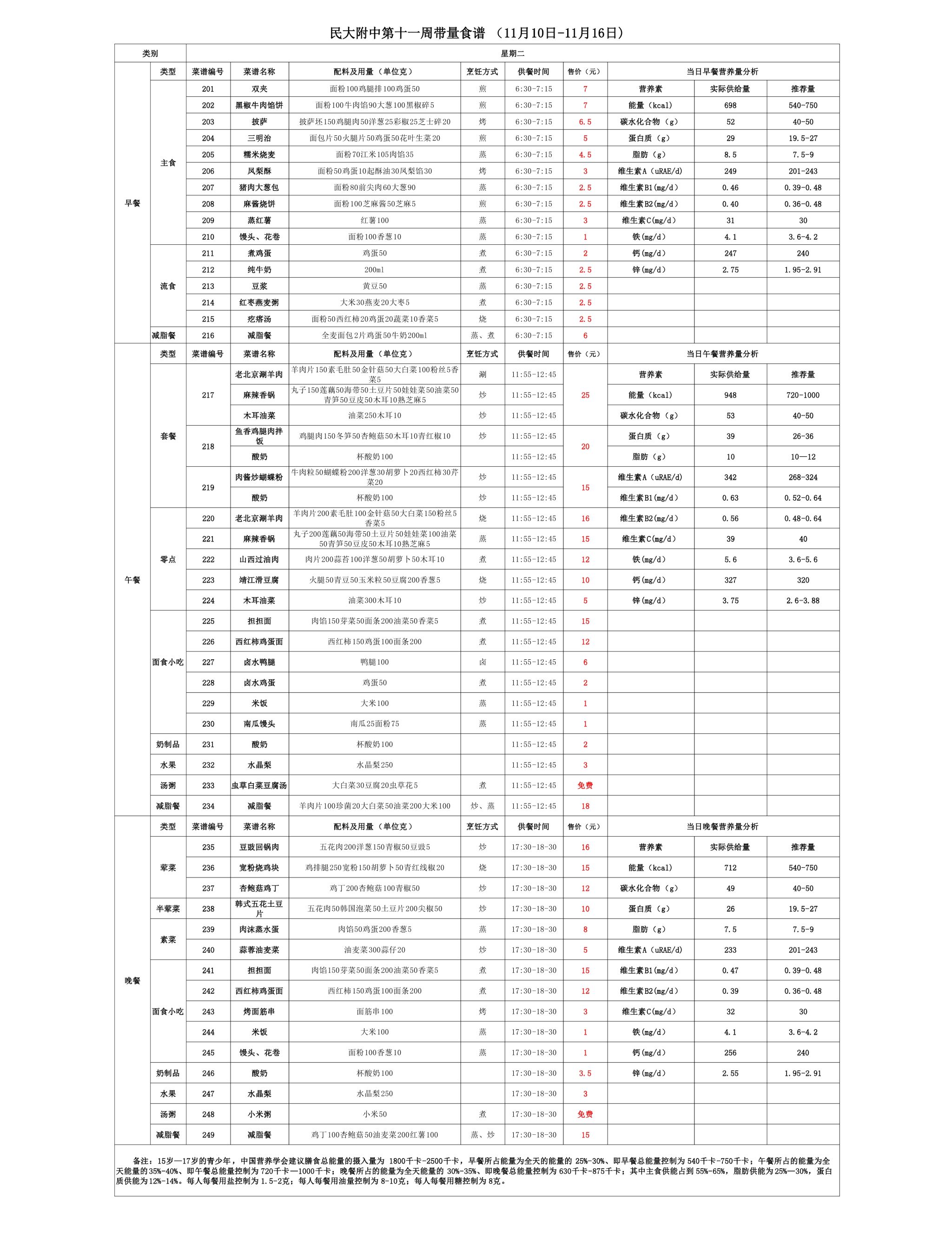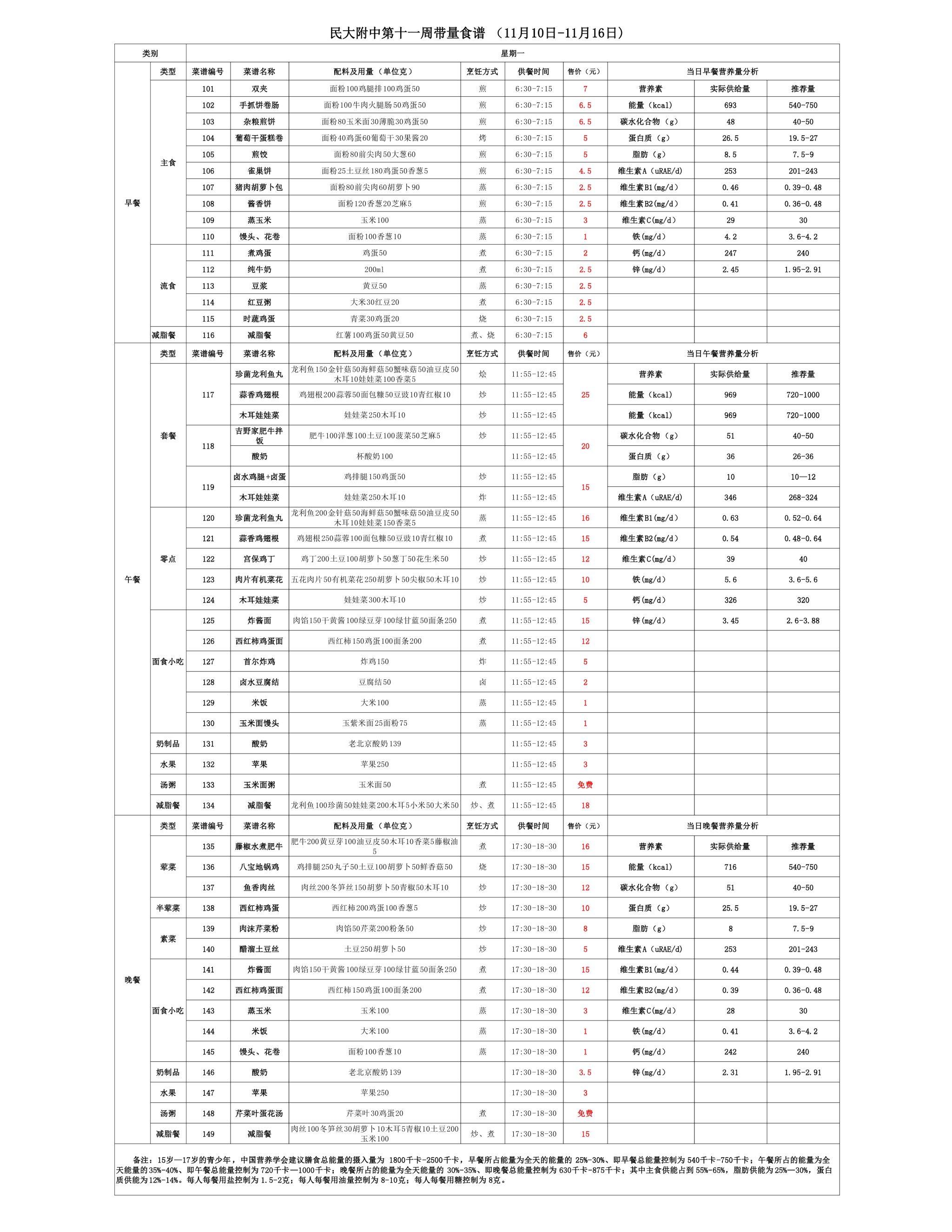 2025年秋季学期朝阳校区食堂菜谱(2025.11.10-11.16)