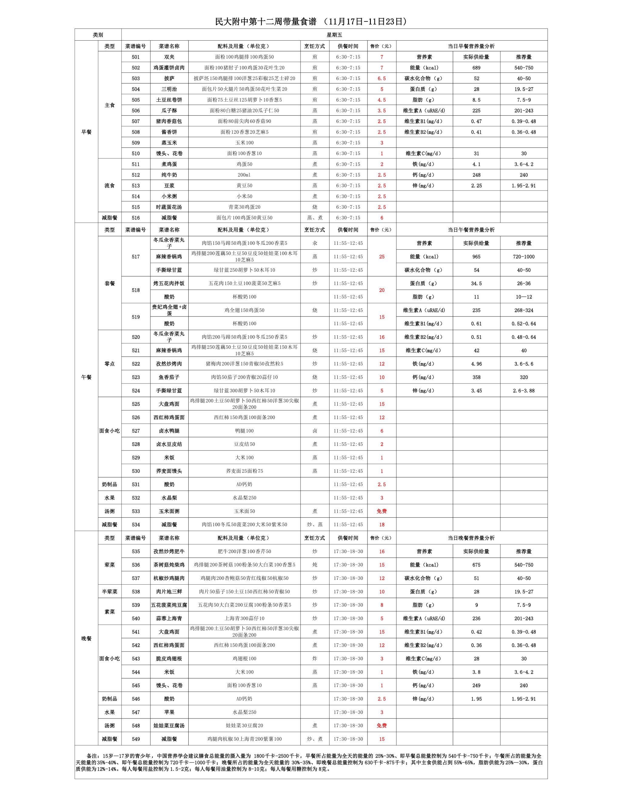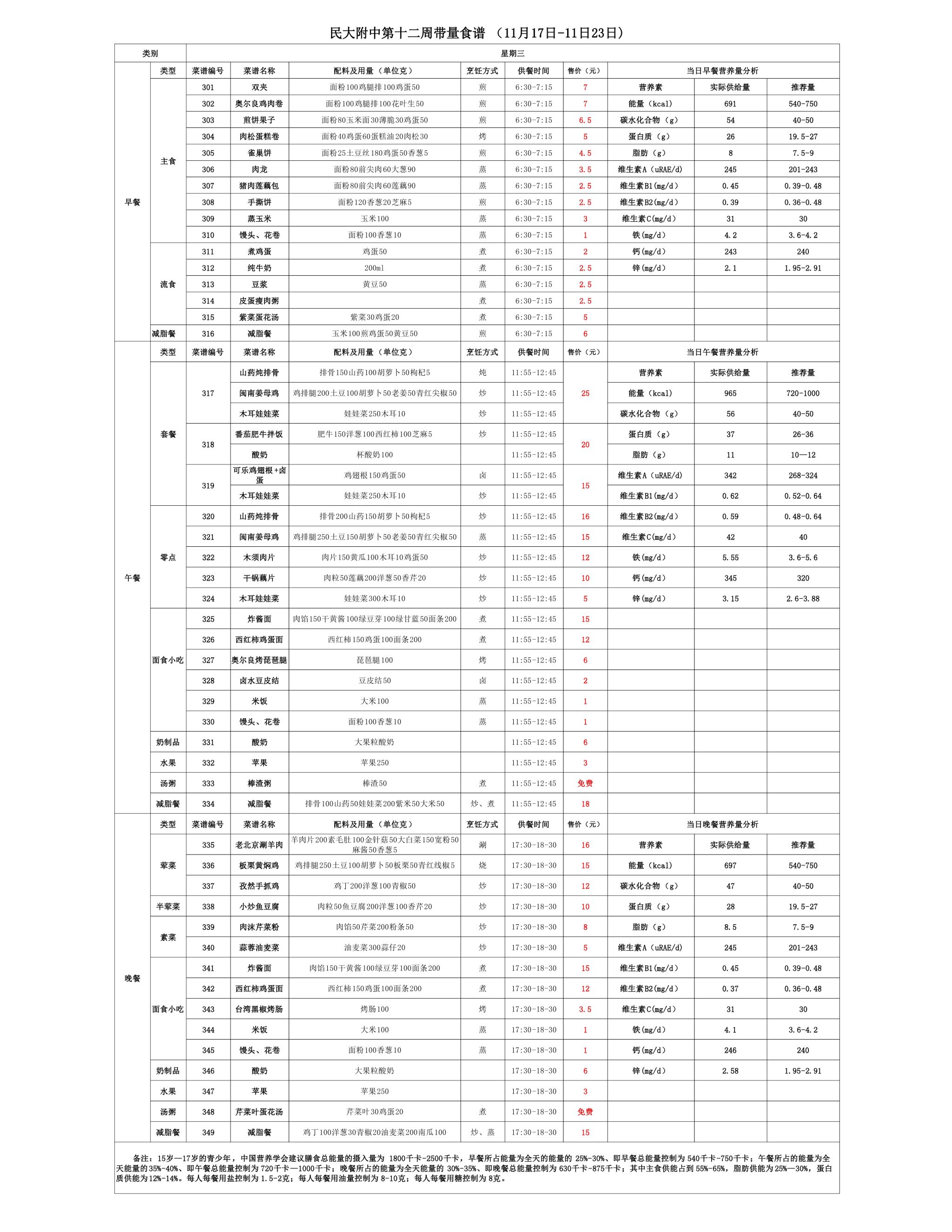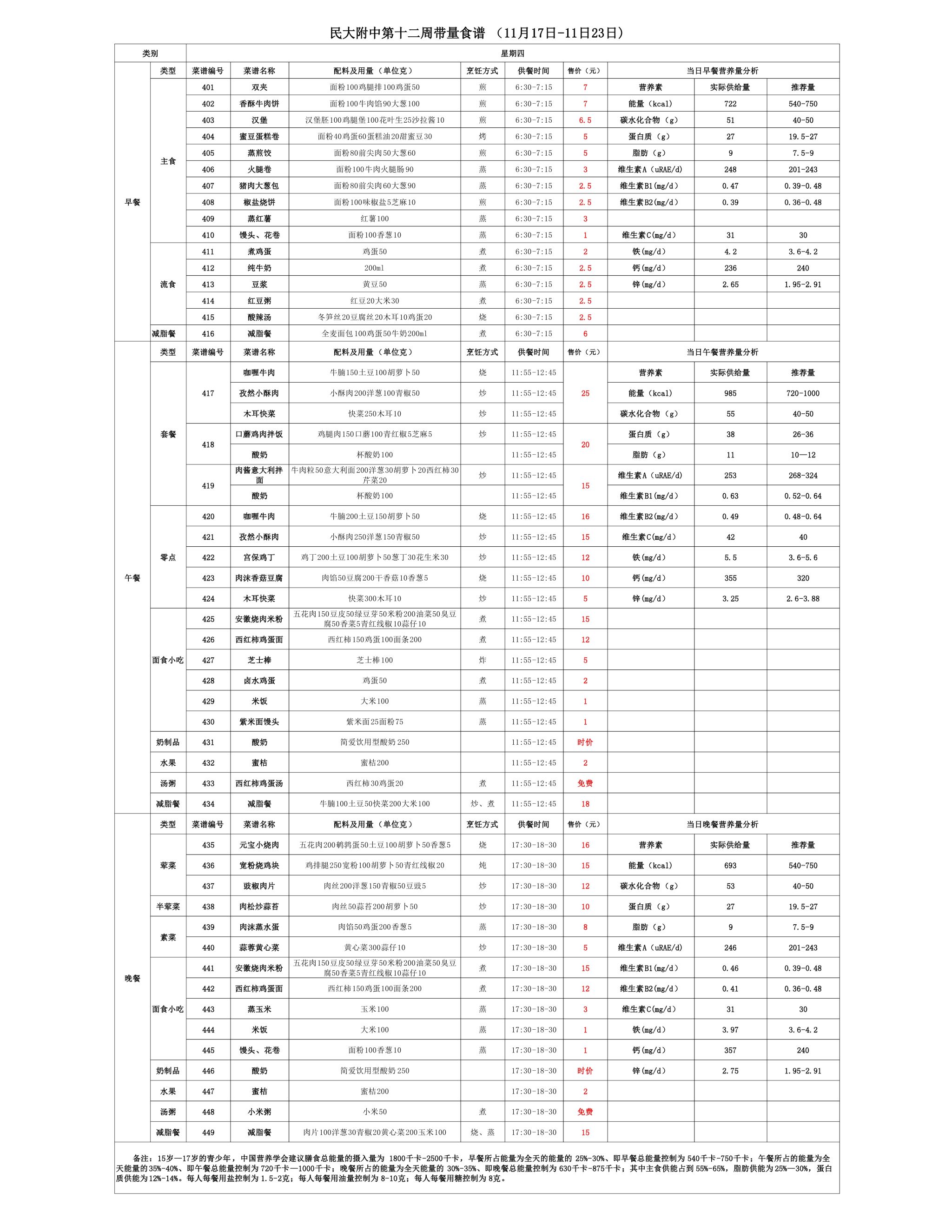 2025年秋季学期朝阳校区食堂菜谱(2025.11.17-11.23)