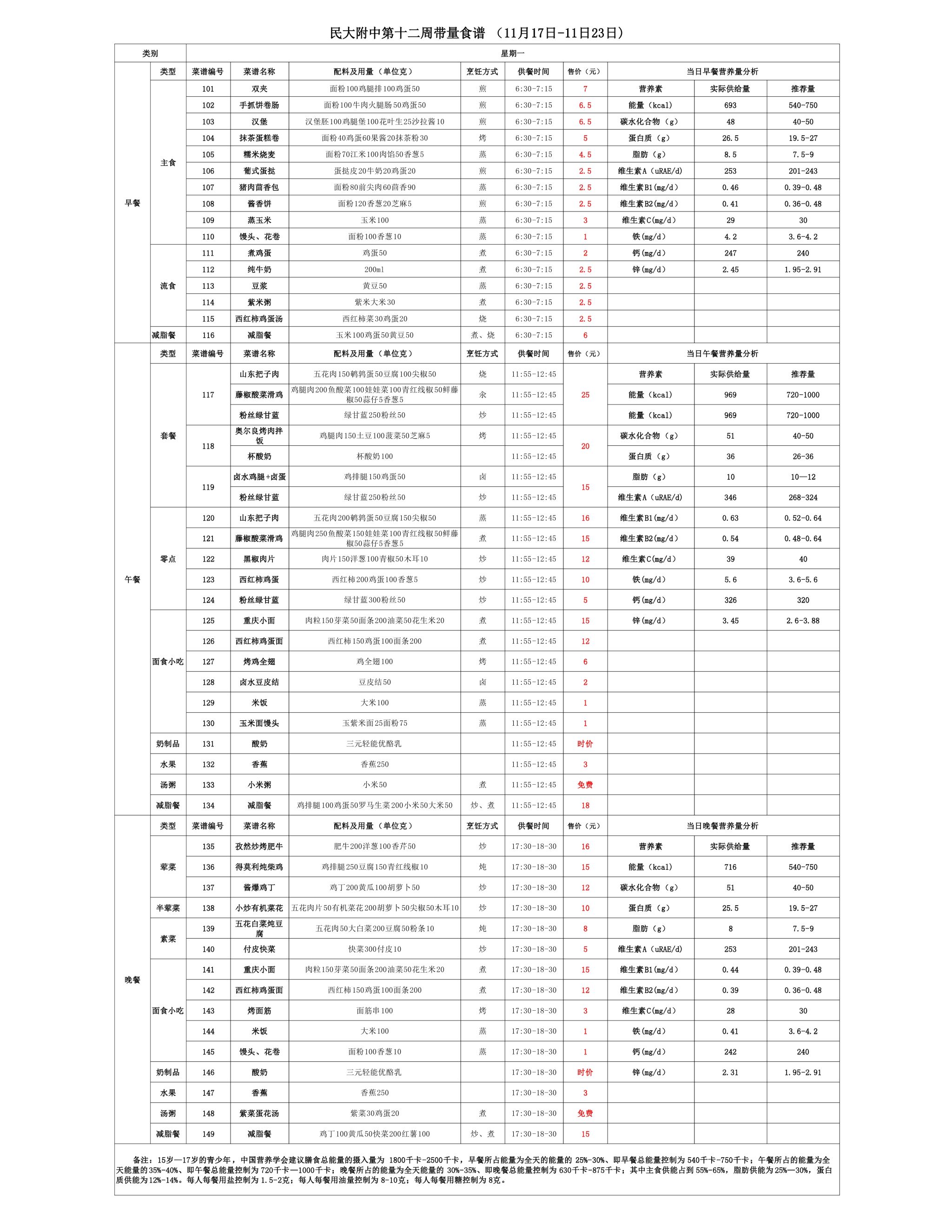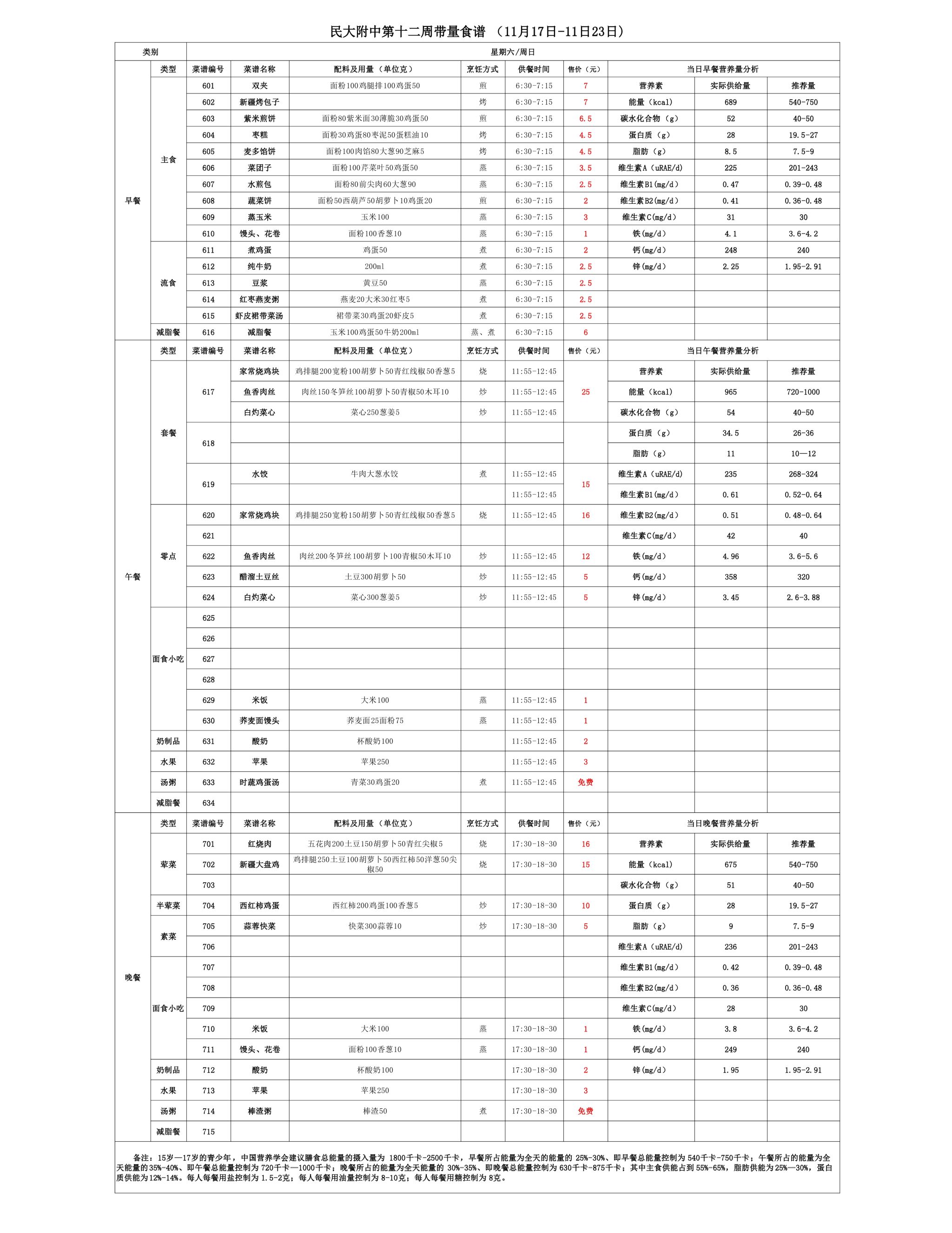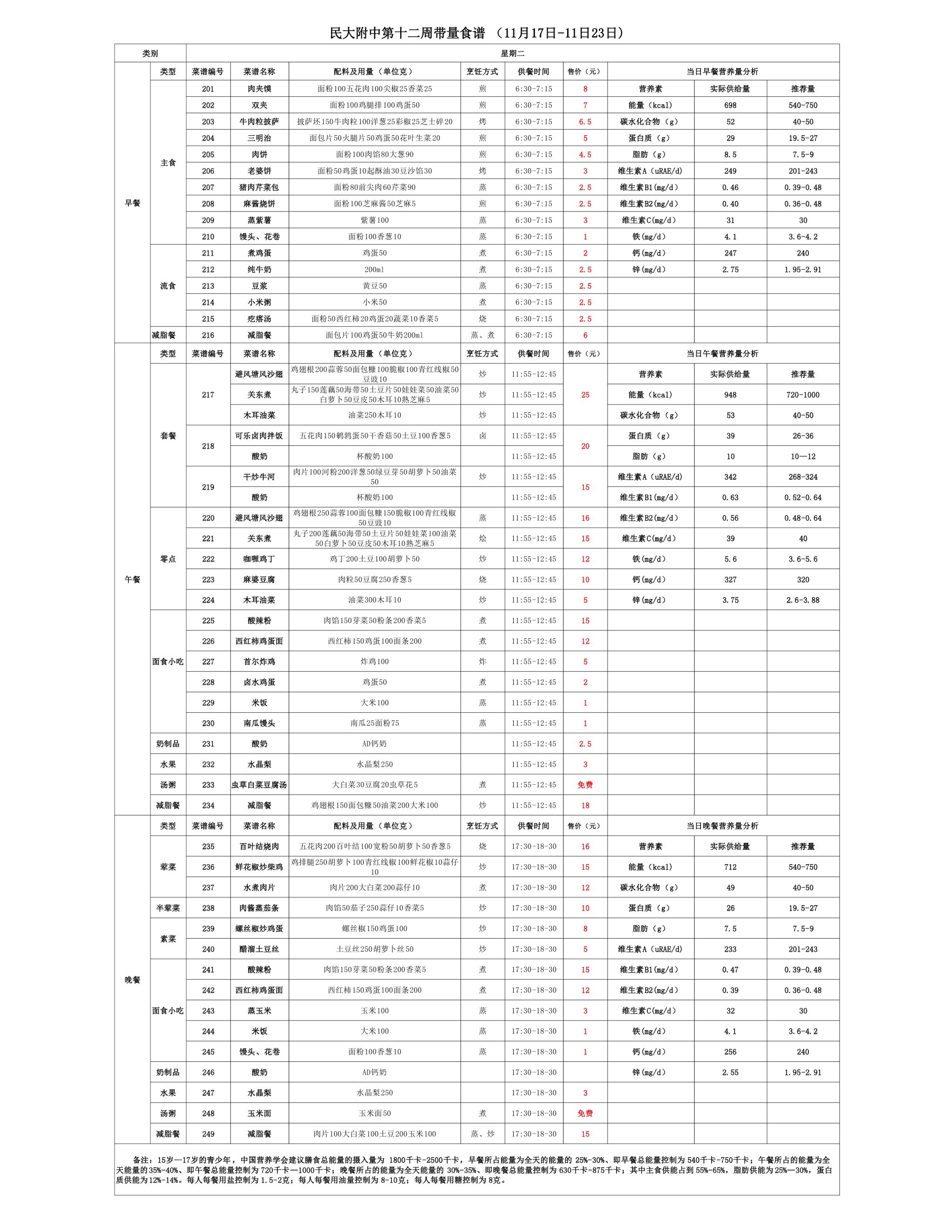2025年秋季学期朝阳校区食堂菜谱(2025.11.17-11.23)