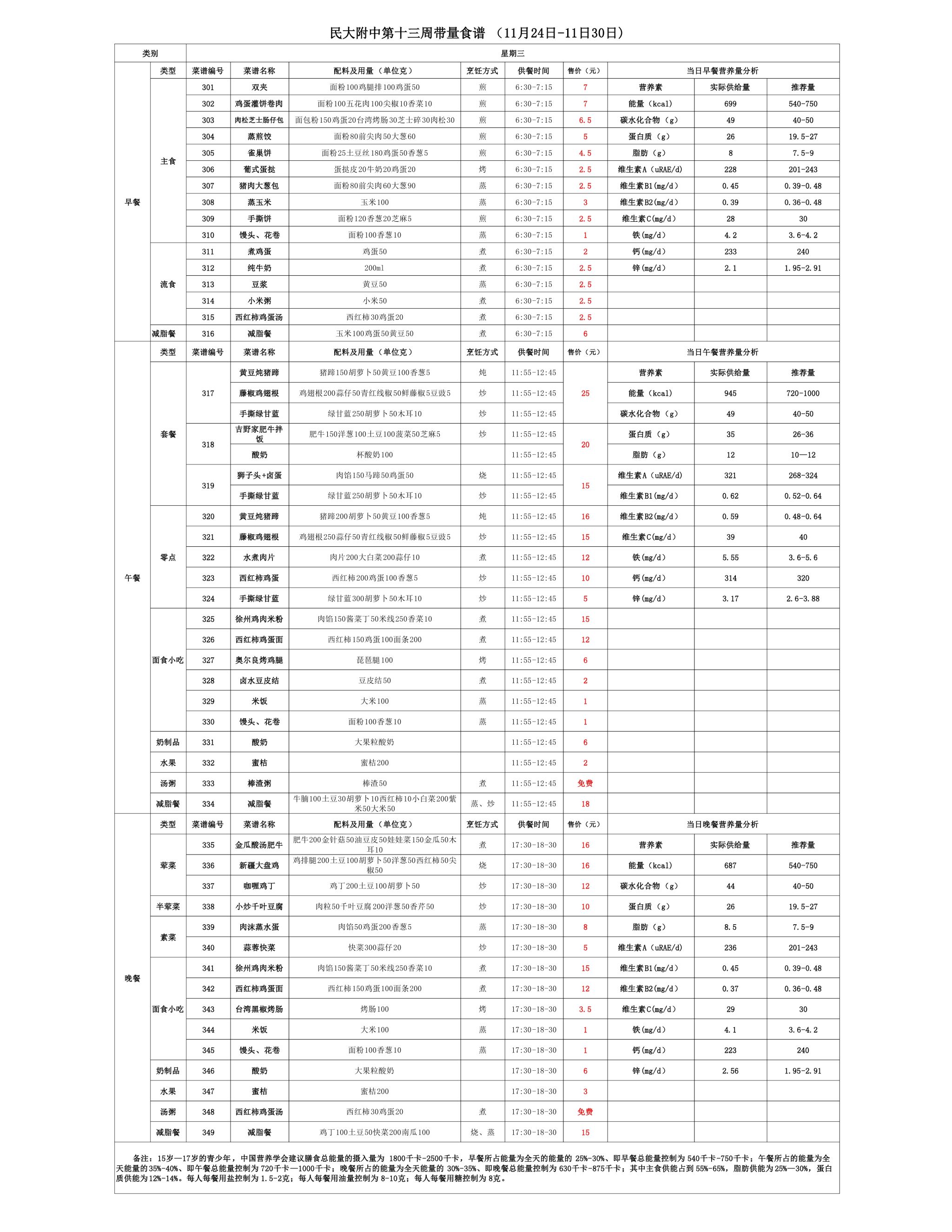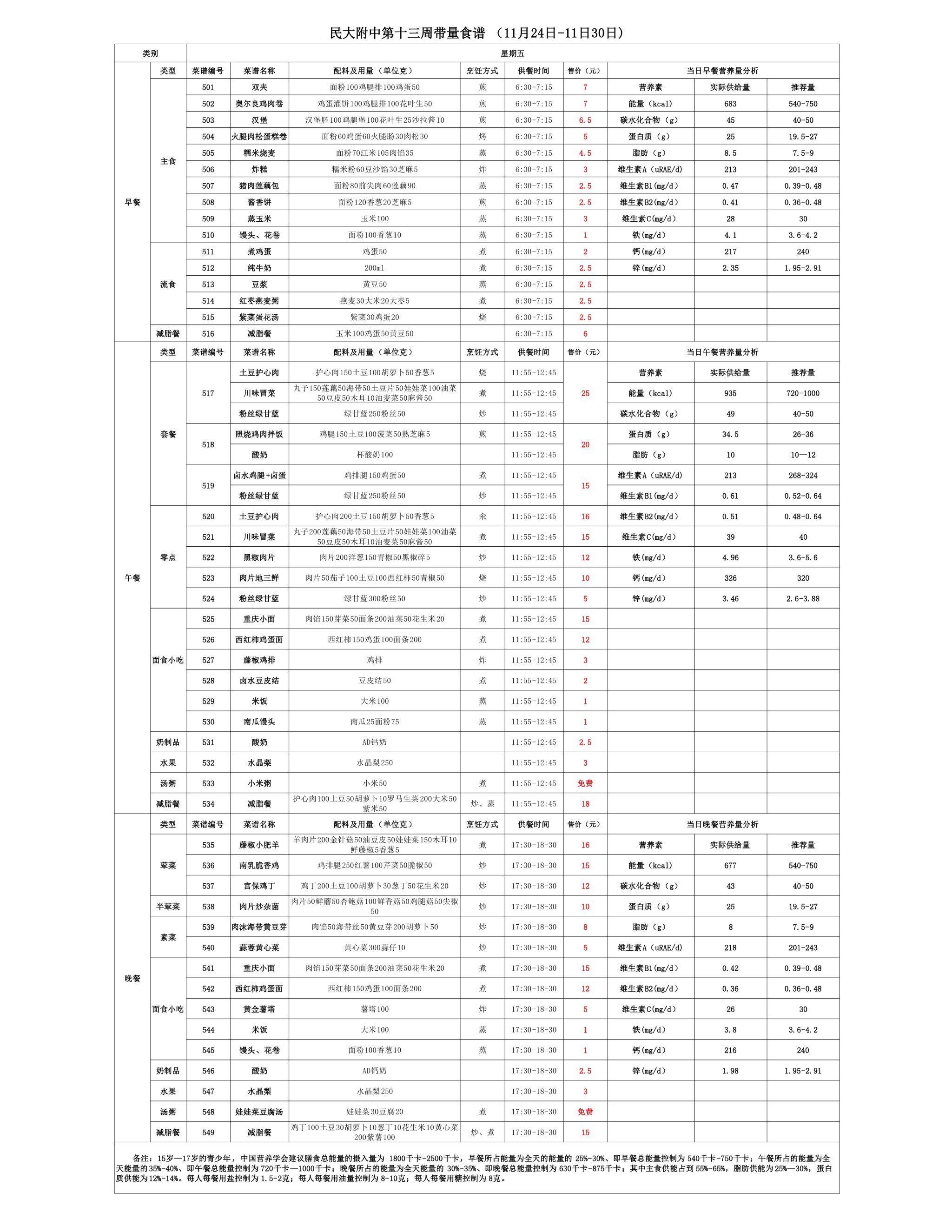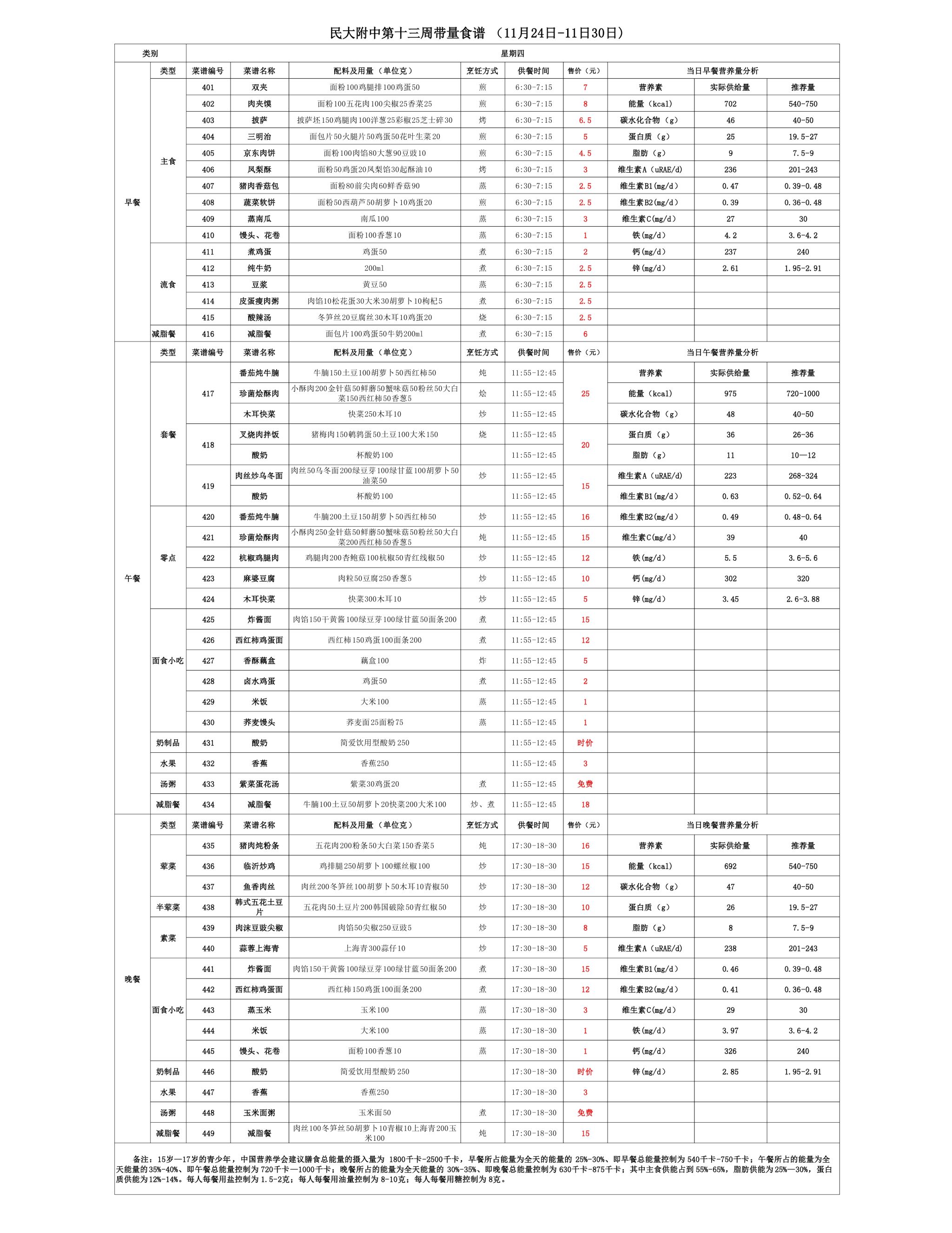 2025年秋季学期朝阳校区食堂菜谱(2025.11.24-11.30)