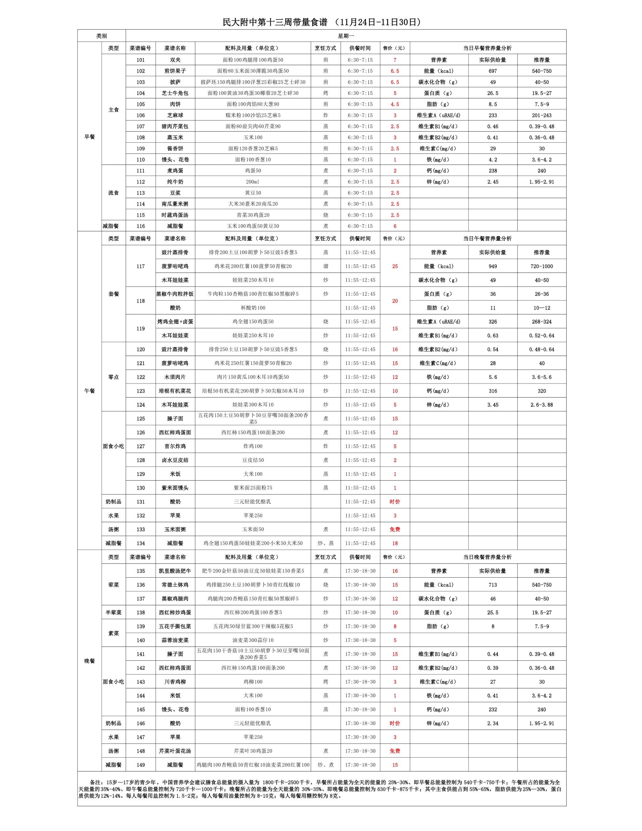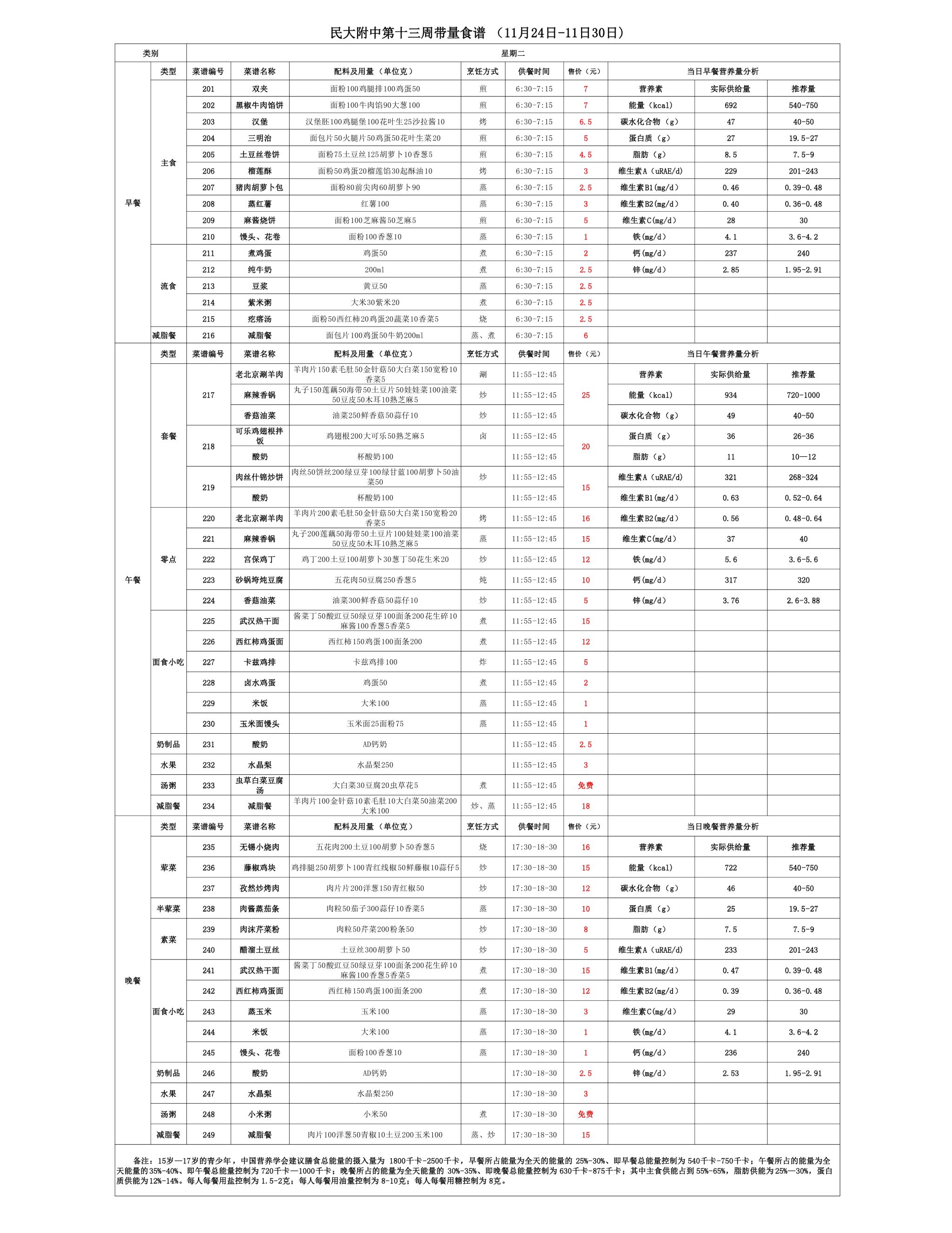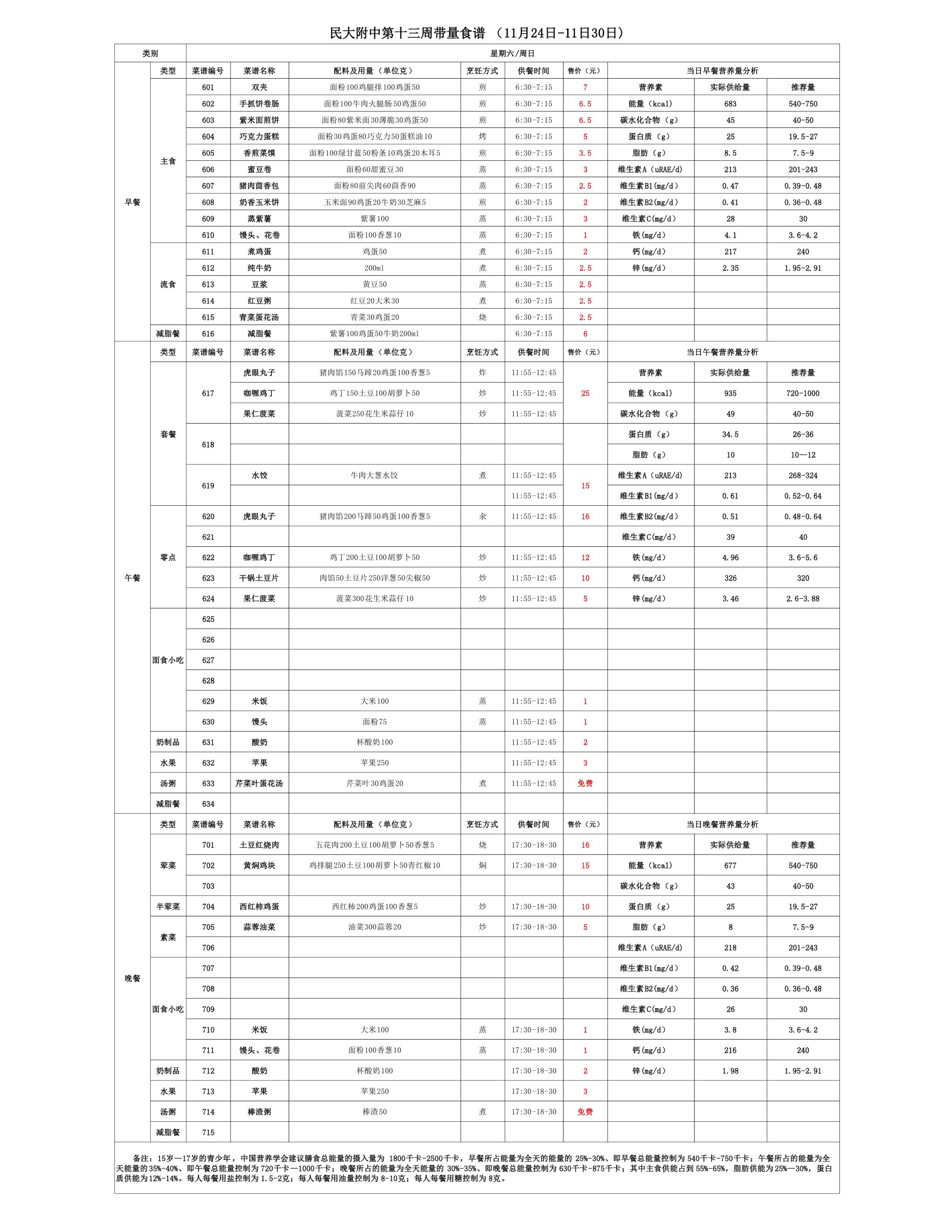 2025年秋季学期朝阳校区食堂菜谱(2025.11.24-11.30)