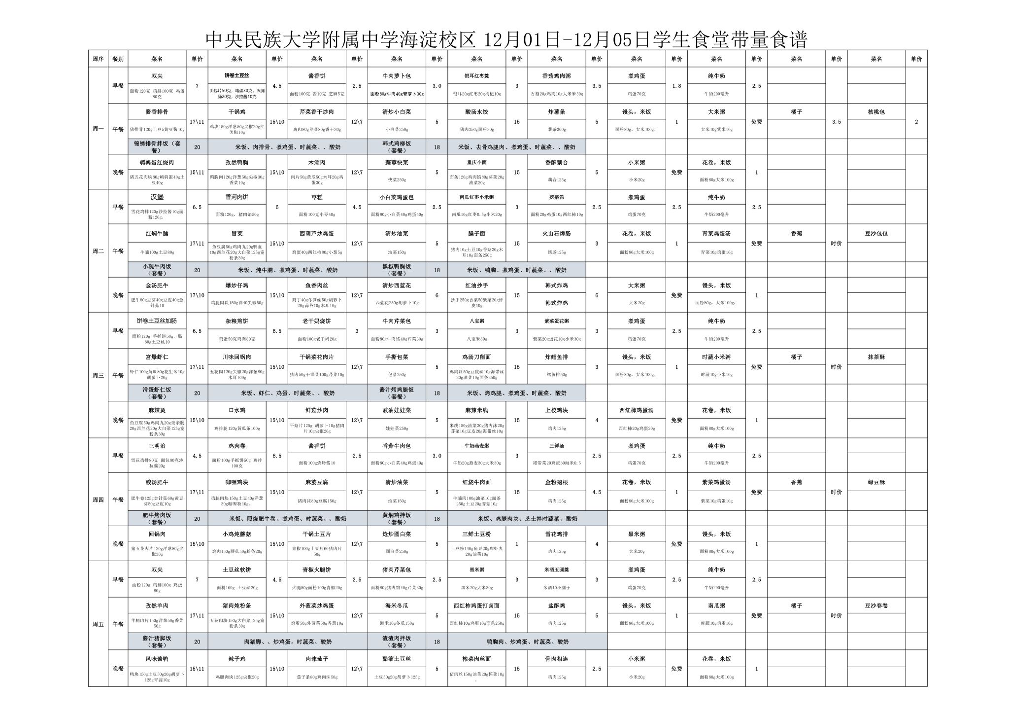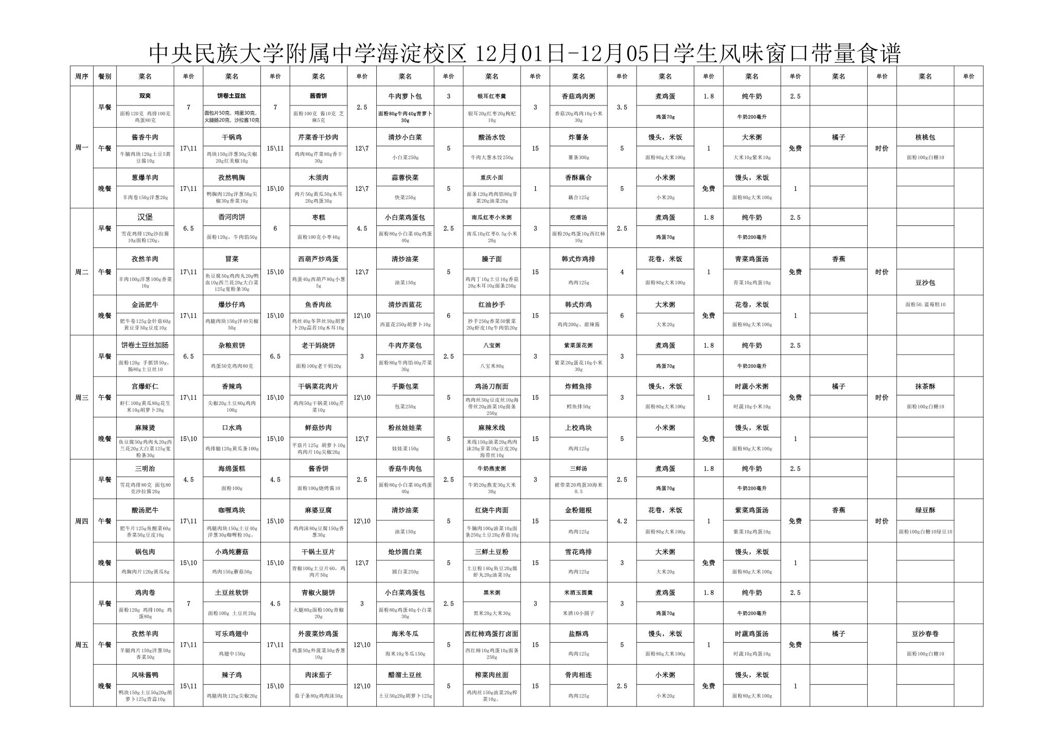 2025年秋季学期民大附中海淀校区学生食堂菜谱公示(2025.12.1-2025.12.5)