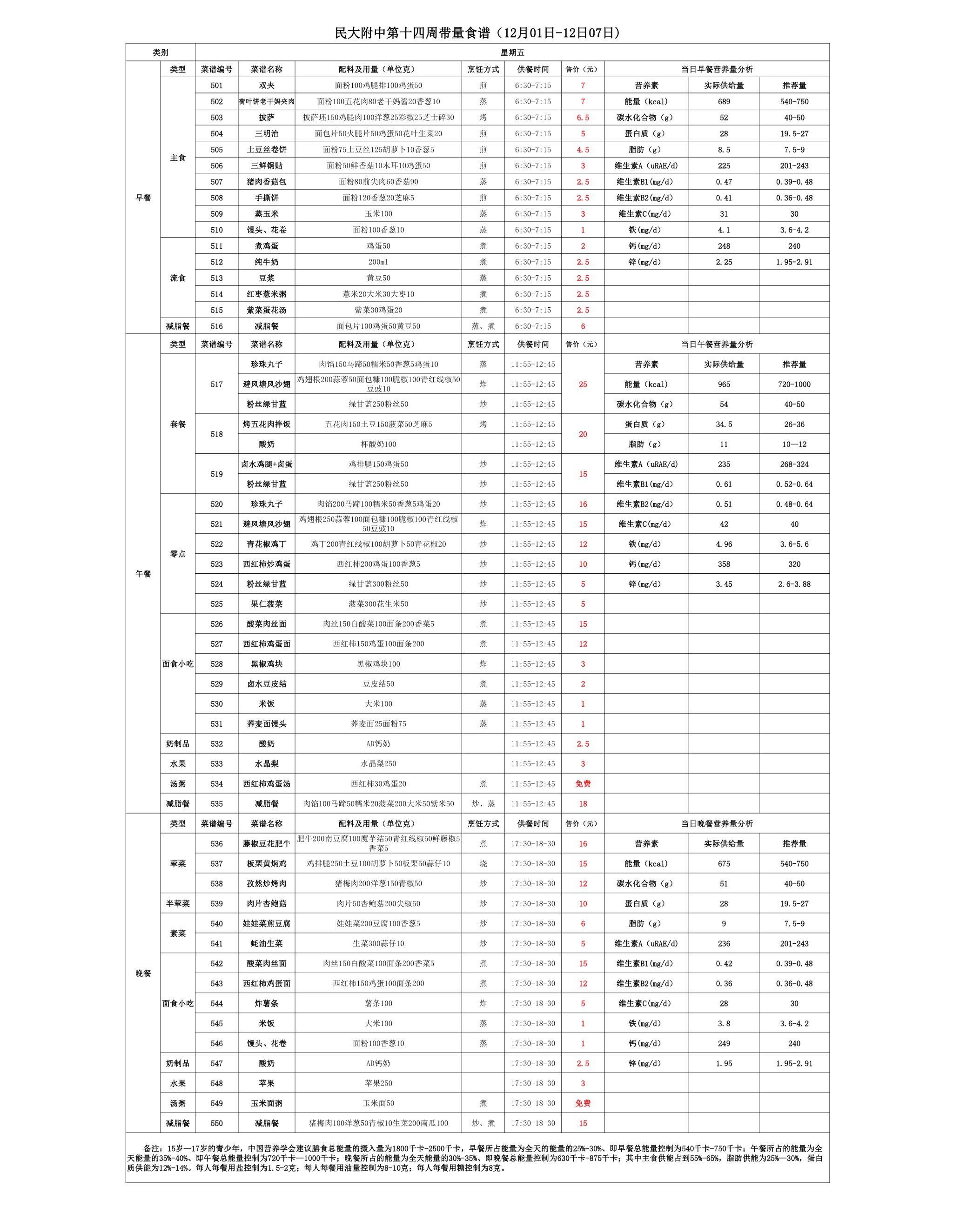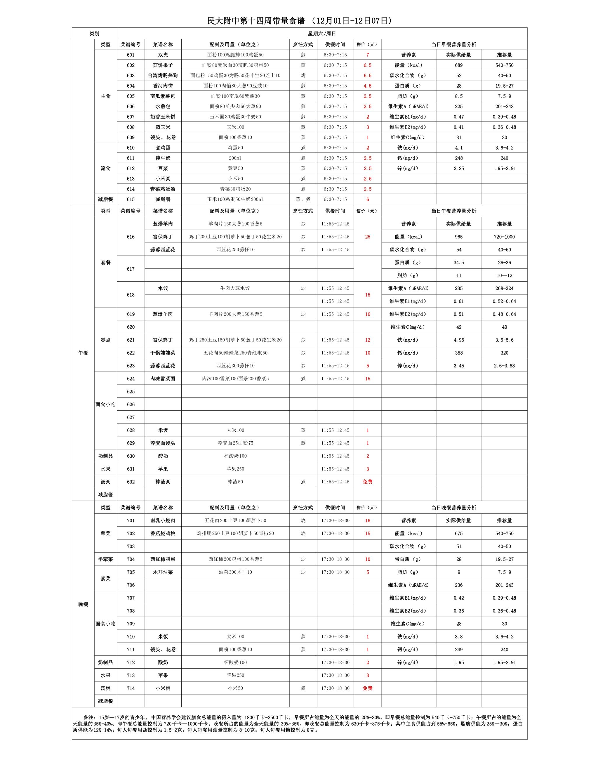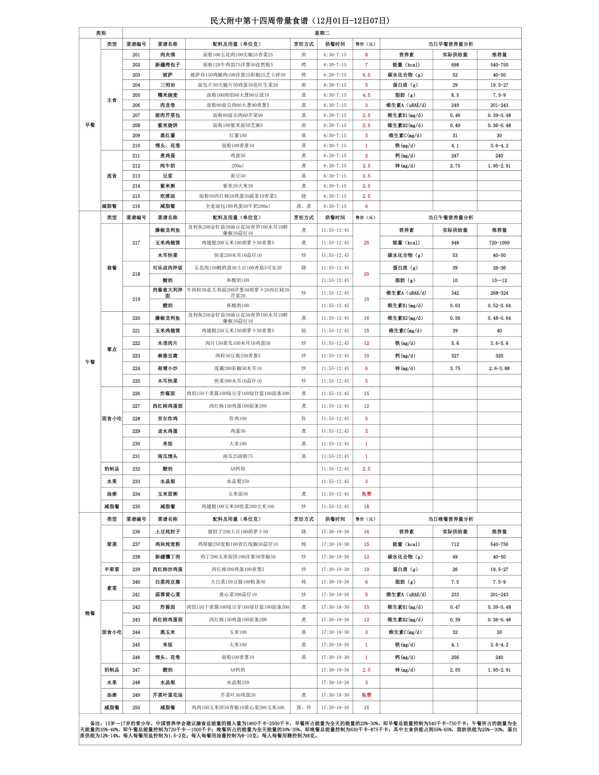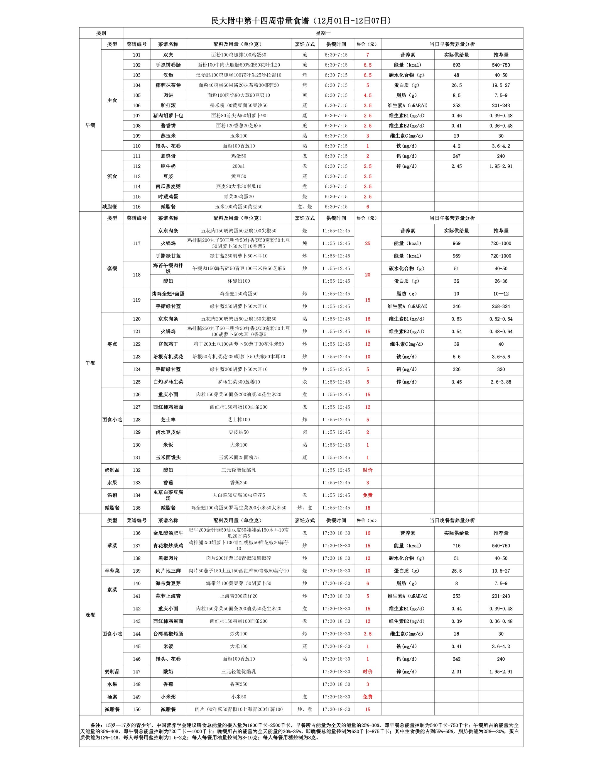 2025年秋季学期朝阳校区食堂菜谱(2025.12.01-12.07)
