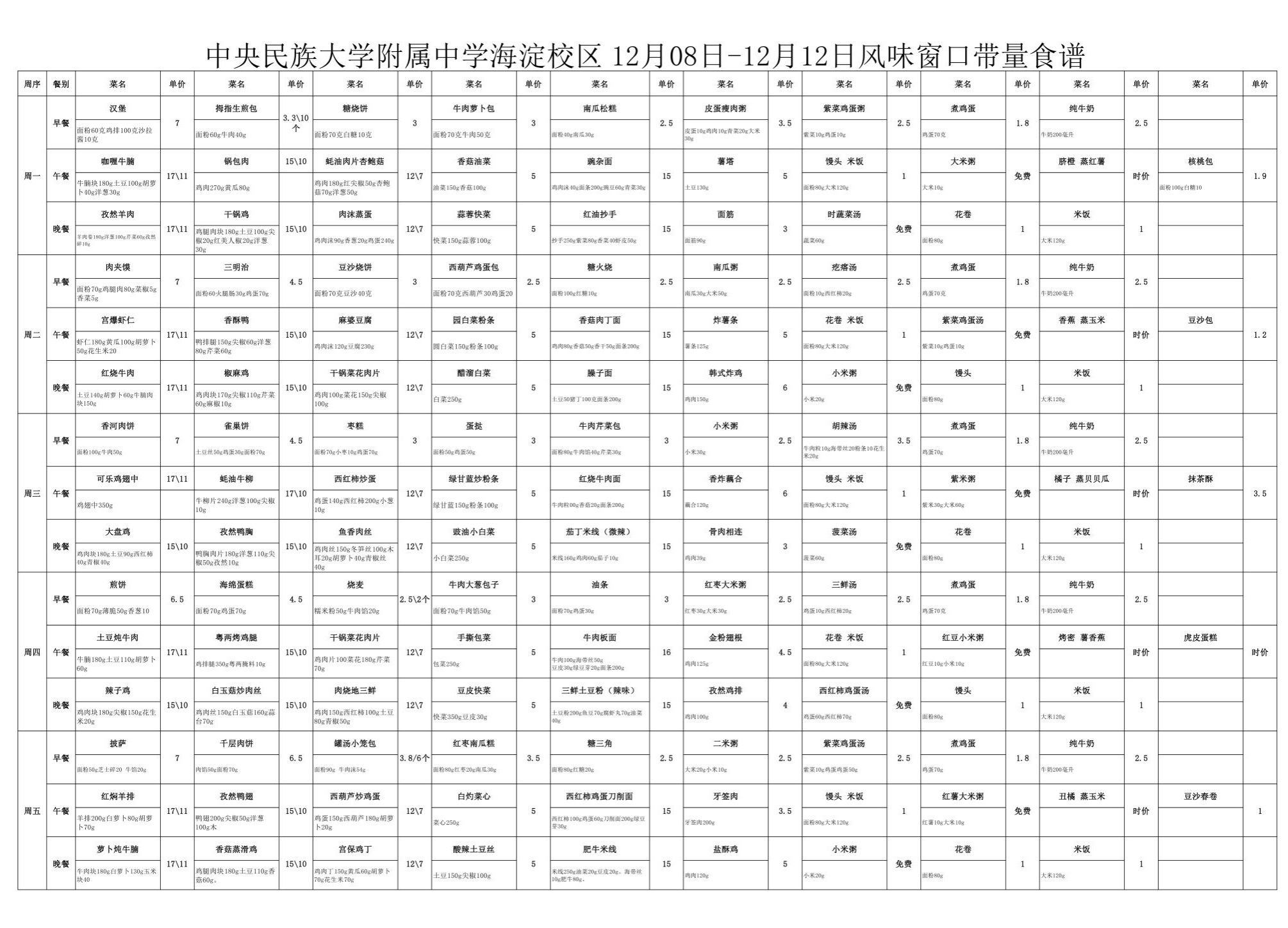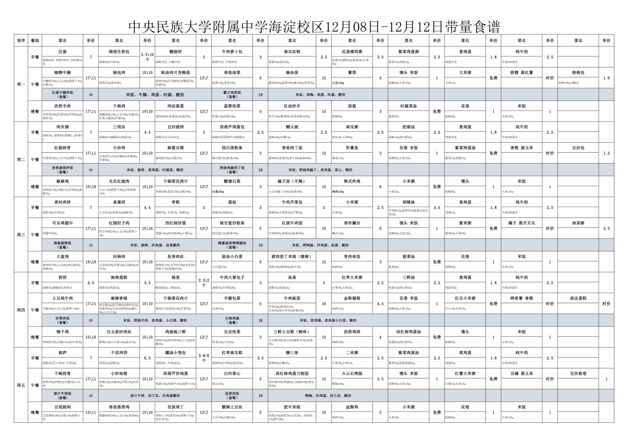2025年秋季学期民大附中海淀校区学生食堂菜谱公示(2025.12.08-2025.12.12)