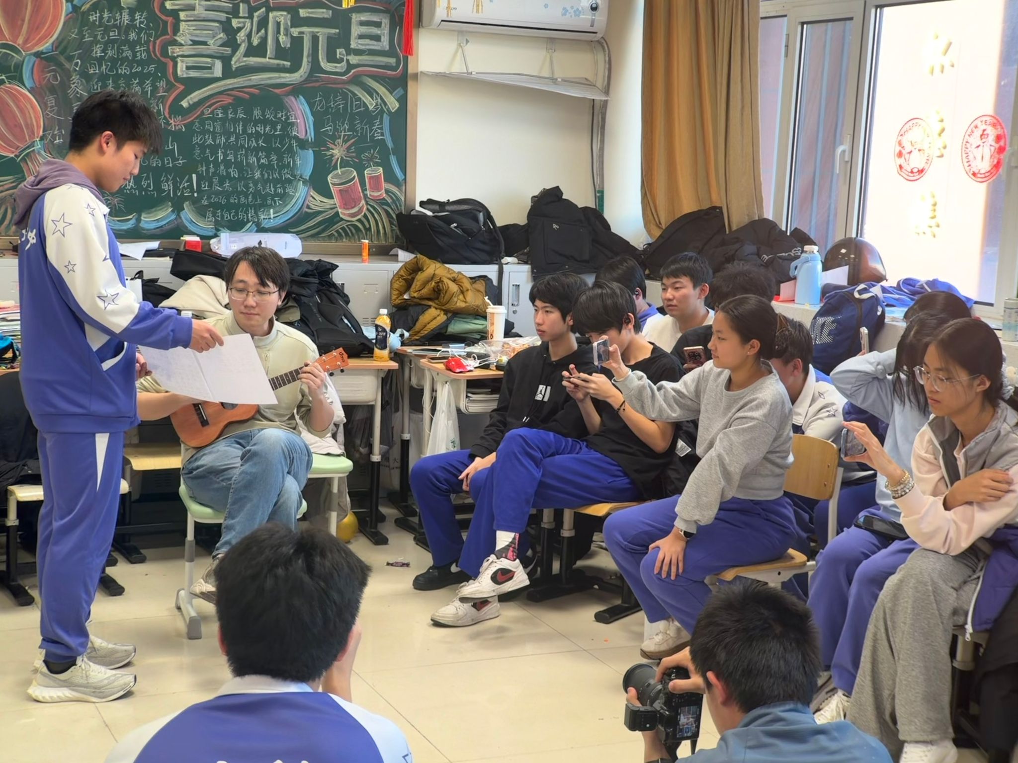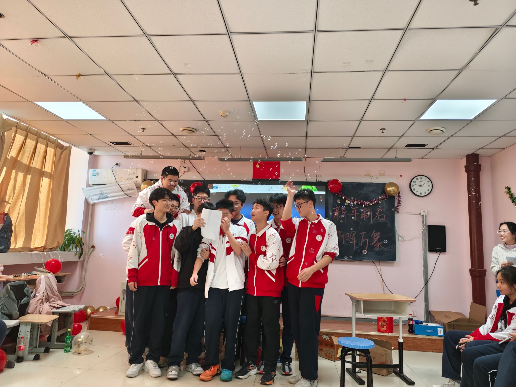 岁聿云暮,新元肇启。当2026年丙午马年的钟声即将敲响,为传承中华优秀传统文化,凝聚师生奋进力量,展现民附学子昂扬向上的青春风采,12月31日,民大附中朝阳校区展开了一场主题鲜明、暖意融融的元旦班级联欢活动。全体师生齐聚一堂,在欢声笑语中辞旧迎新,在同心筑梦中共赴新程,让青春的朝气与节日的祥和充盈着校园的每一个角落。