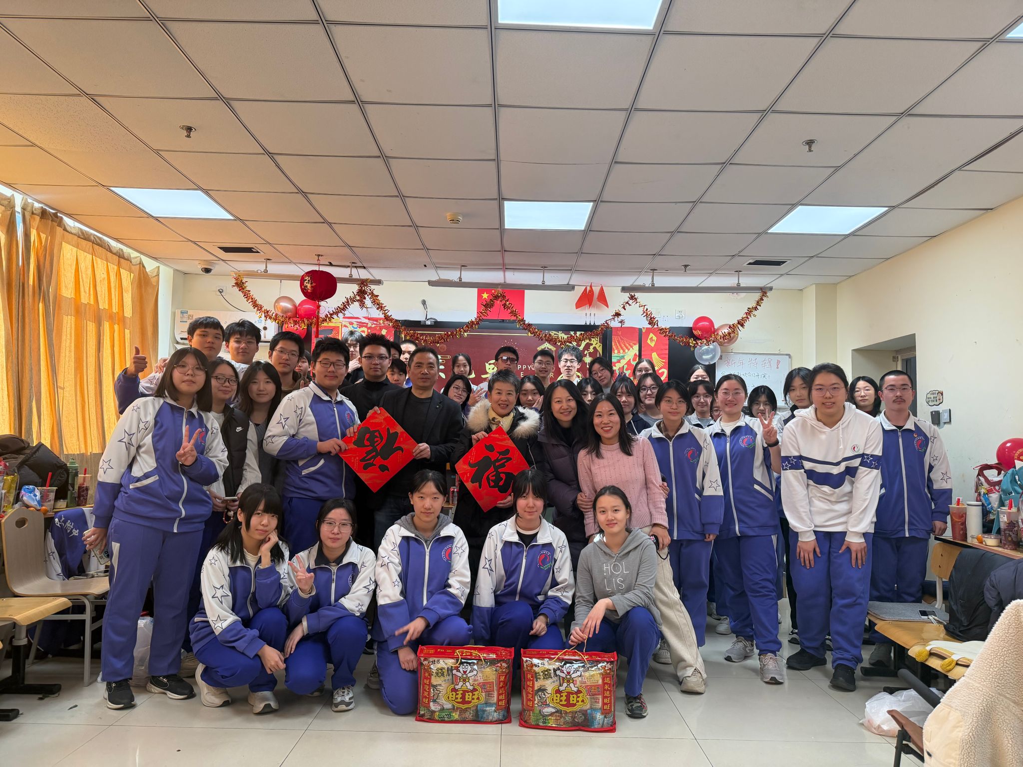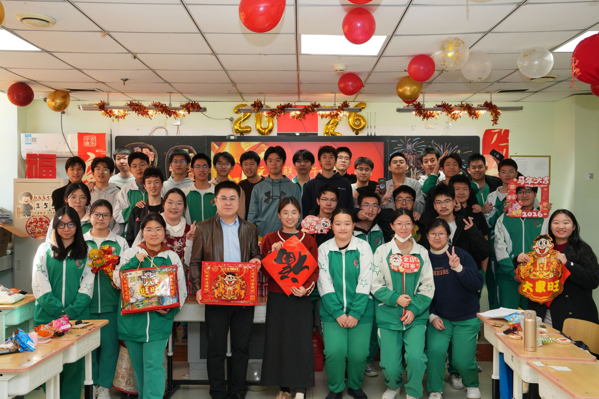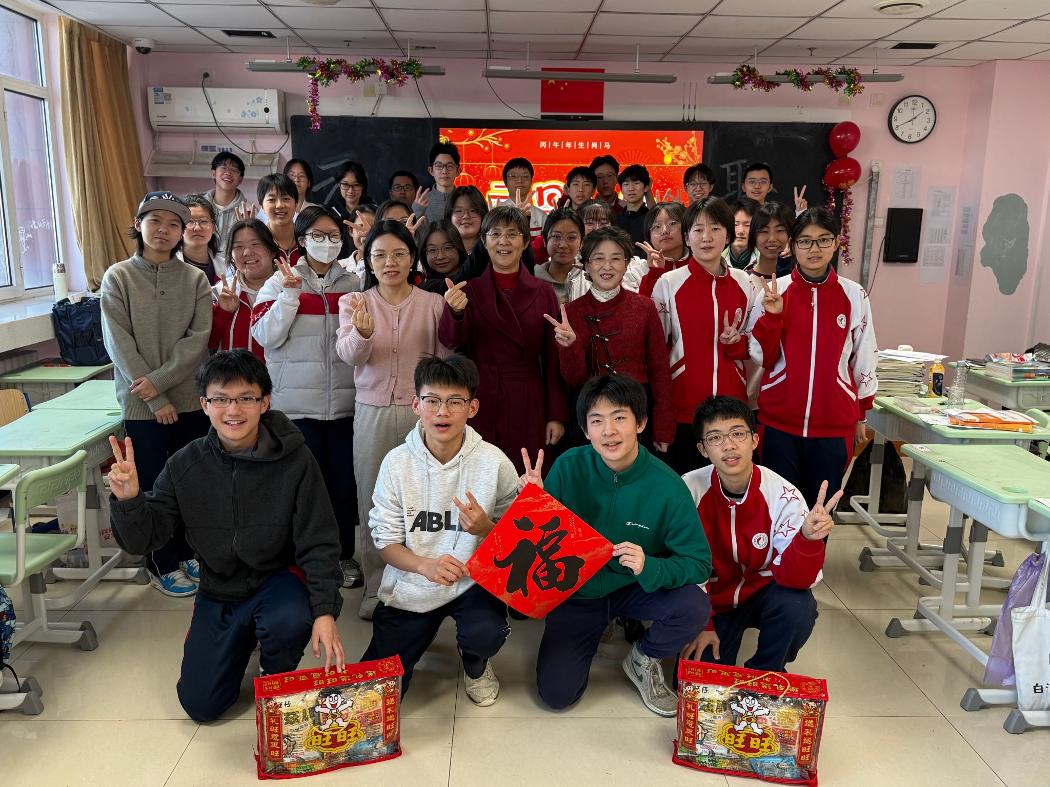 “新年好!祝同学们一马当先,学业精进!”带着对三个年级学子们的殷切期许与深切关爱,朝阳校区执行校长魏立功,副校长刘舒婷、张立波、姜明亮带领全体中层干部,怀揣着满满当当的旺旺大礼包,逐一走进各班教室。每到一处,领导们都与师生亲切问候、合影留念,仔细询问同学们的学习生活情况,对高一学子寄语“夯实基础、笃行致远”,鼓励高二学子“承前启后、蓄力成长”,叮嘱高三学子“不负韶华、冲刺梦想”,勉励大家在新的一年里既要保持“马”的奋进姿态,脚踏实地、勤学善思,也要怀揣“马”的赤诚之心,团结友爱、向阳生长。